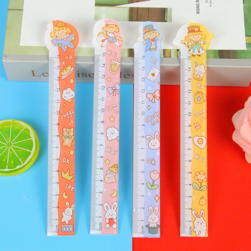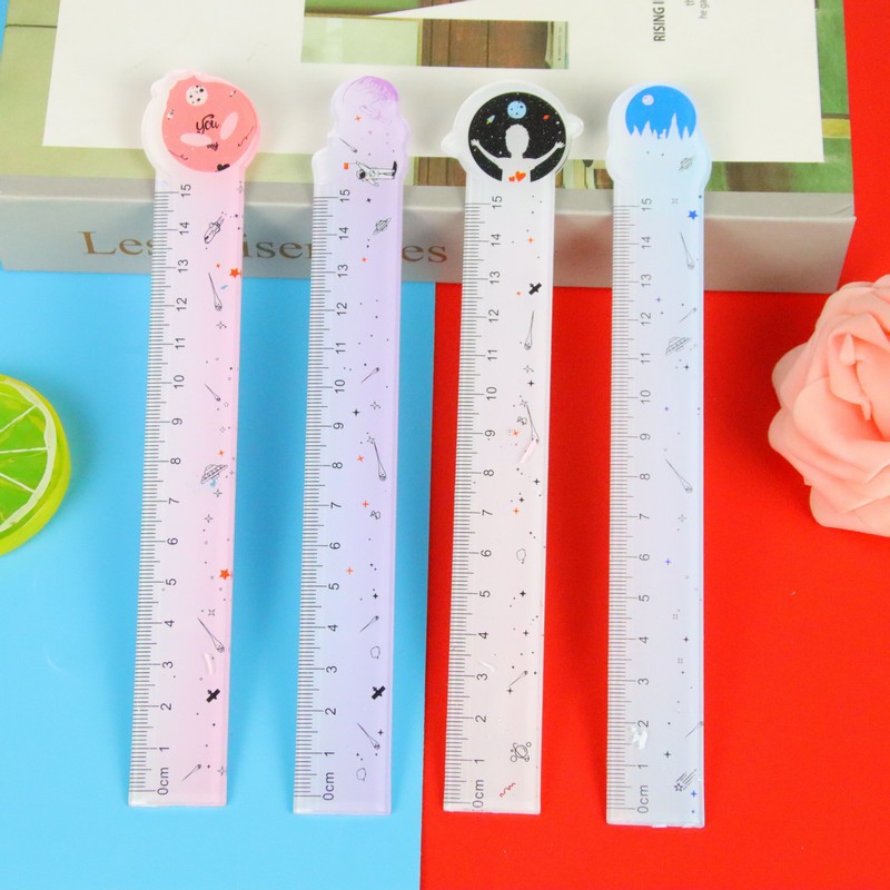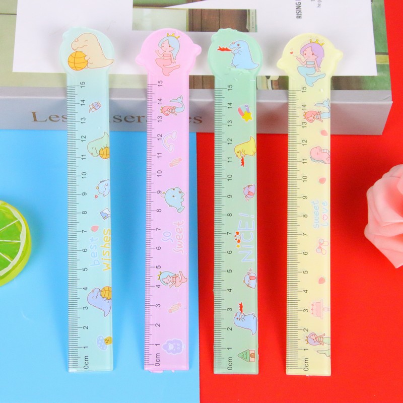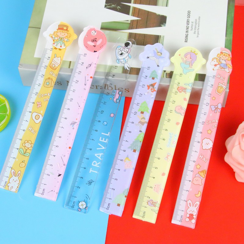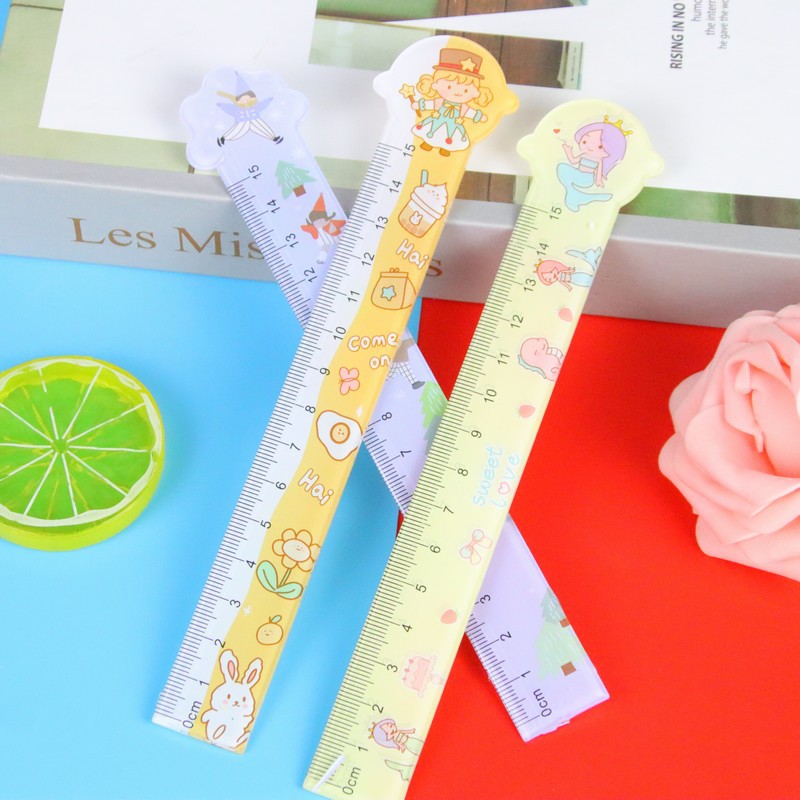创意异形透明直尺卡通学生刻度尺子学习文具绘图测量工具15cm直尺