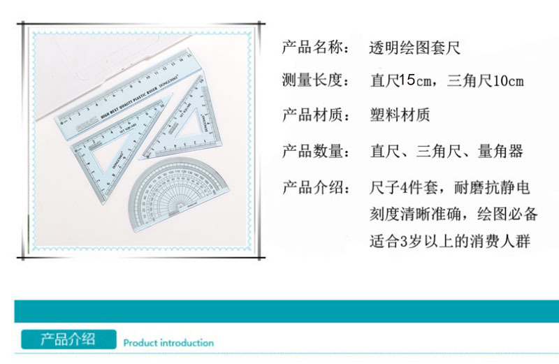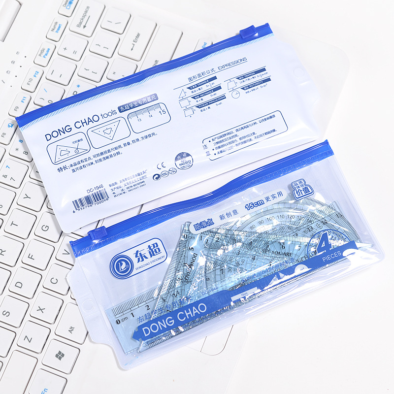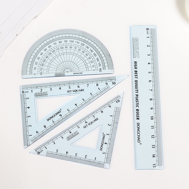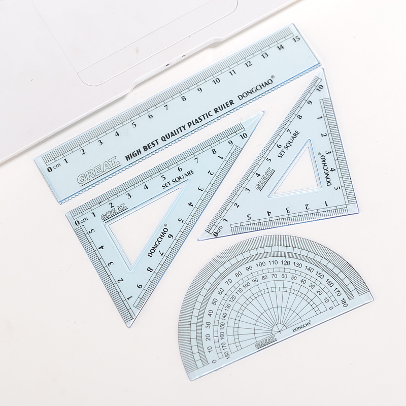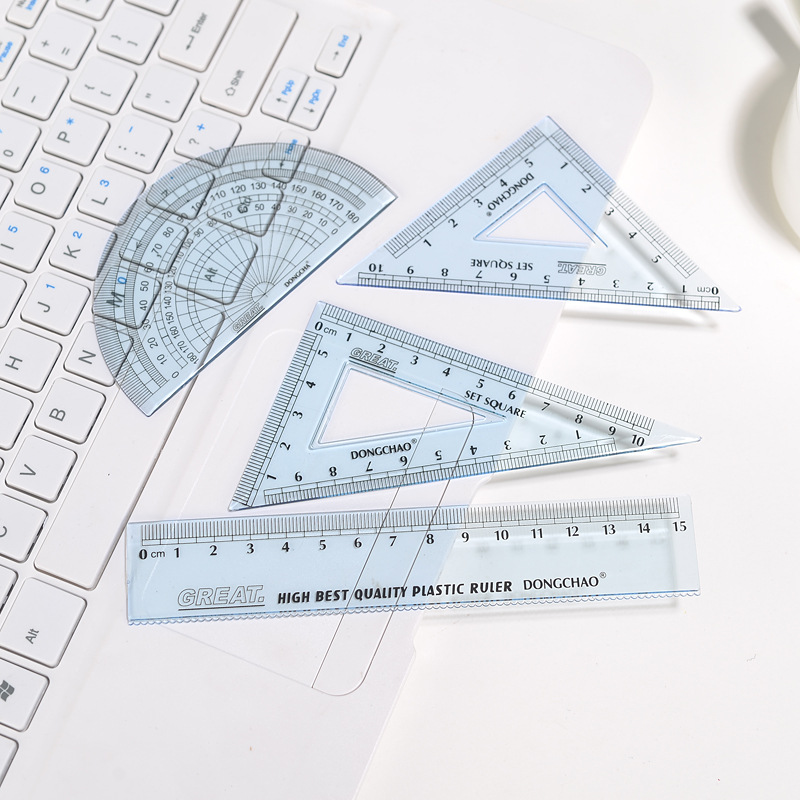 学生绘图套尺 儿童 学生套装4件套透明尺子 直尺+三角尺学习套装