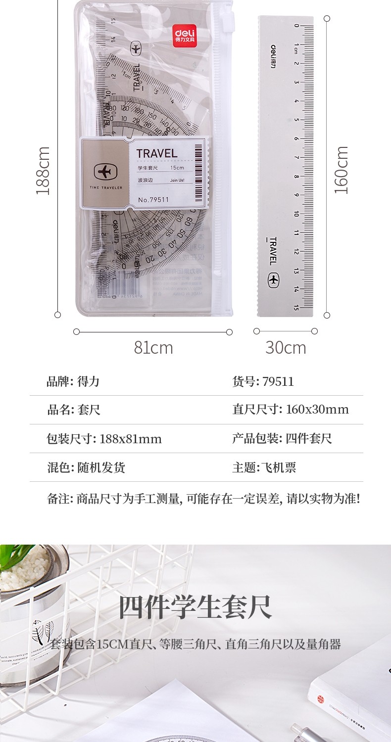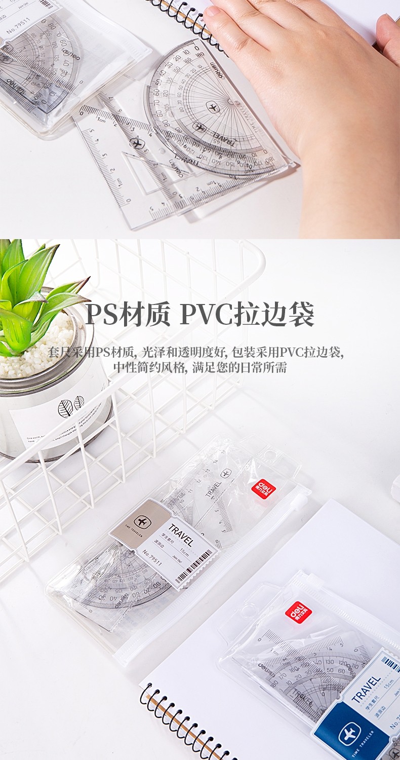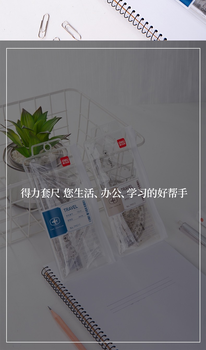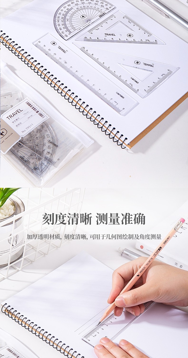 得力79511零系列学生套尺 直尺三角尺子量角器 多规格透明套装