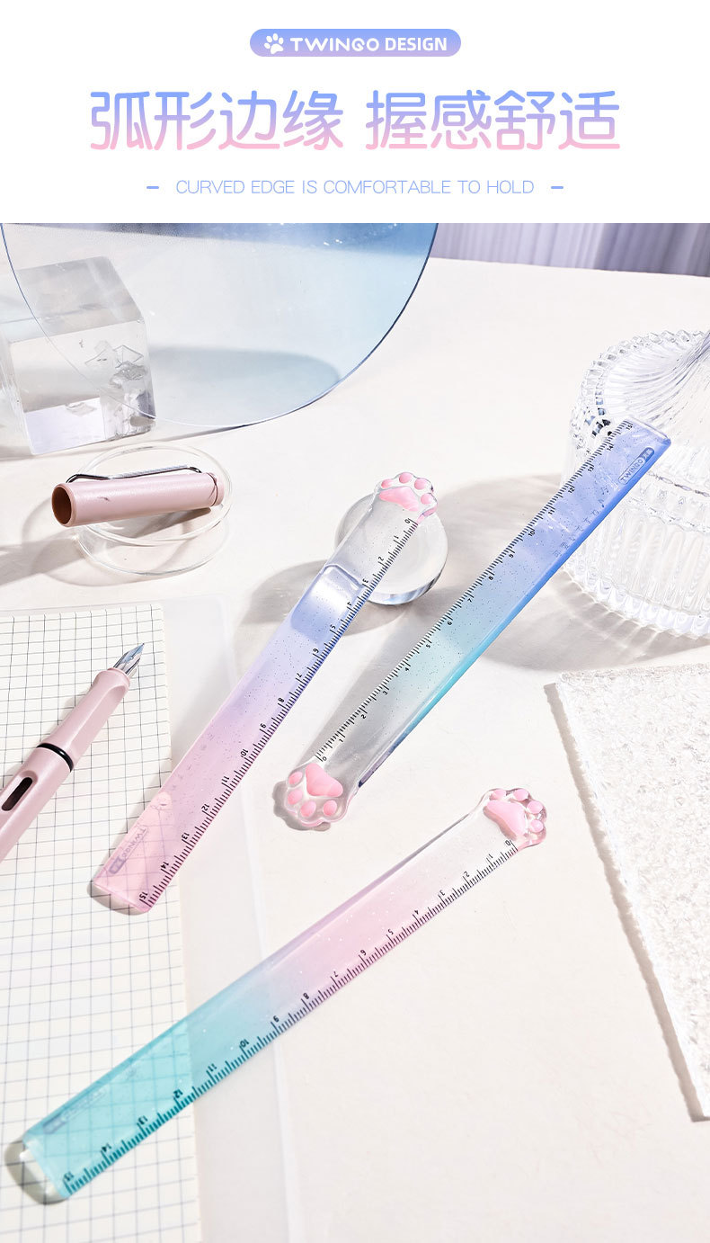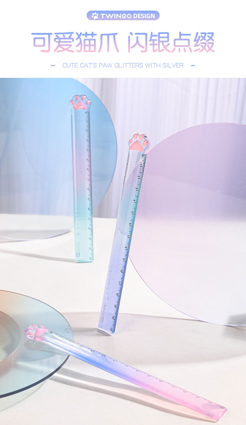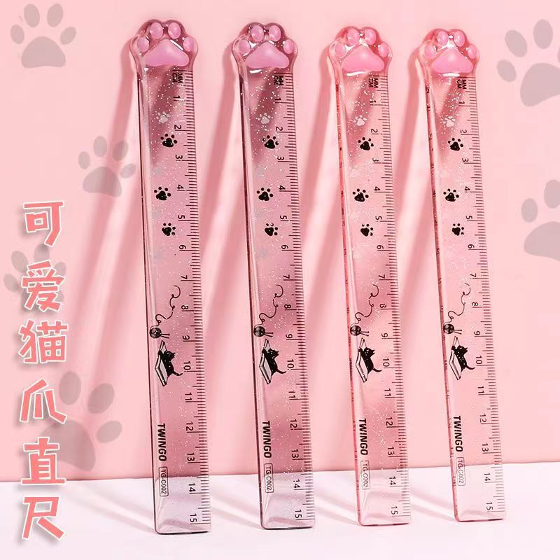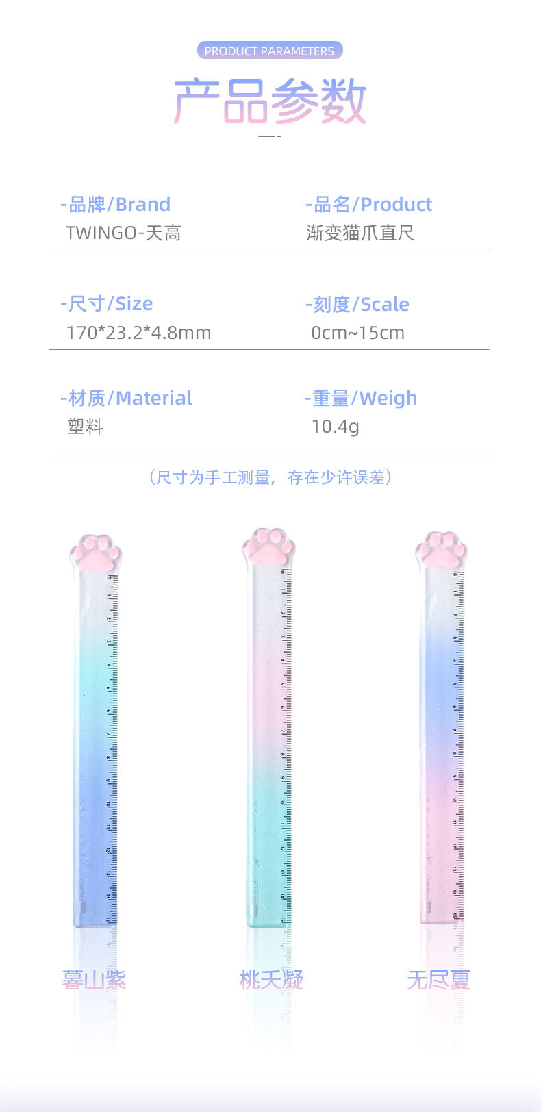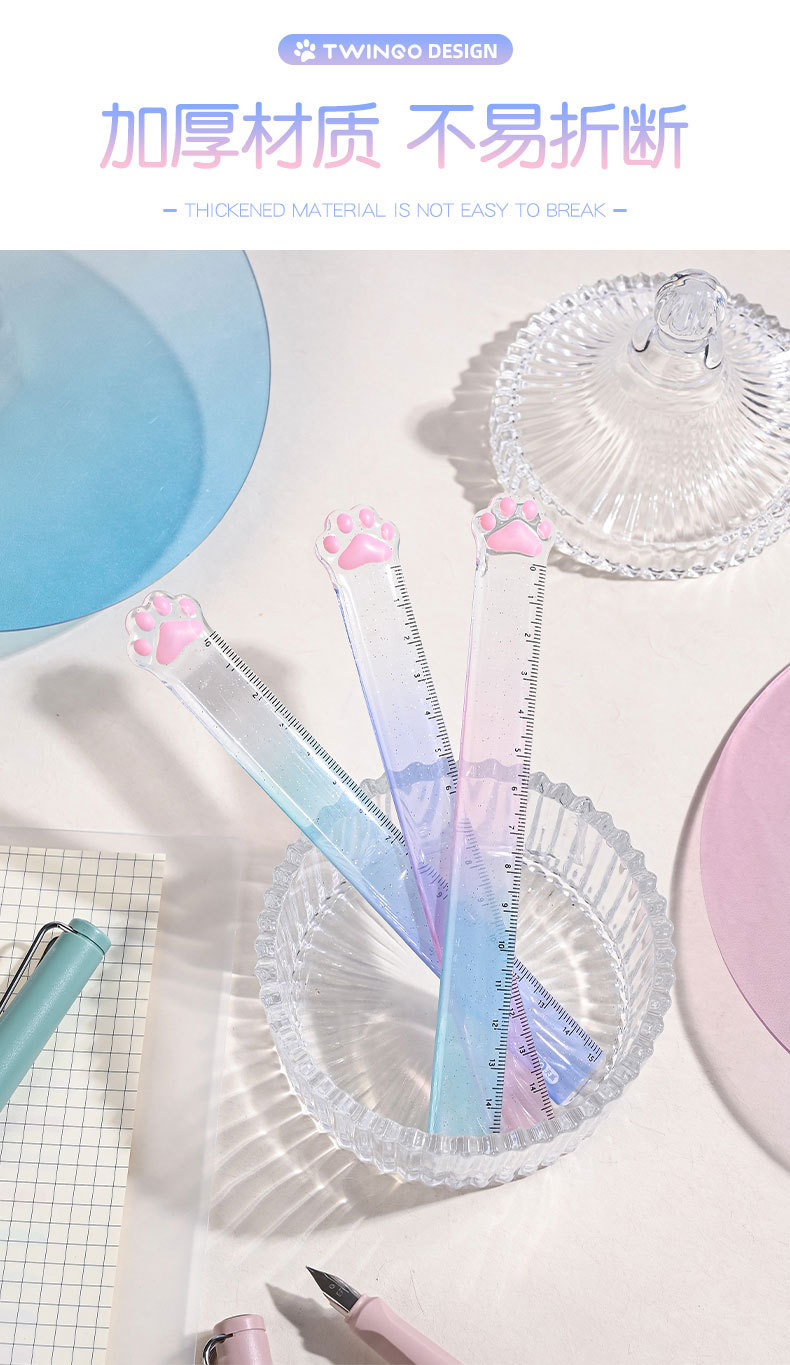 可爱渐变色猫爪尺子高颜值学生直尺15cm透明刻度尺绘图测量工具尺