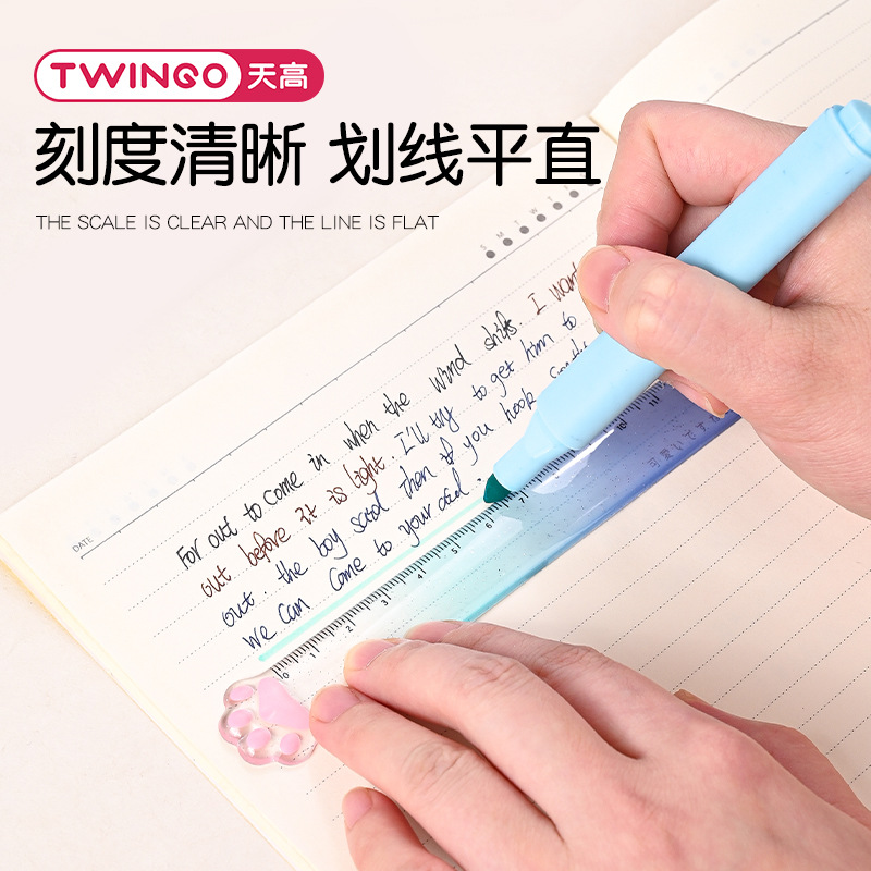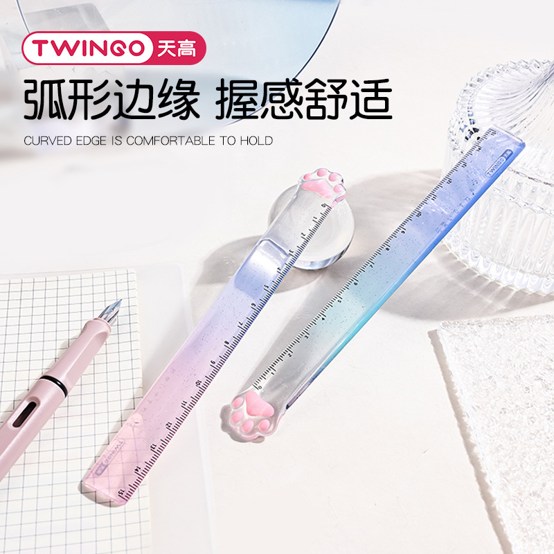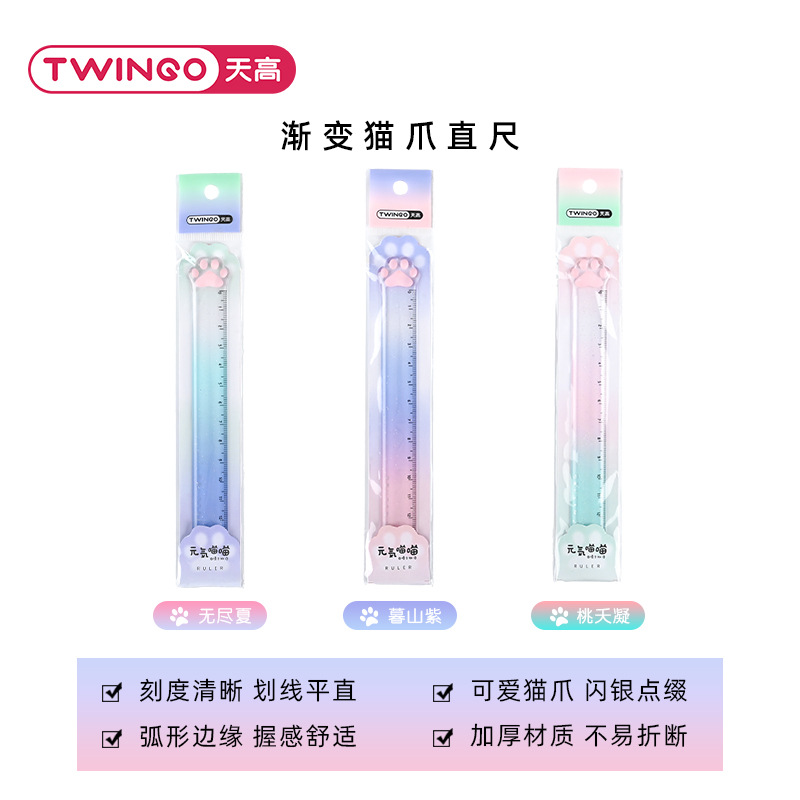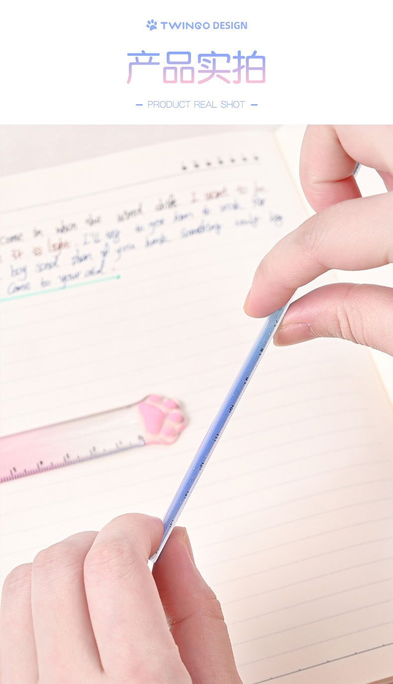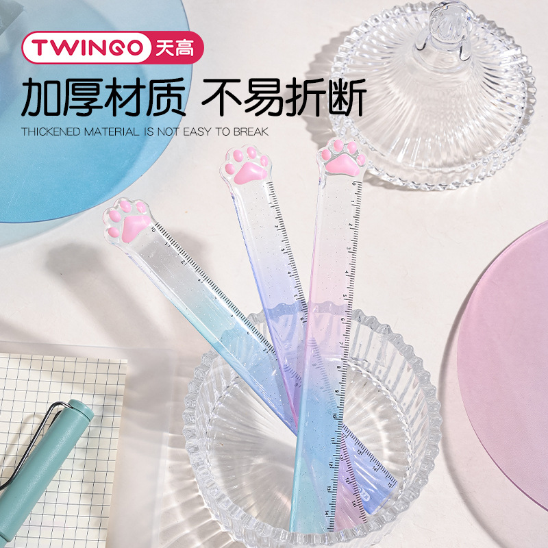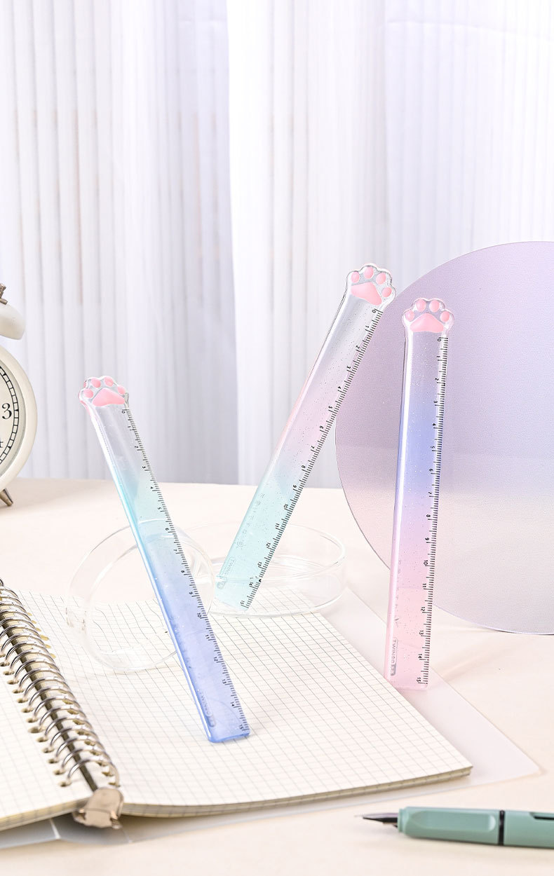 可爱渐变色猫爪尺子高颜值学生直尺15cm透明刻度尺绘图测量工具尺