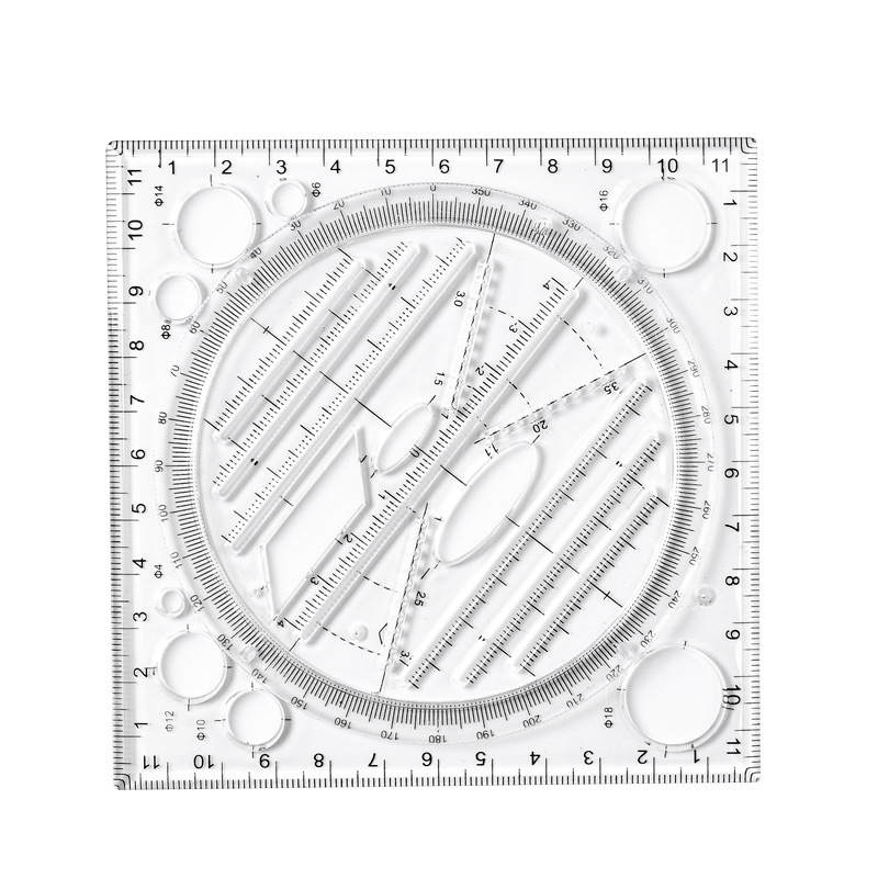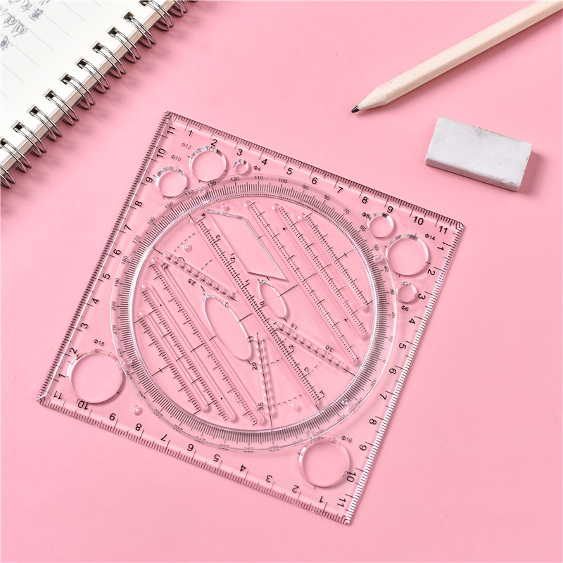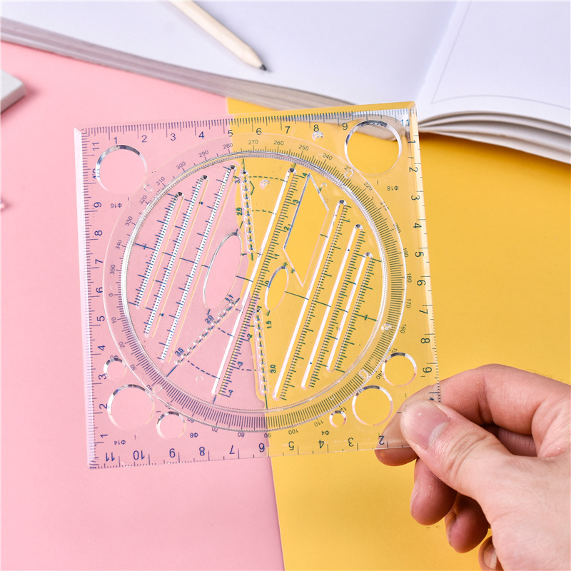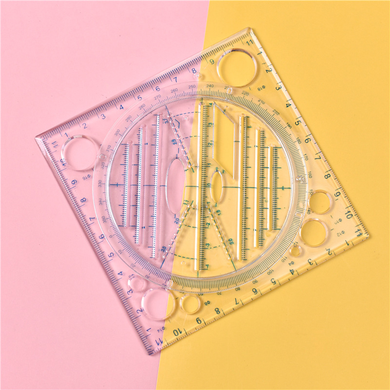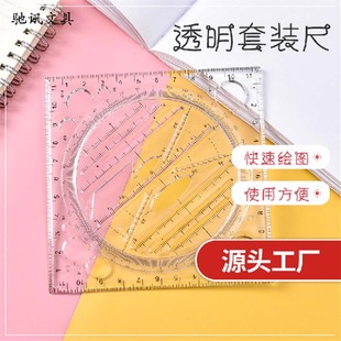 现货学生透明套装尺子多功能绘图几何尺子塑料方形学习尺批发
