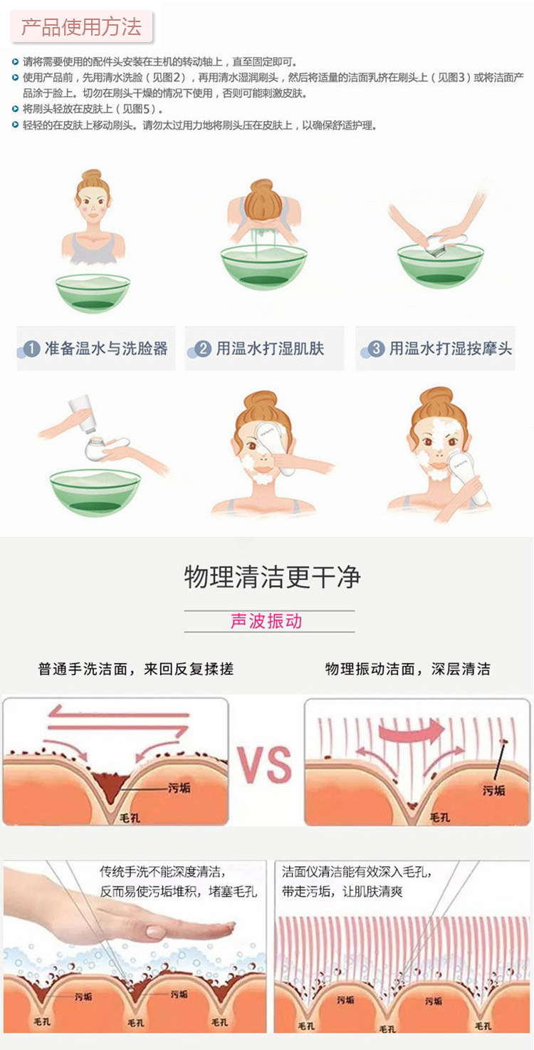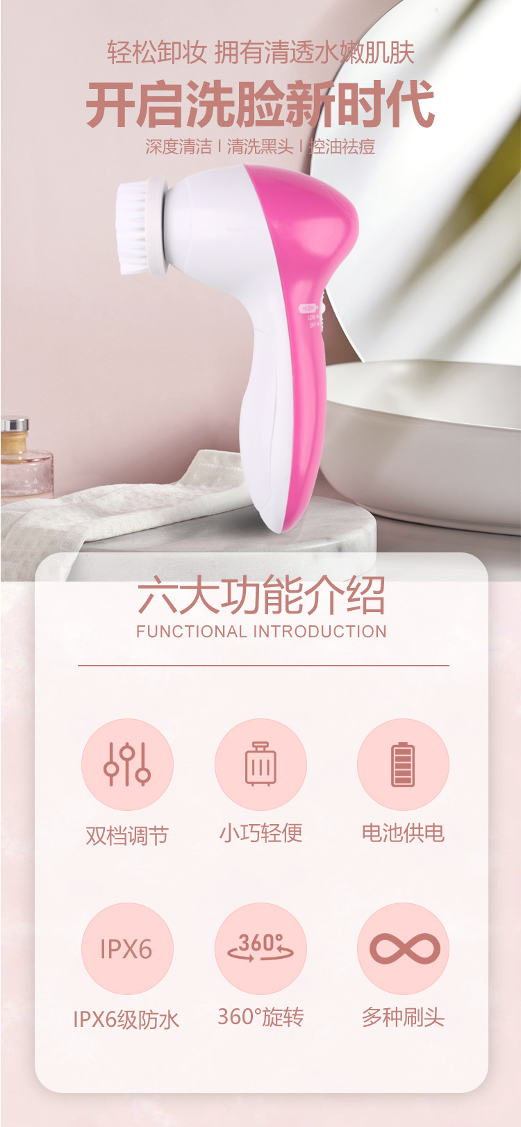 软毛温和清洁非充电电动洗脸刷套装 去黑头按摩电池款无线洁面仪