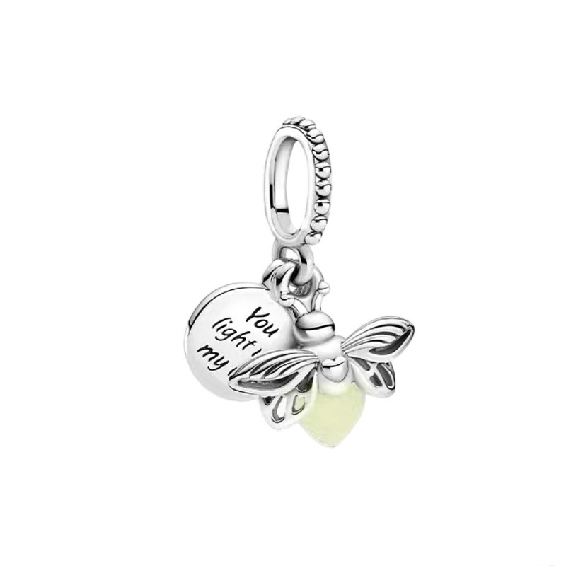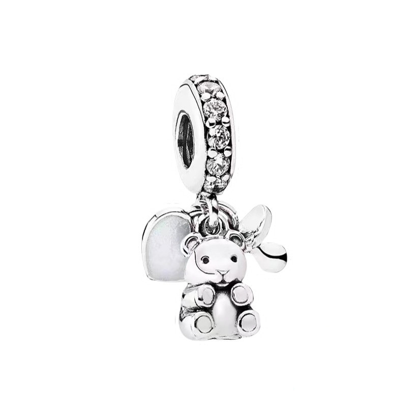 潘家心形天使之翼手镯十字架吊坠奶嘴小熊散珠白琉璃猫眼珠子手链