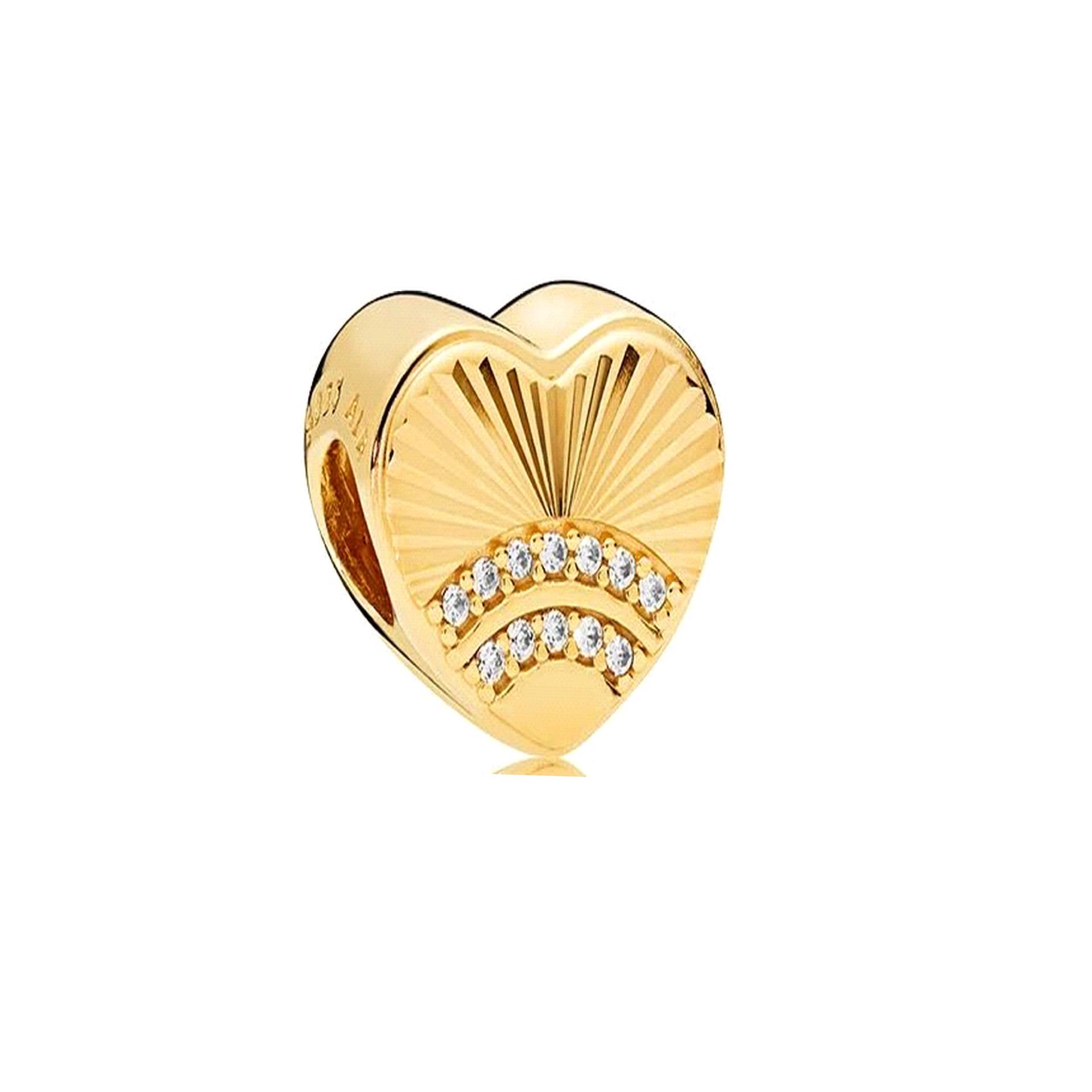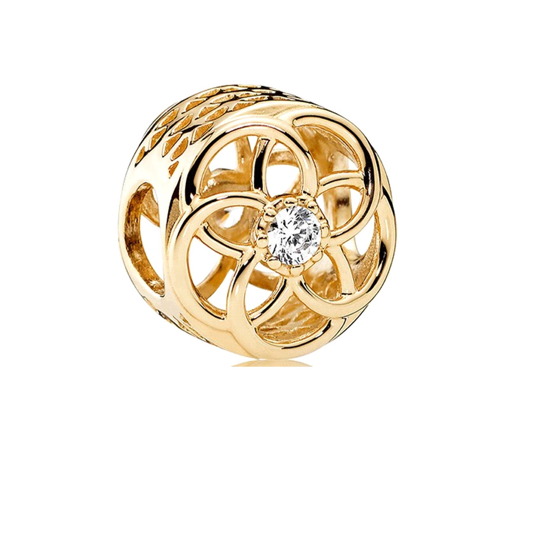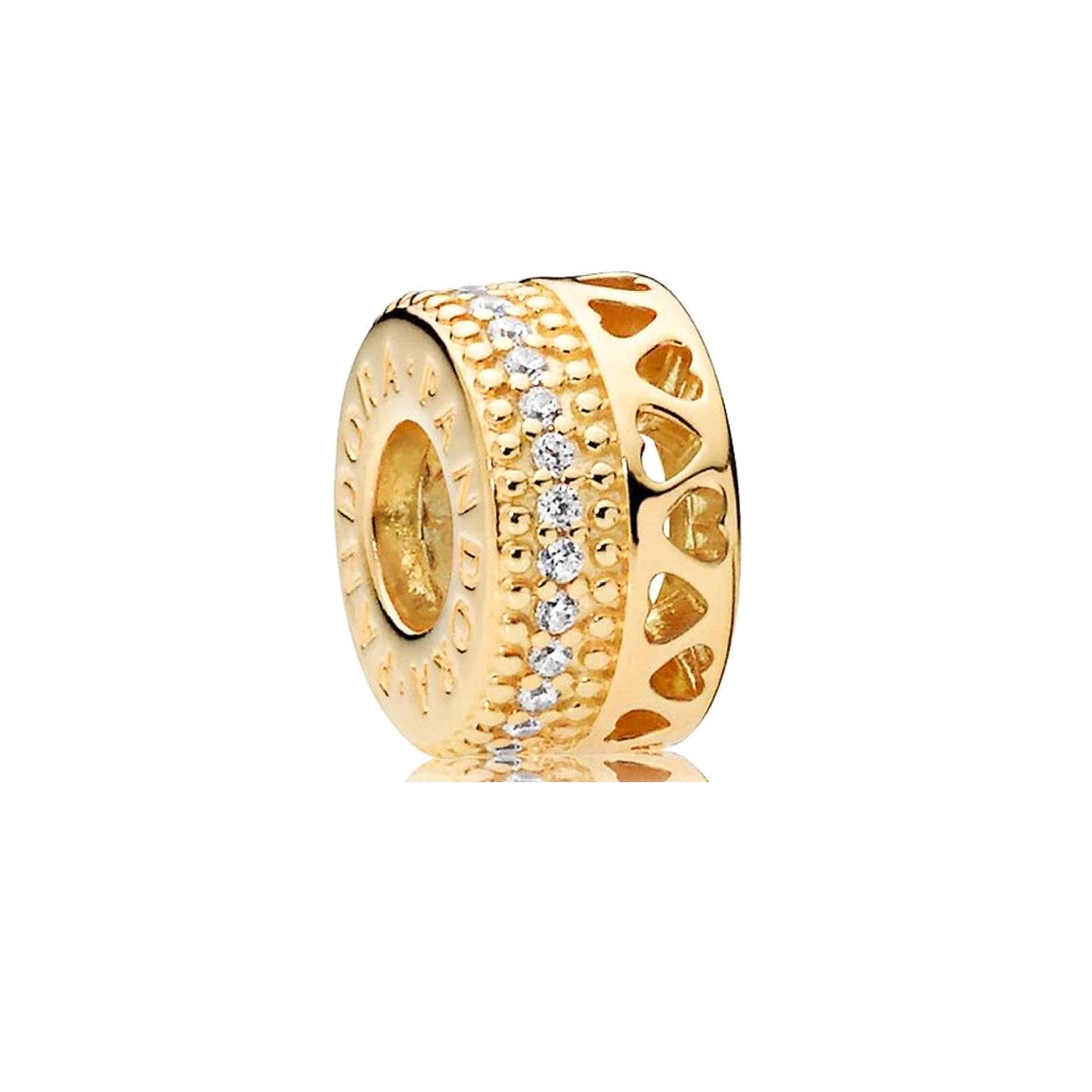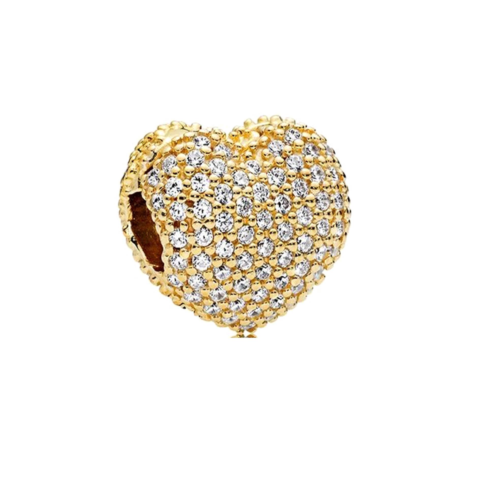 潘家多拉电镀金色系列串饰固定扣DIY散珠子镂空爱心吊坠手链女生