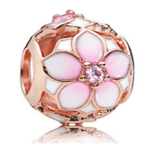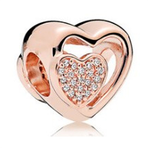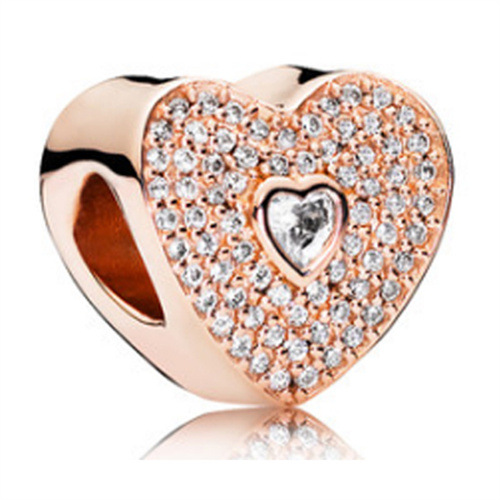 潘家多拉手链玫瑰金粉色猫眼珠子琉璃珠散珠串珠闪耀爱心饰品配件