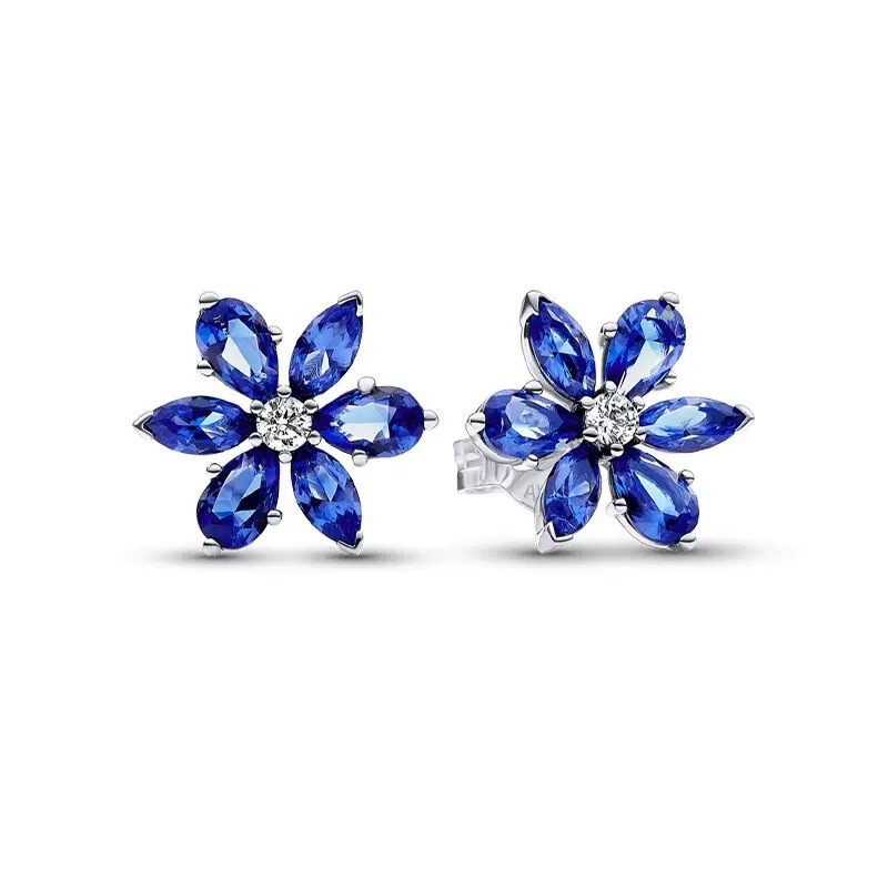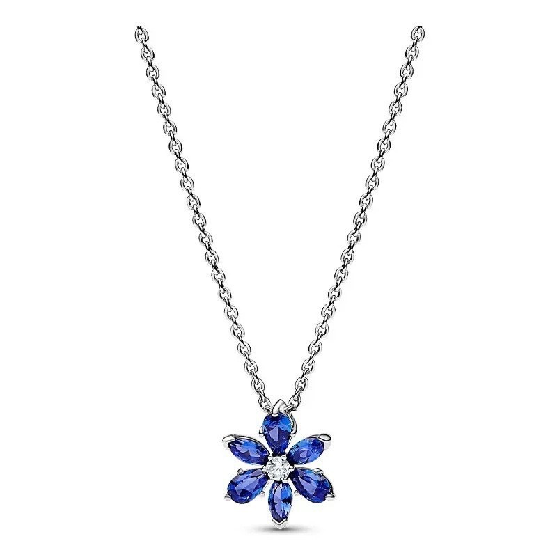 潘家白铜镀银蓝色耳钉戒指指环雪花项链饰品三件套跨境首饰组合