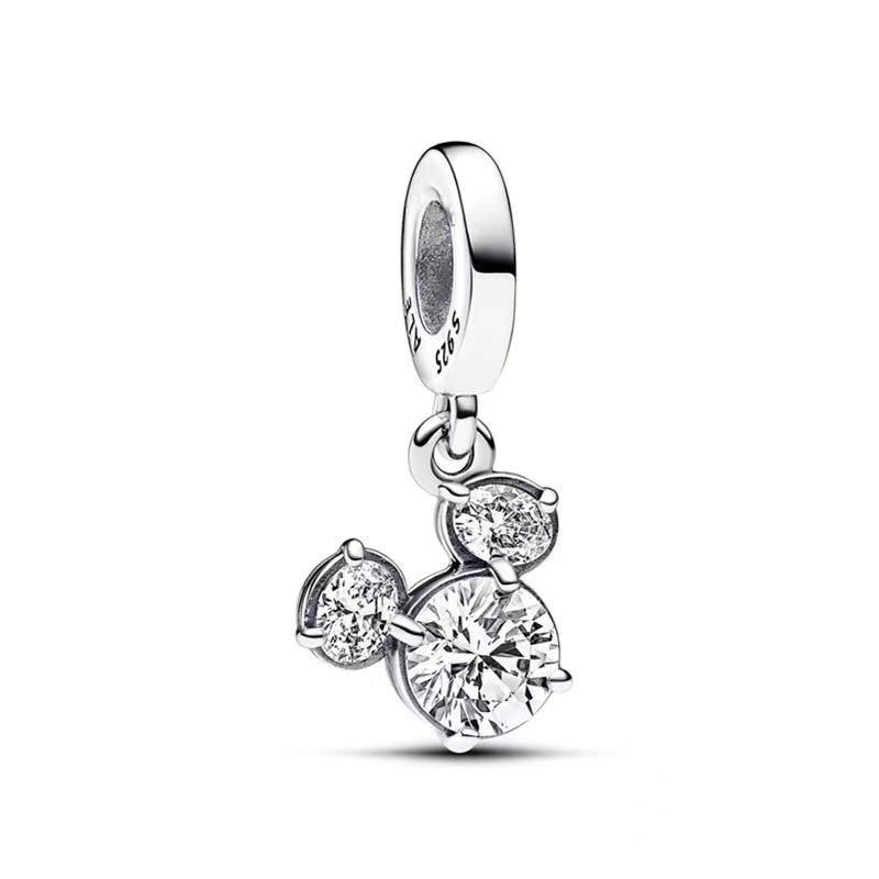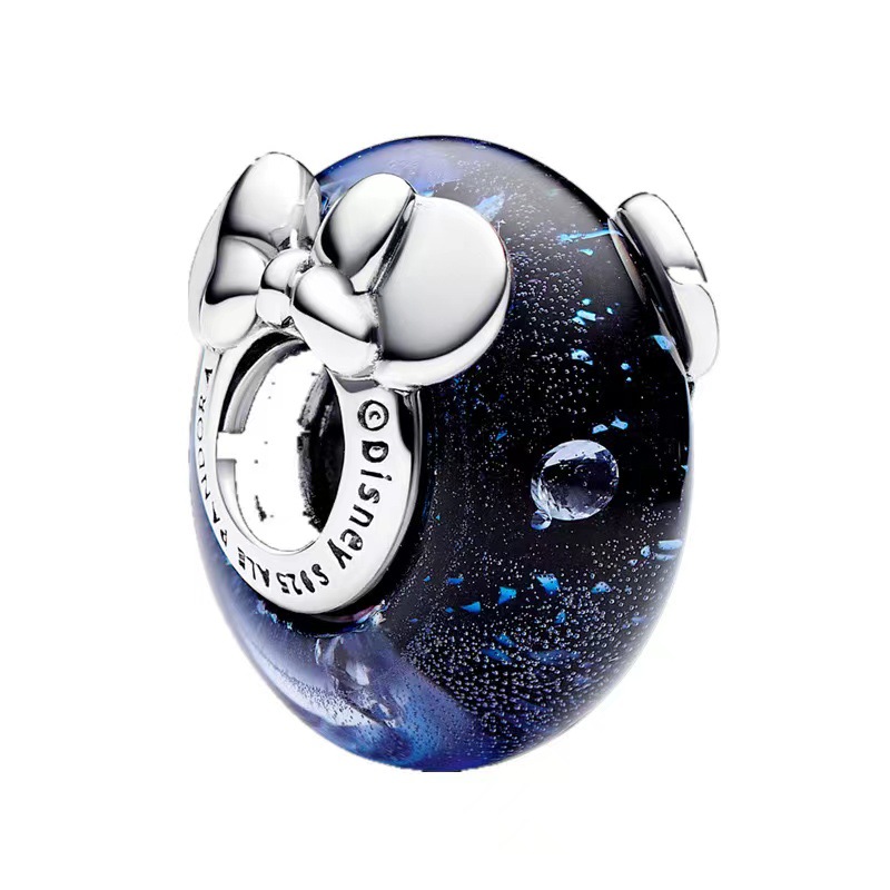 潘家新款白铜镀银琉璃珠子米奇吊饰米妮串珠手链吊坠diy配饰