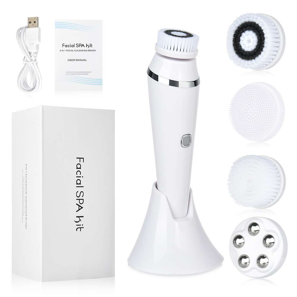 跨境多功能洁面仪防水旋转毛孔清洁脸部美容按摩四合一电动洗脸刷