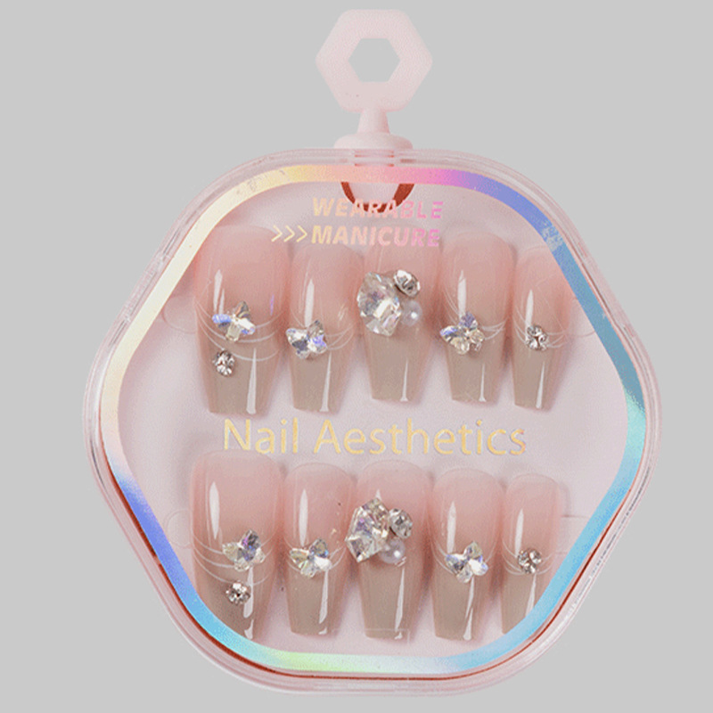 微笑倾城穿戴甲假指甲贴片美甲贴片女学生ins网感闪钻蝴蝶结甲片