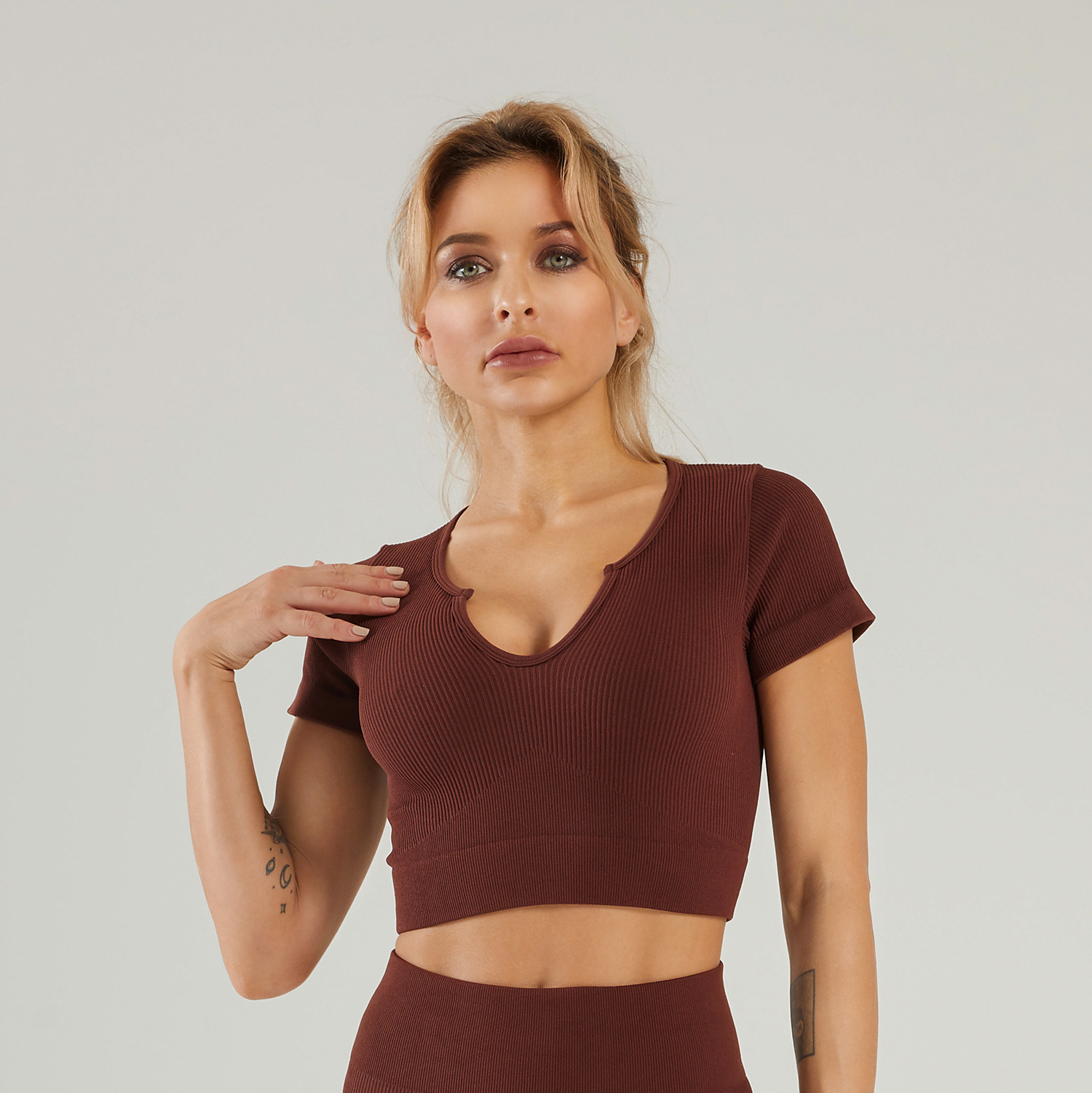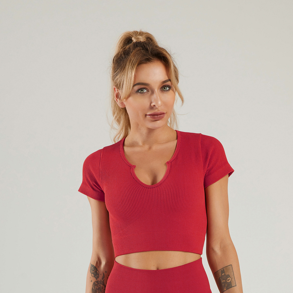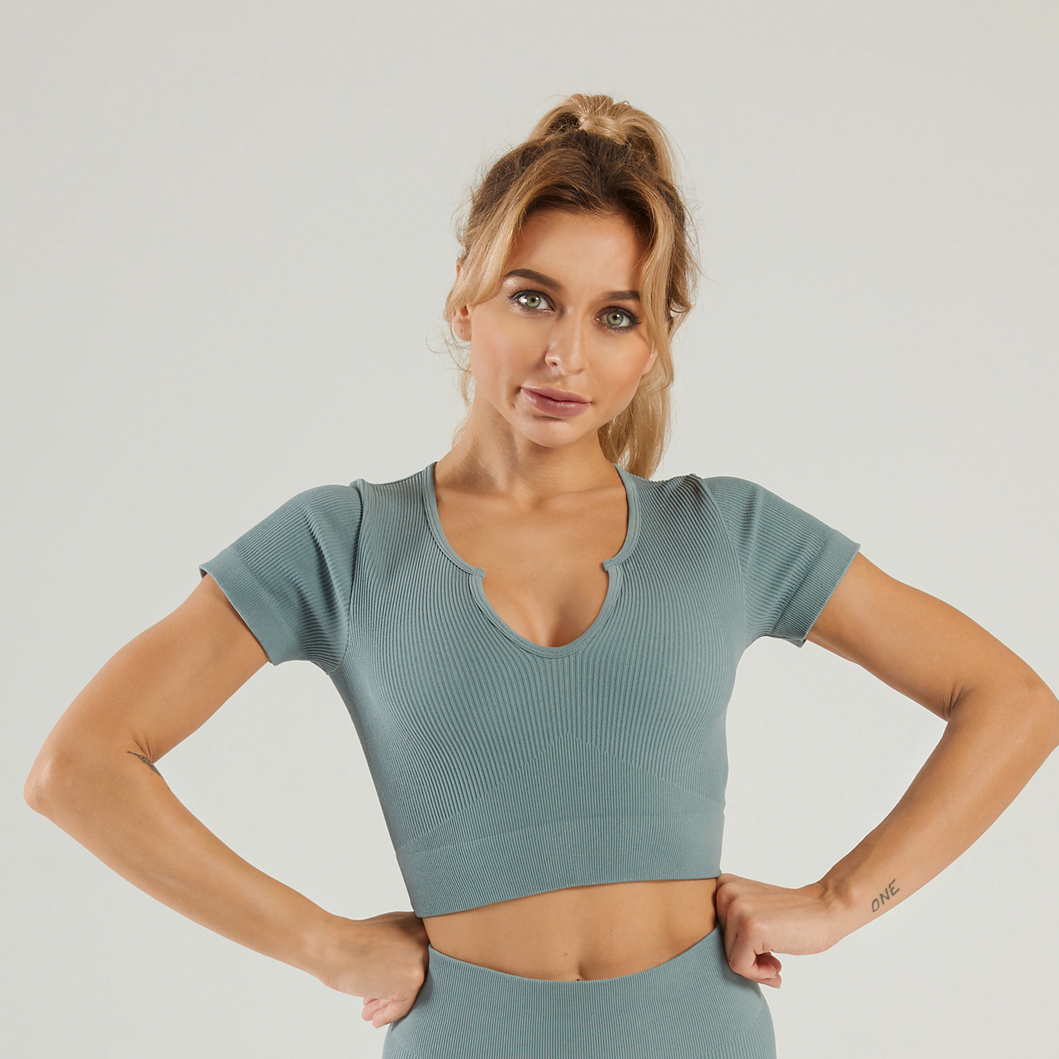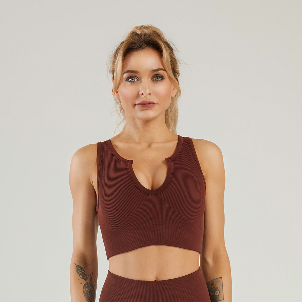 2023鲨鱼针织无缝文胸背心短袖裤子 欧美跨境坑条无缝健身新款