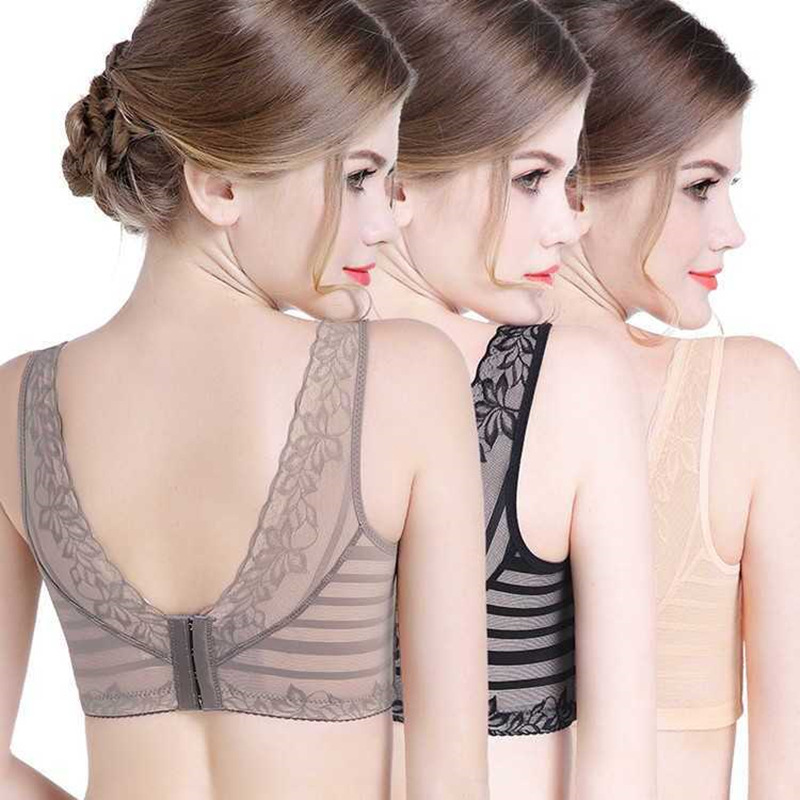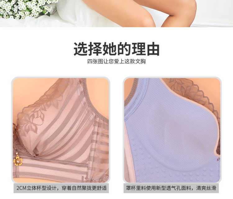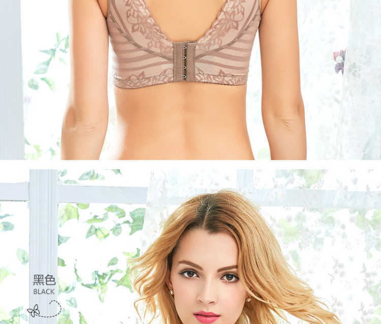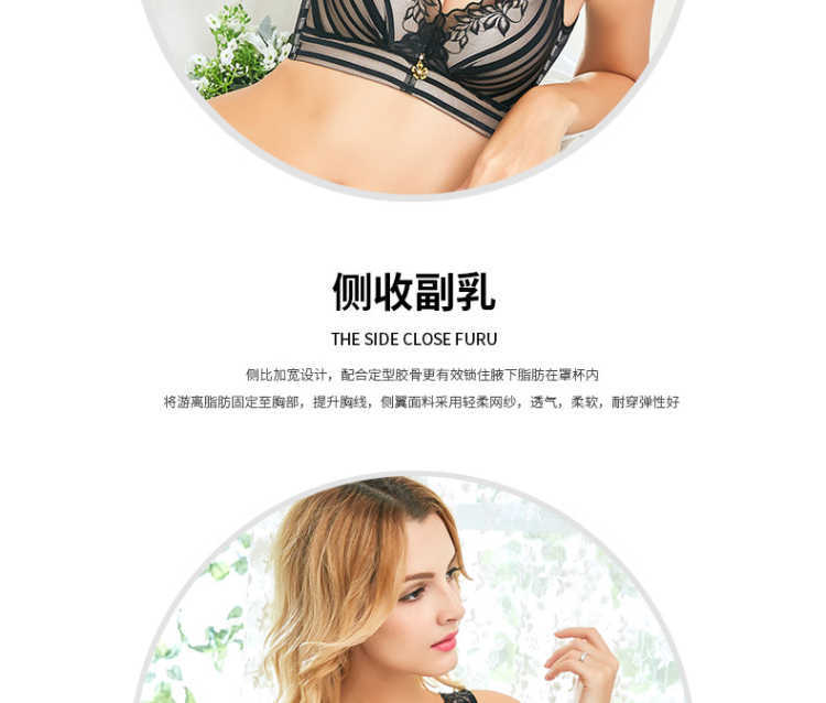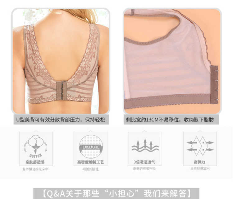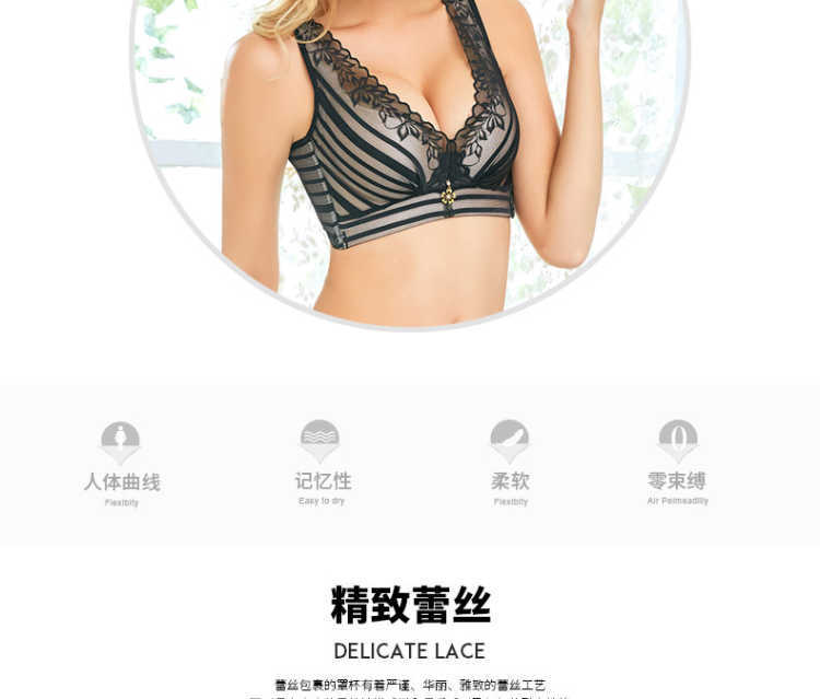 欧美蕾丝美背透气聚拢小胸收副乳调整型性感无钢圈内衣女士文胸罩