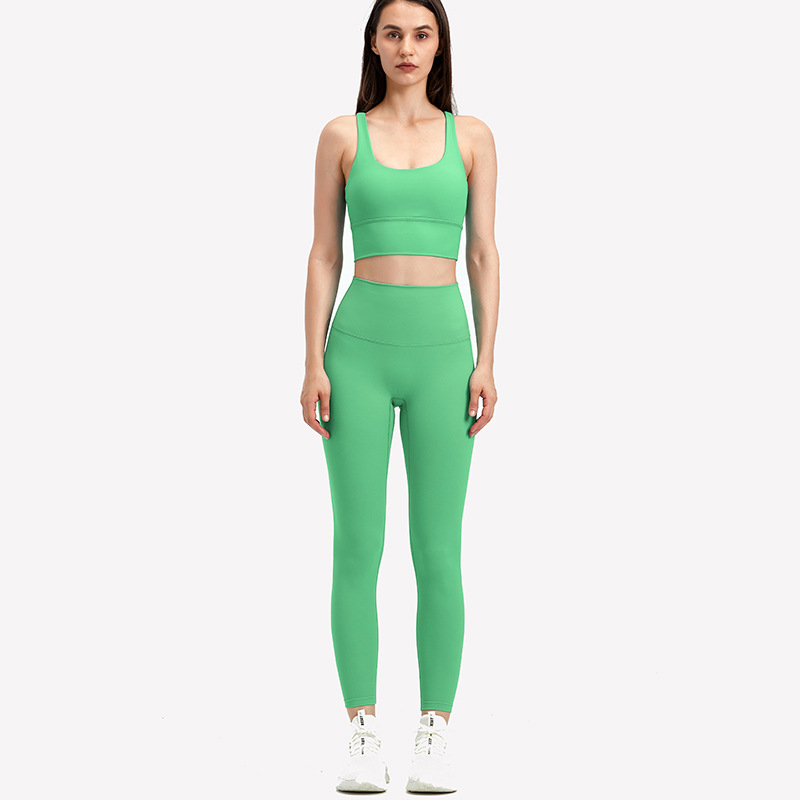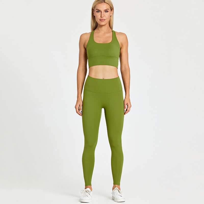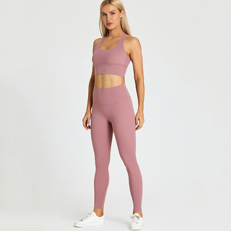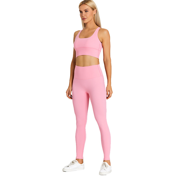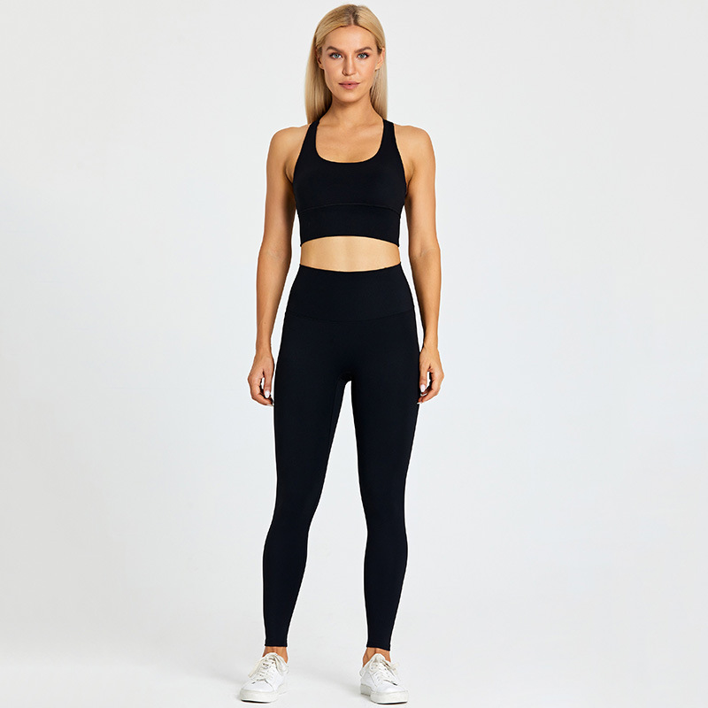 跨境欧美瑜伽服套装女裸感美背透气速干紧身蜜桃臀跑步运动瑜伽裤
