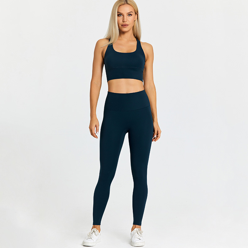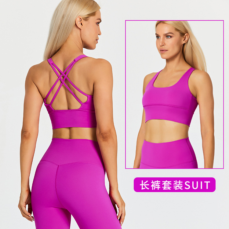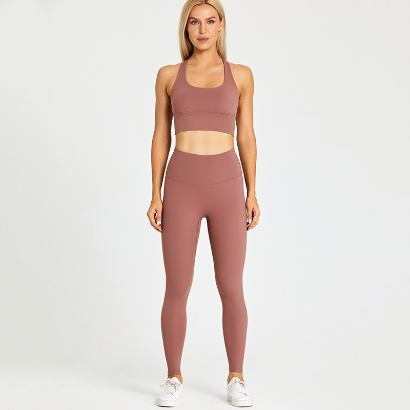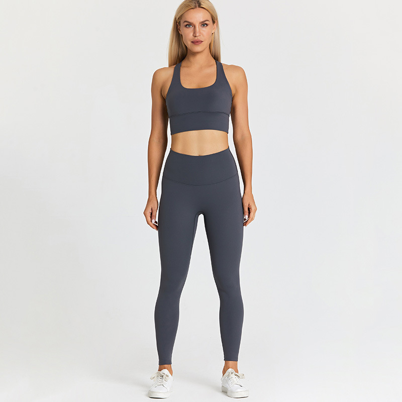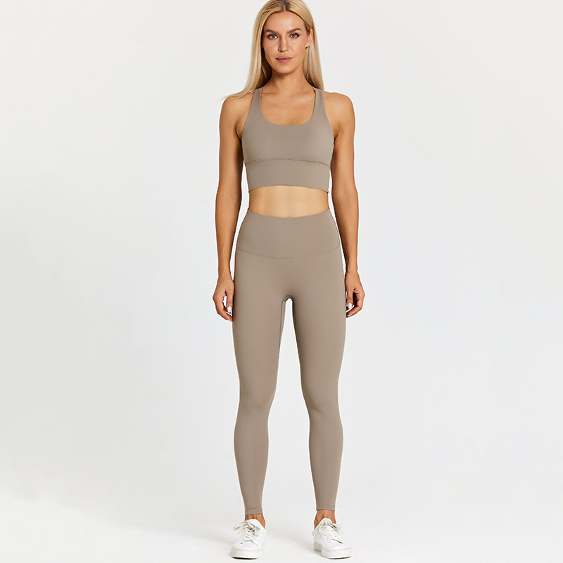 跨境欧美瑜伽服套装女裸感美背透气速干紧身蜜桃臀跑步运动瑜伽裤