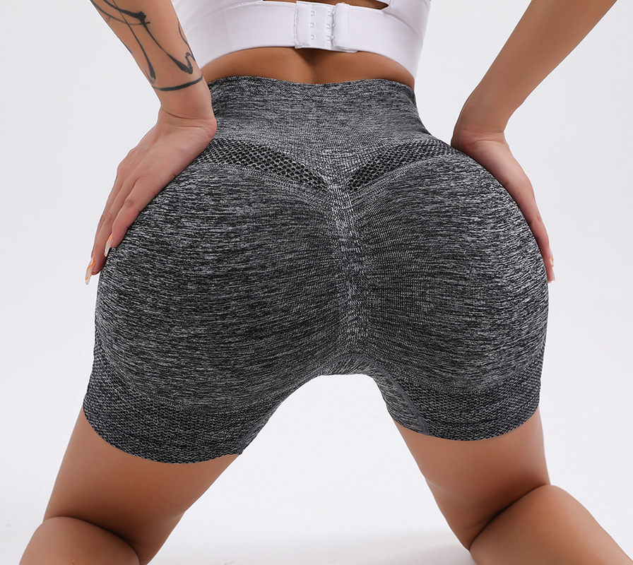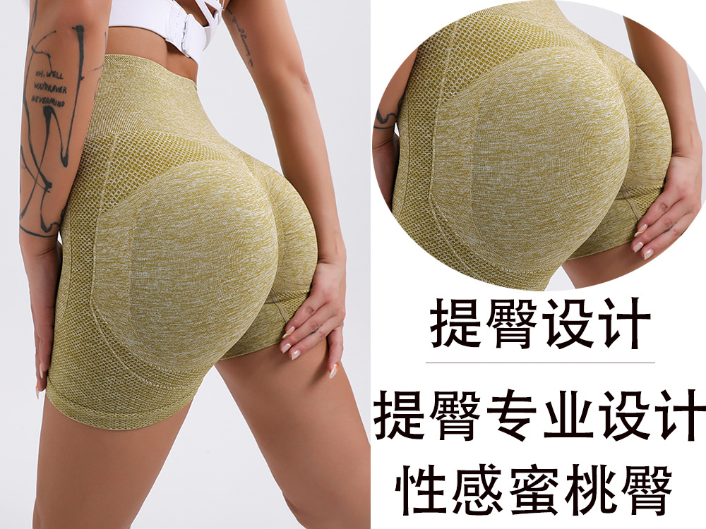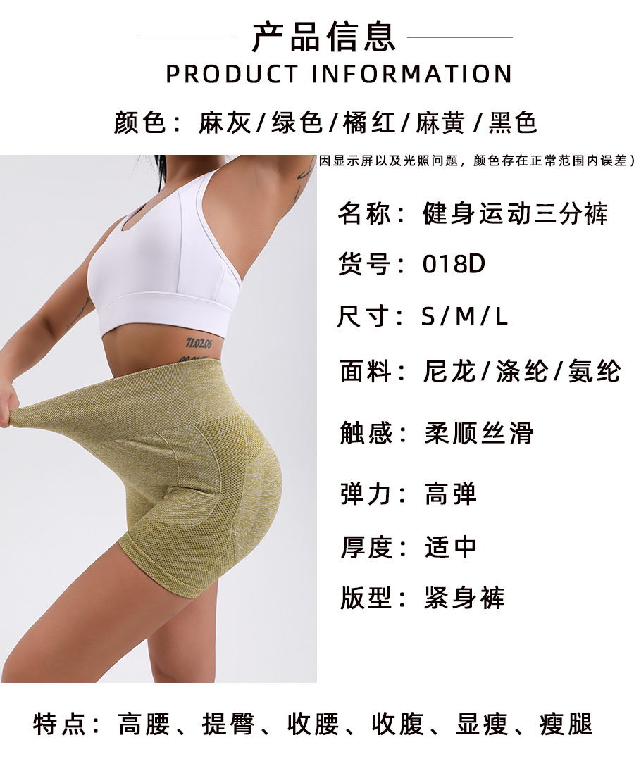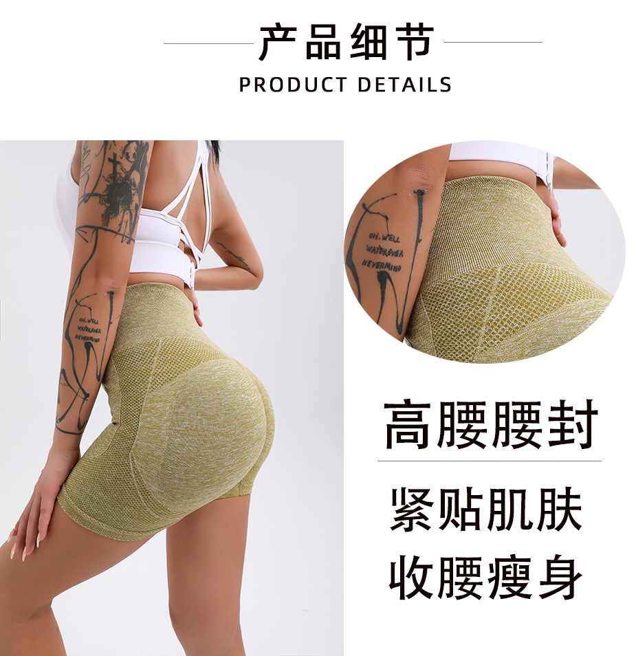 跨境春夏无缝蜜桃臀瑜伽裤女高腰收腹速干提臀跑步运动短款健身裤