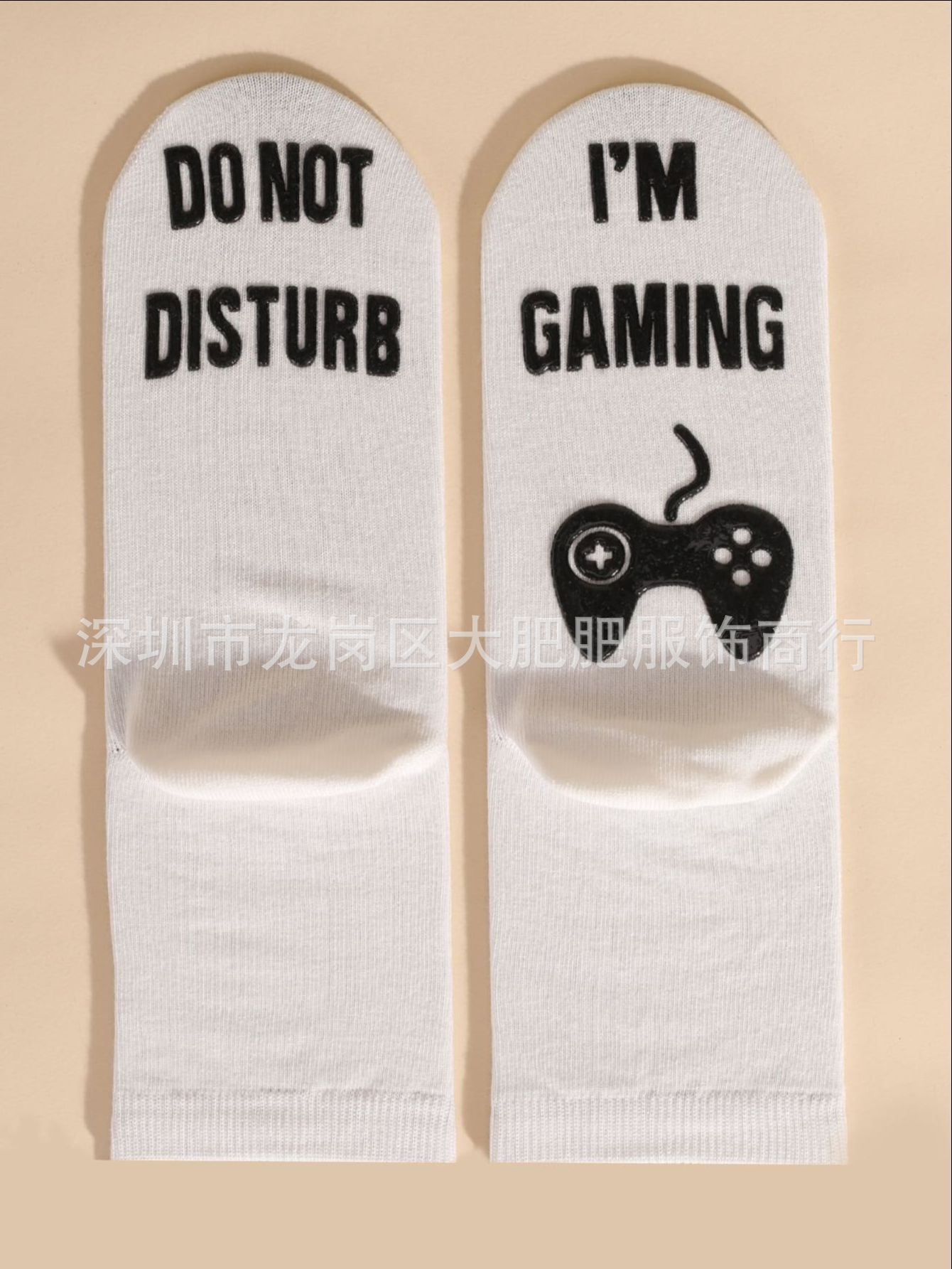 短袜点胶字母全棉防滑短袜欧美跨境印花袜子男爆款美式中筒游戏袜