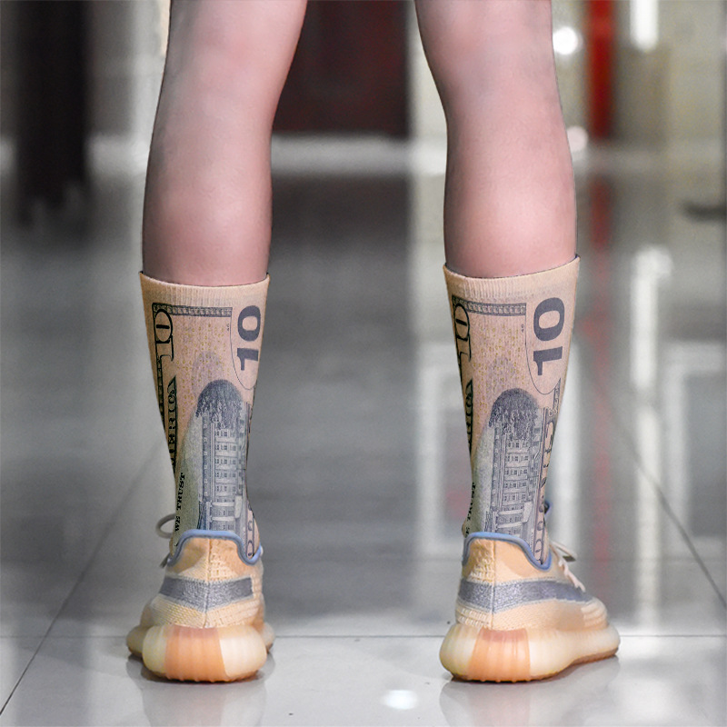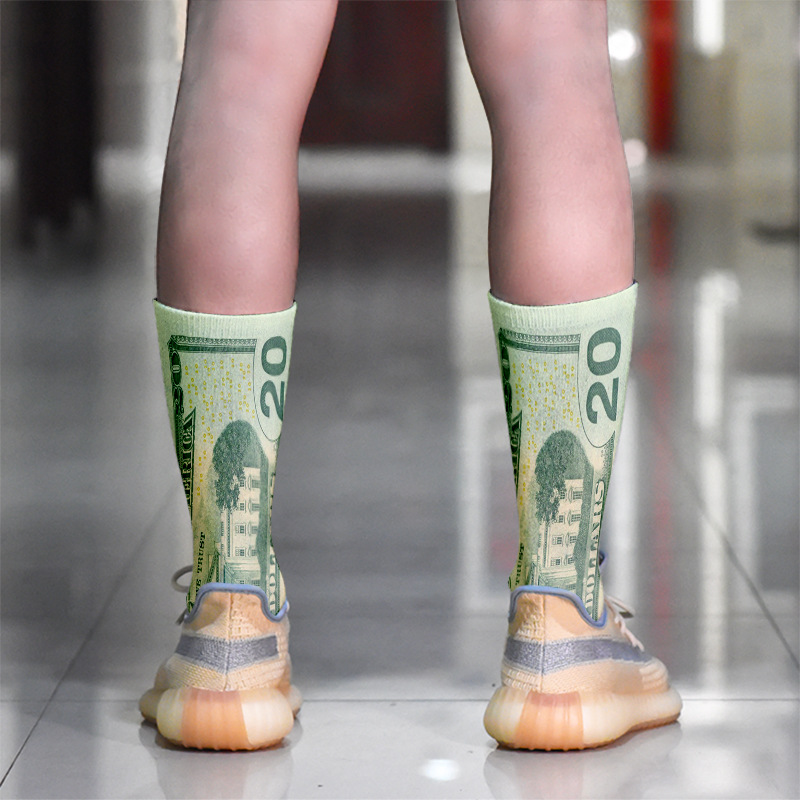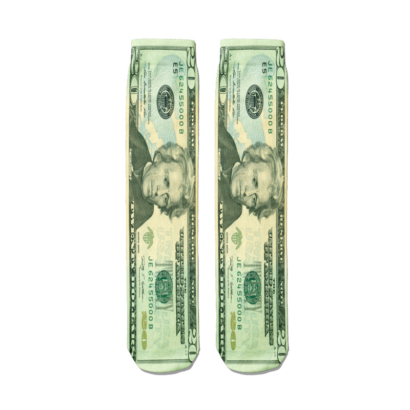 3D个性袜子美元元素印花欧美风街头潮流搭配长袜创意直筒休闲袜