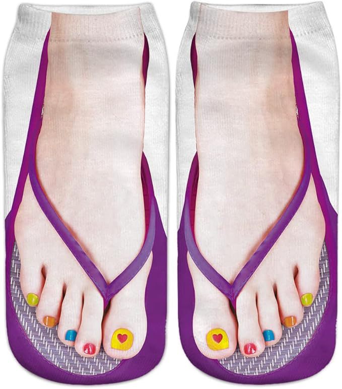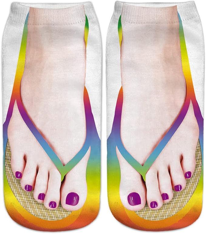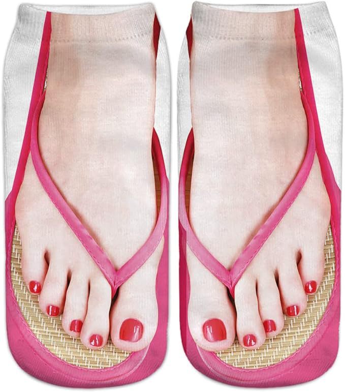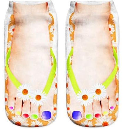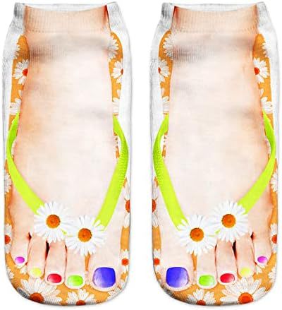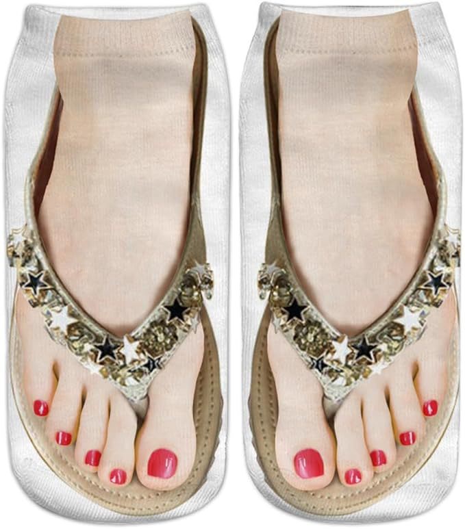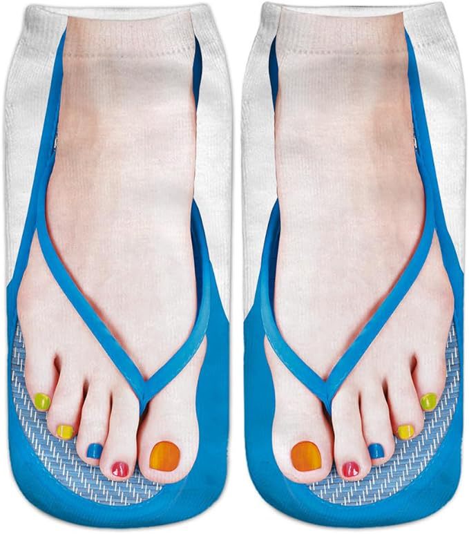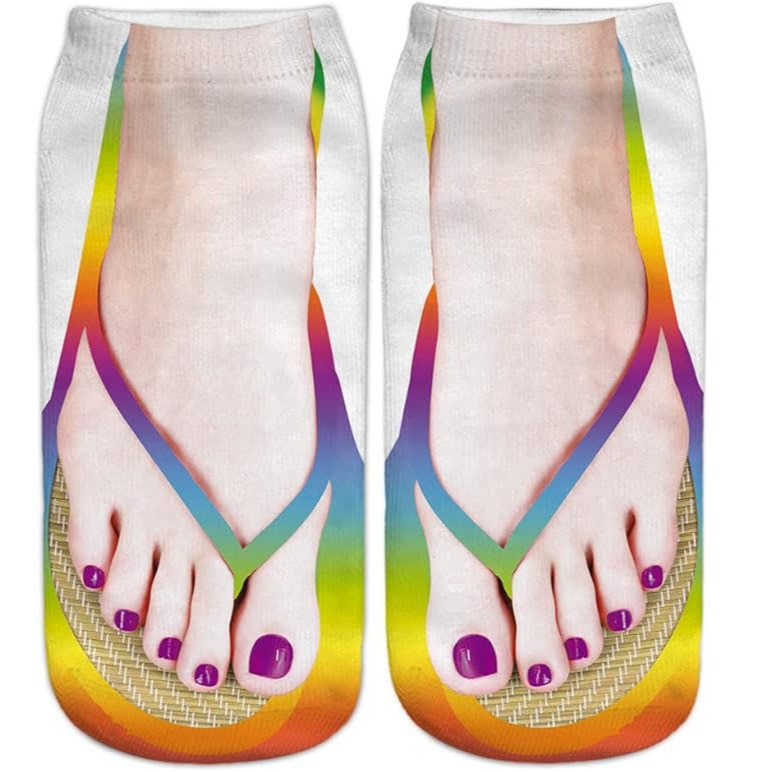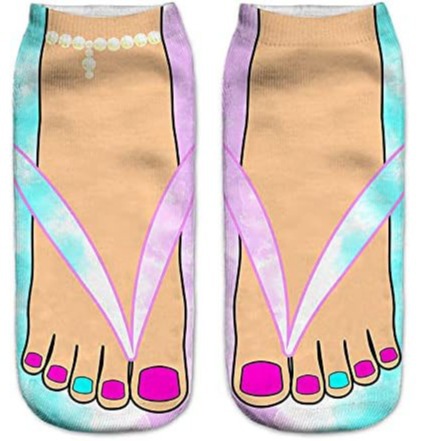 欧美潮款搞怪3D印花袜子 人字拖指甲袜 恶搞礼物中短筒男女袜子