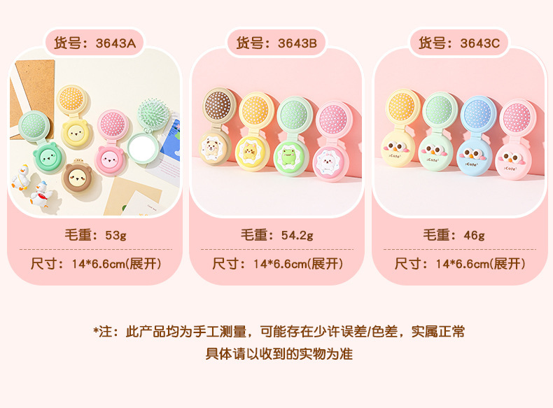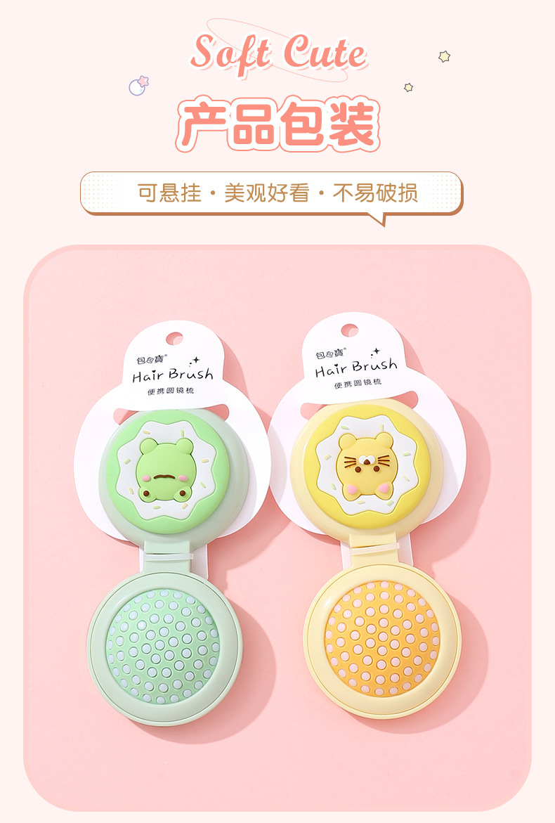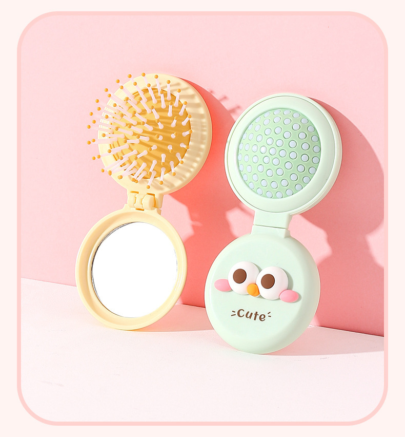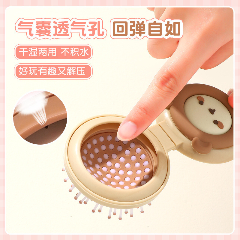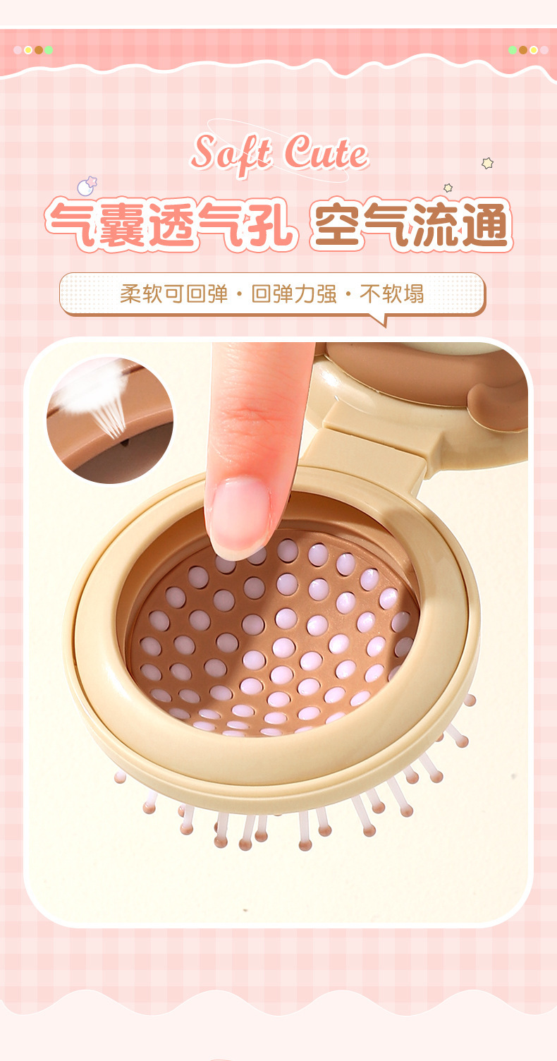 卡通气囊梳折叠便携随身按摩梳可爱少女心镜梳一体气垫按摩梳