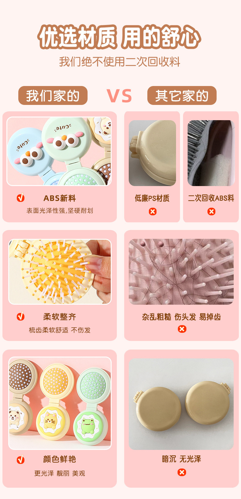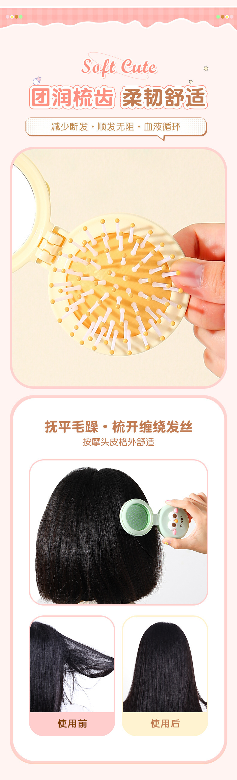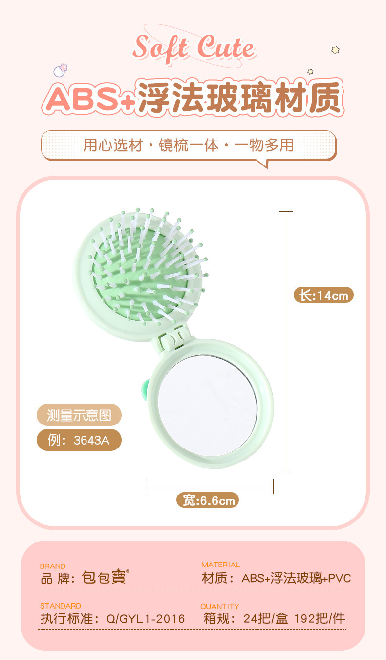 卡通气囊梳折叠便携随身按摩梳可爱少女心镜梳一体气垫按摩梳