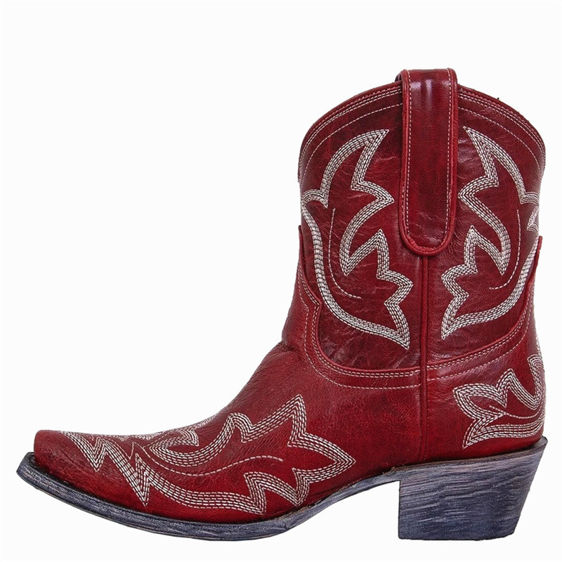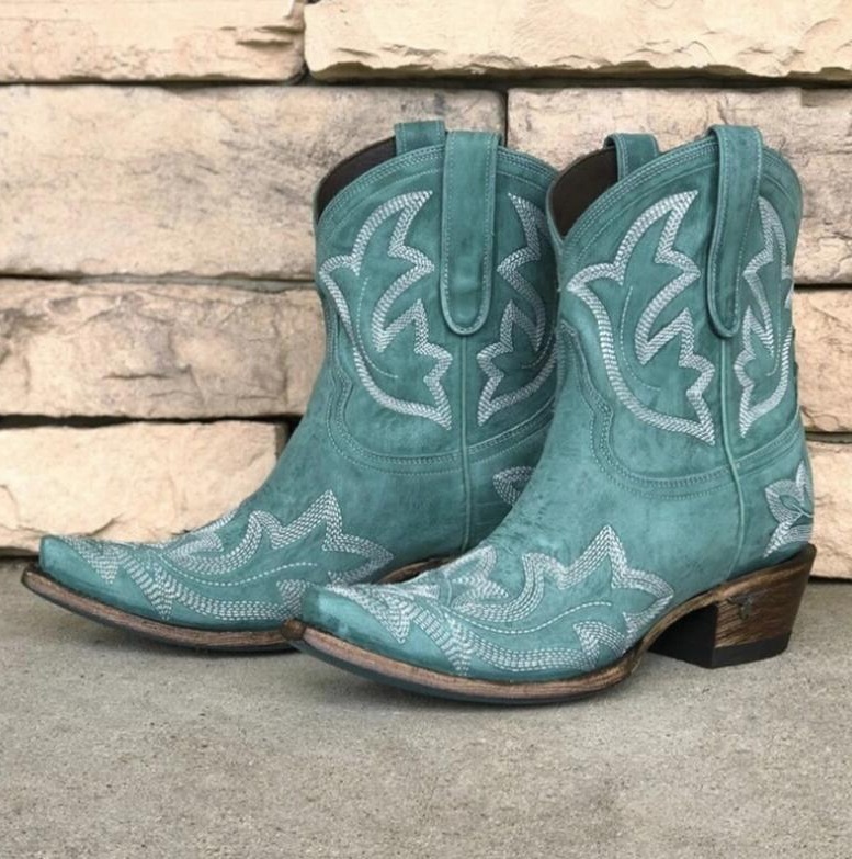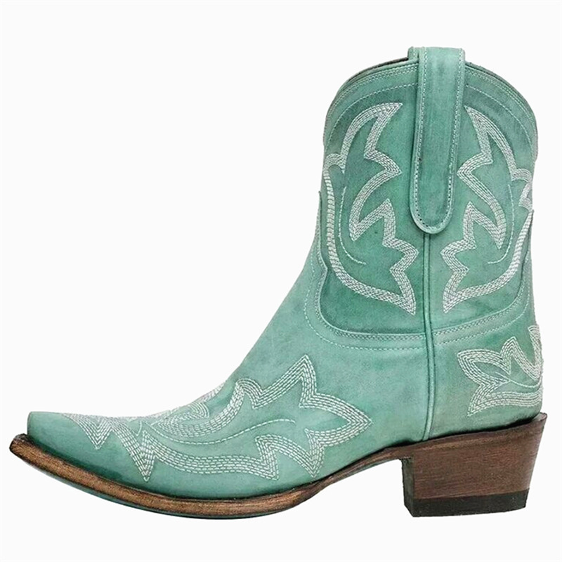 跨境大码女靴欧美秋冬刺绣粗跟短筒靴女亚马逊爆款马丁靴一件代发