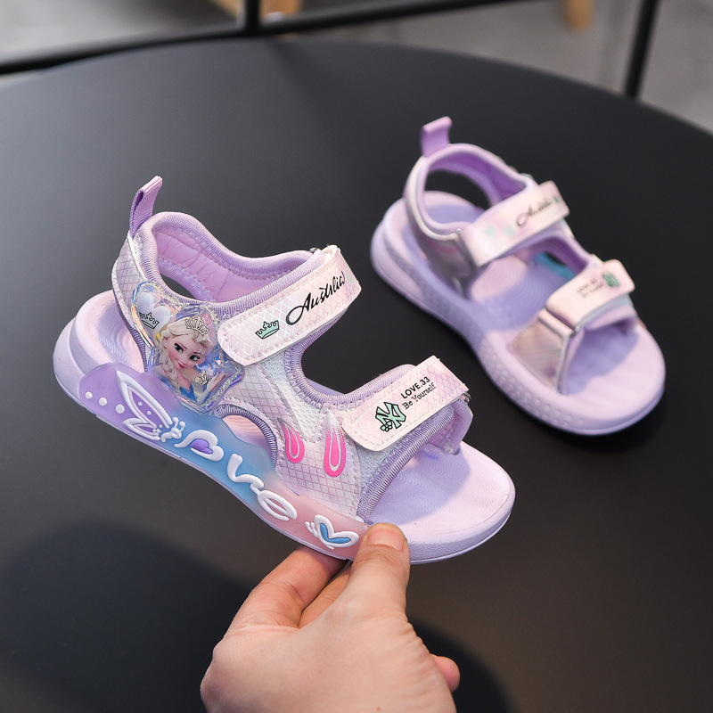 2023年新款夏季女童凉鞋韩版时尚爱莎公主鞋防滑软底中大童沙滩鞋