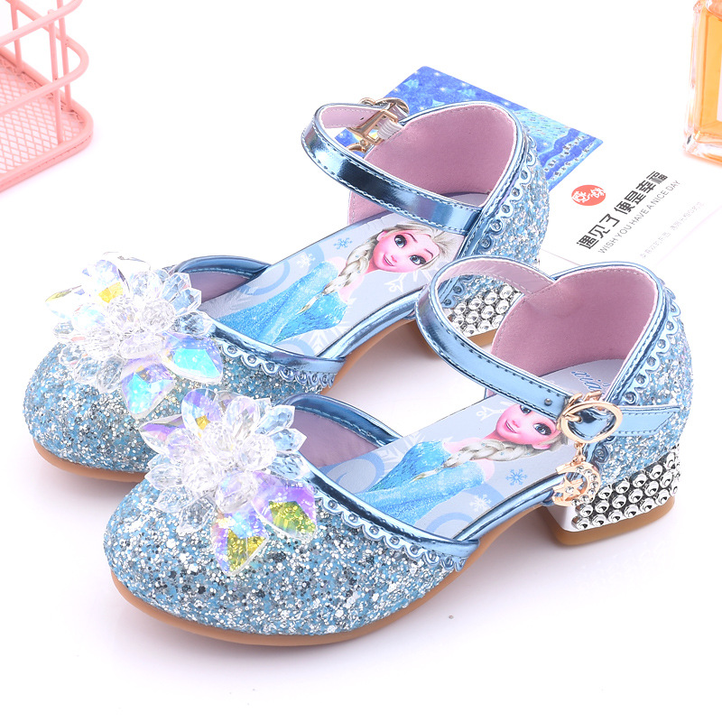 爱莎公主鞋儿童高跟鞋女公主女童艾莎水晶鞋小女孩的冰雪奇缘鞋子