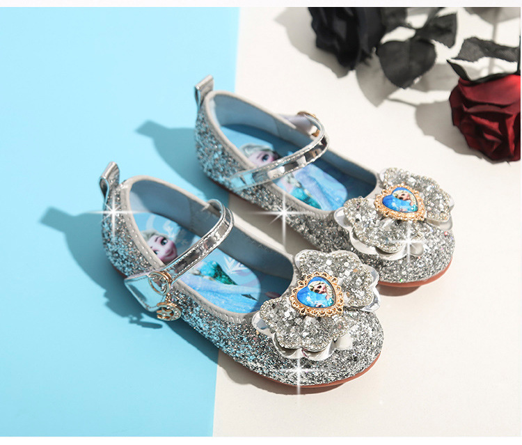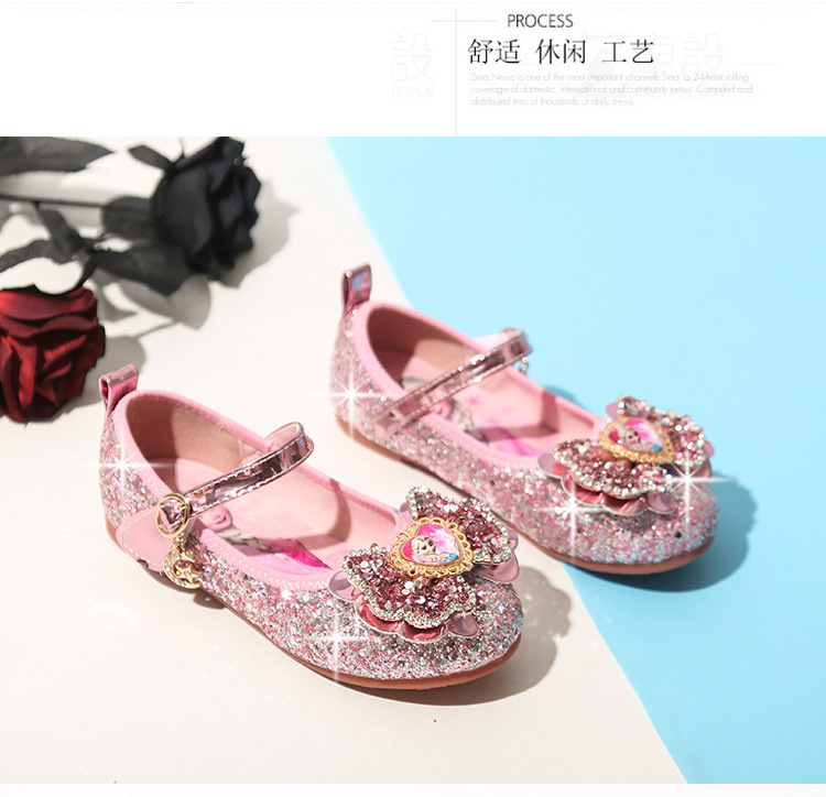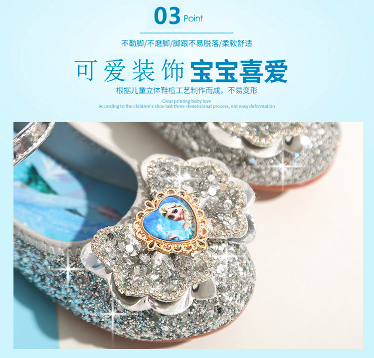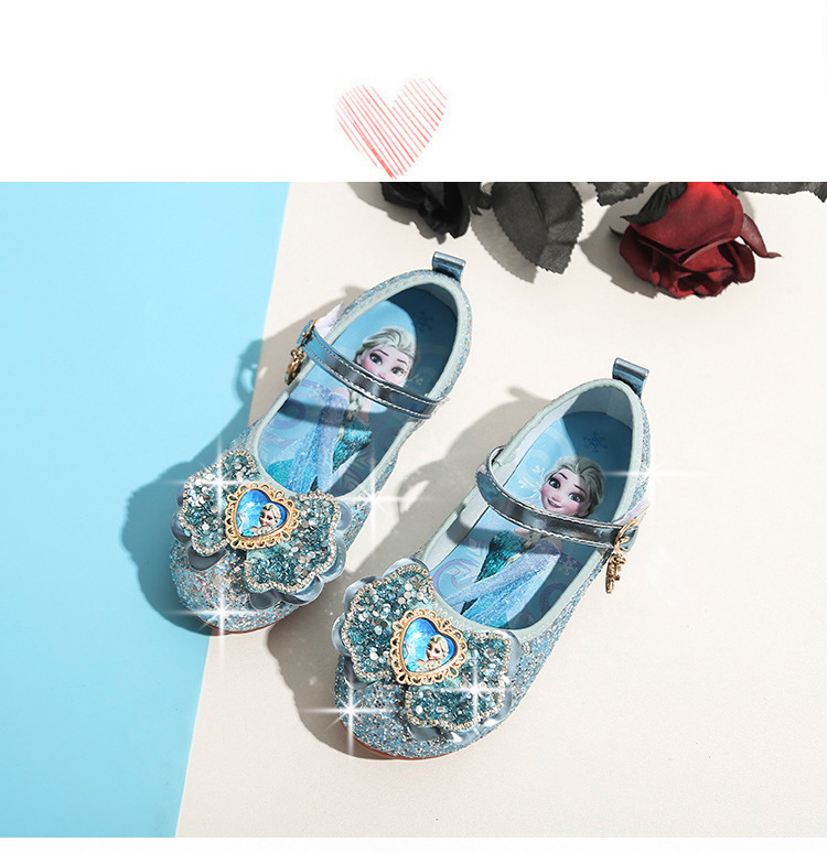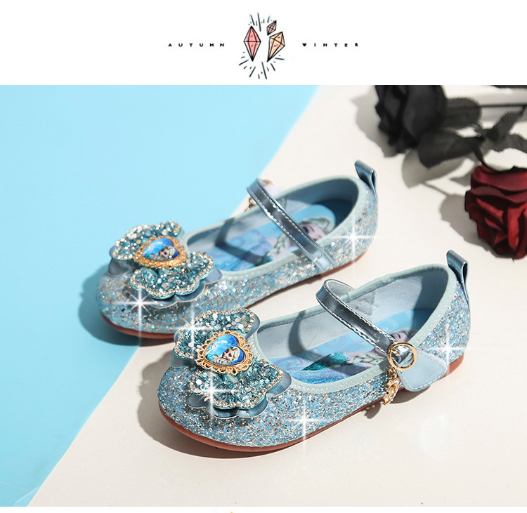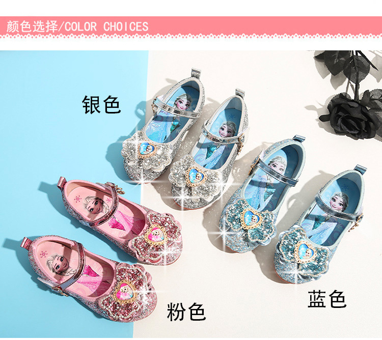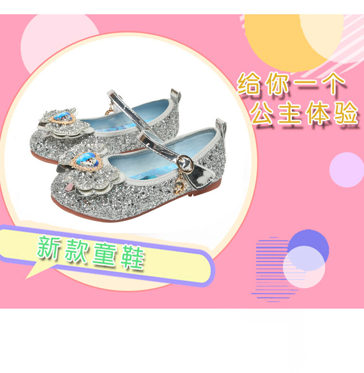 2024新款爱莎女童皮鞋冰雪奇缘公主鞋水钻亮片儿童单鞋魔术贴童鞋