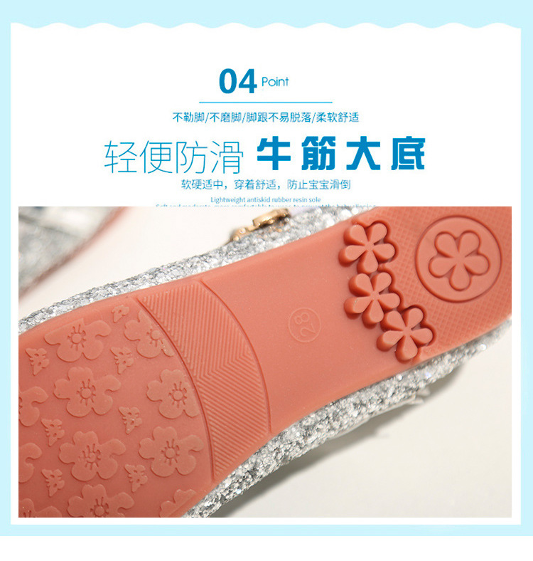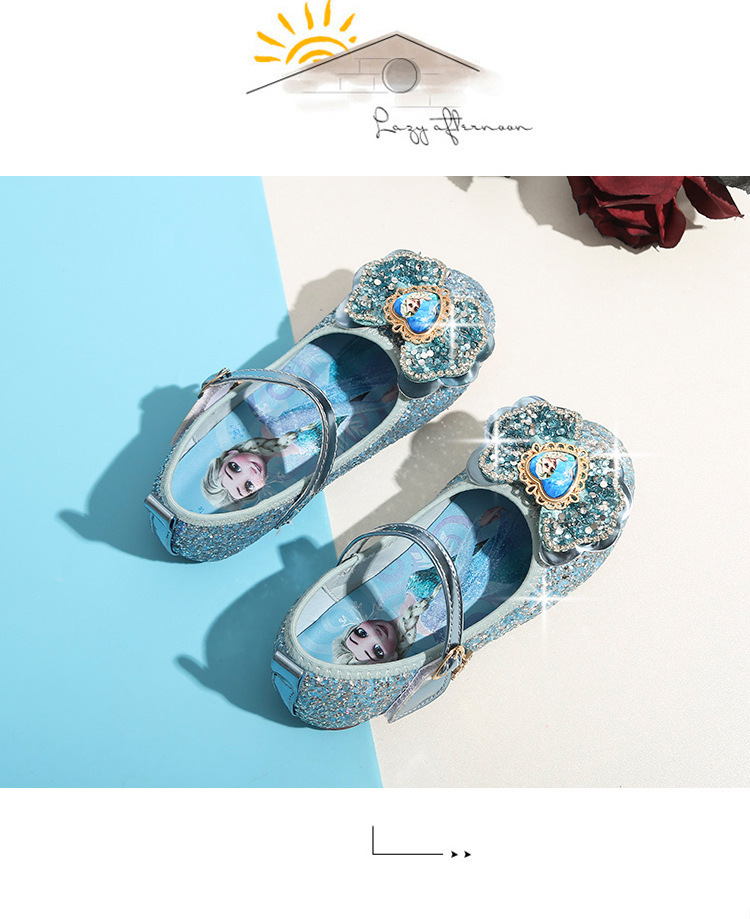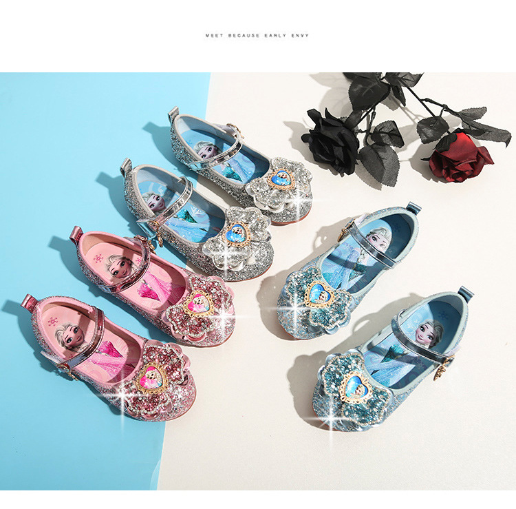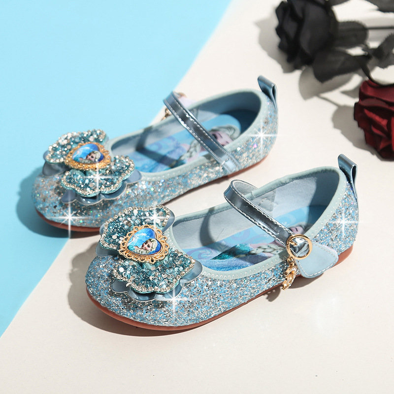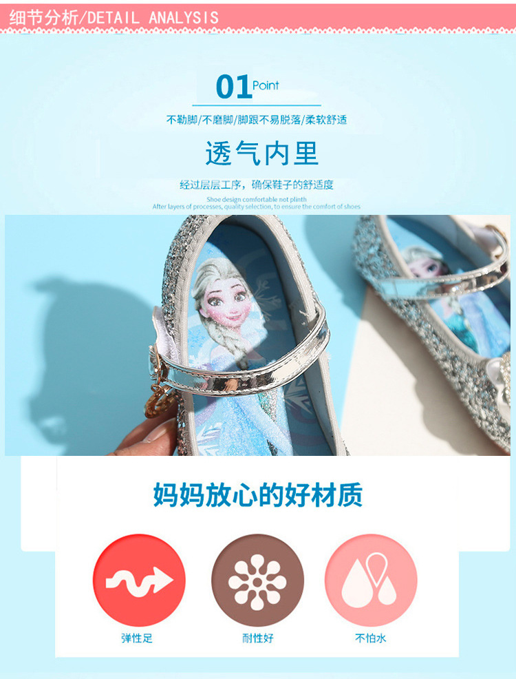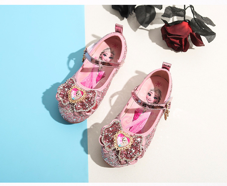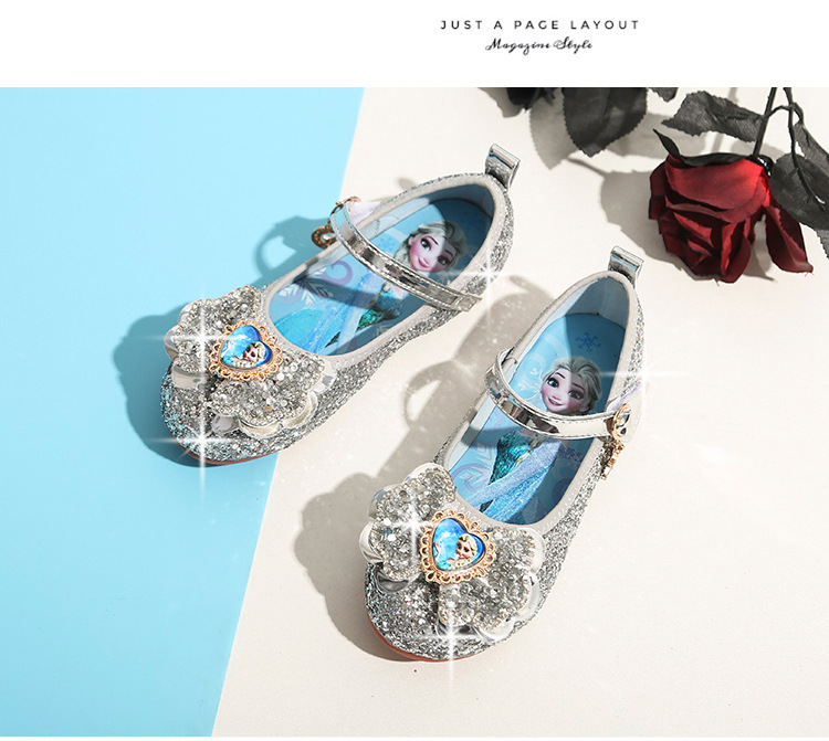 2024新款爱莎女童皮鞋冰雪奇缘公主鞋水钻亮片儿童单鞋魔术贴童鞋