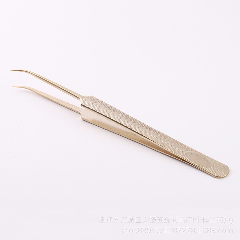 高精密金色鱼纹睫毛夹睫毛镊子美睫师嫁接开花假睫毛工具防滑多根