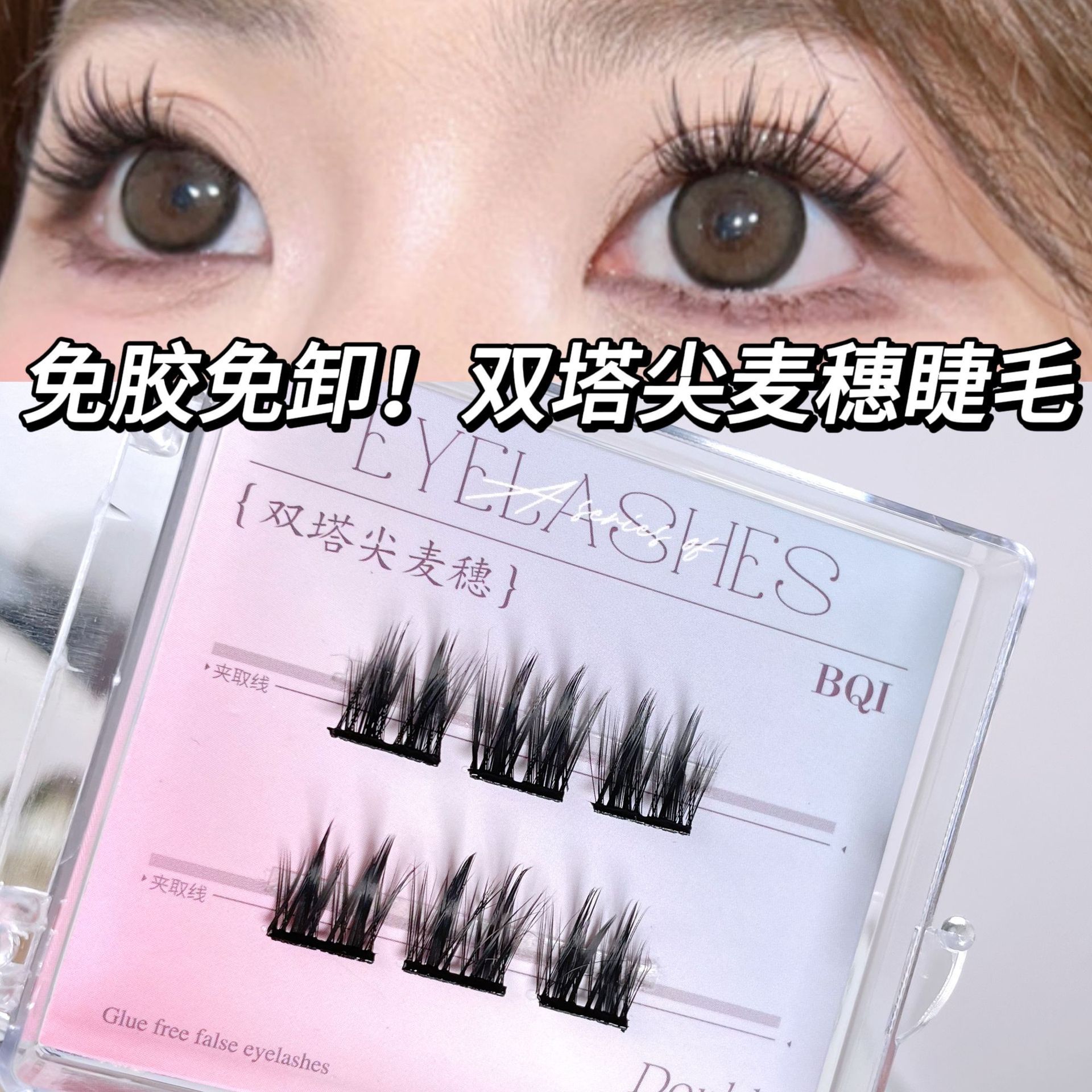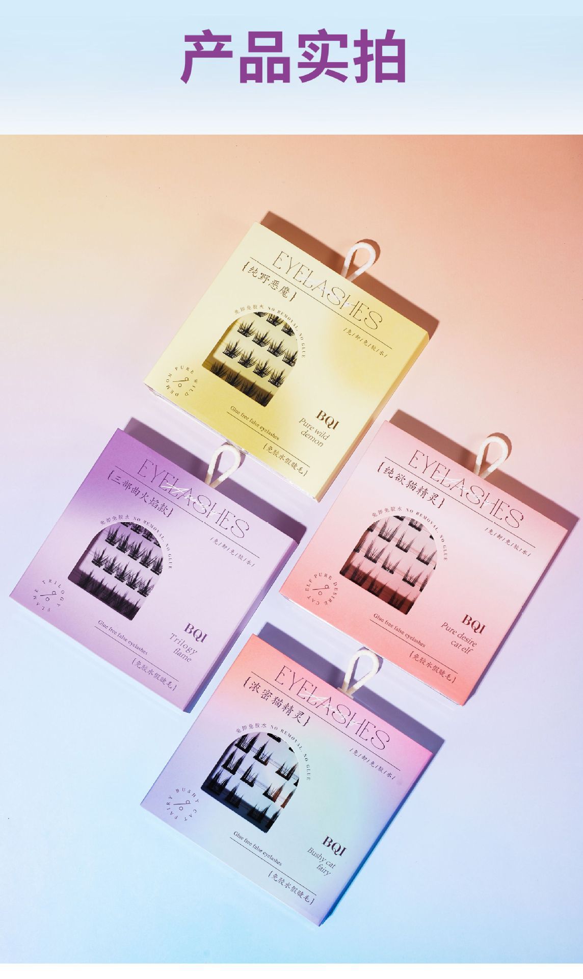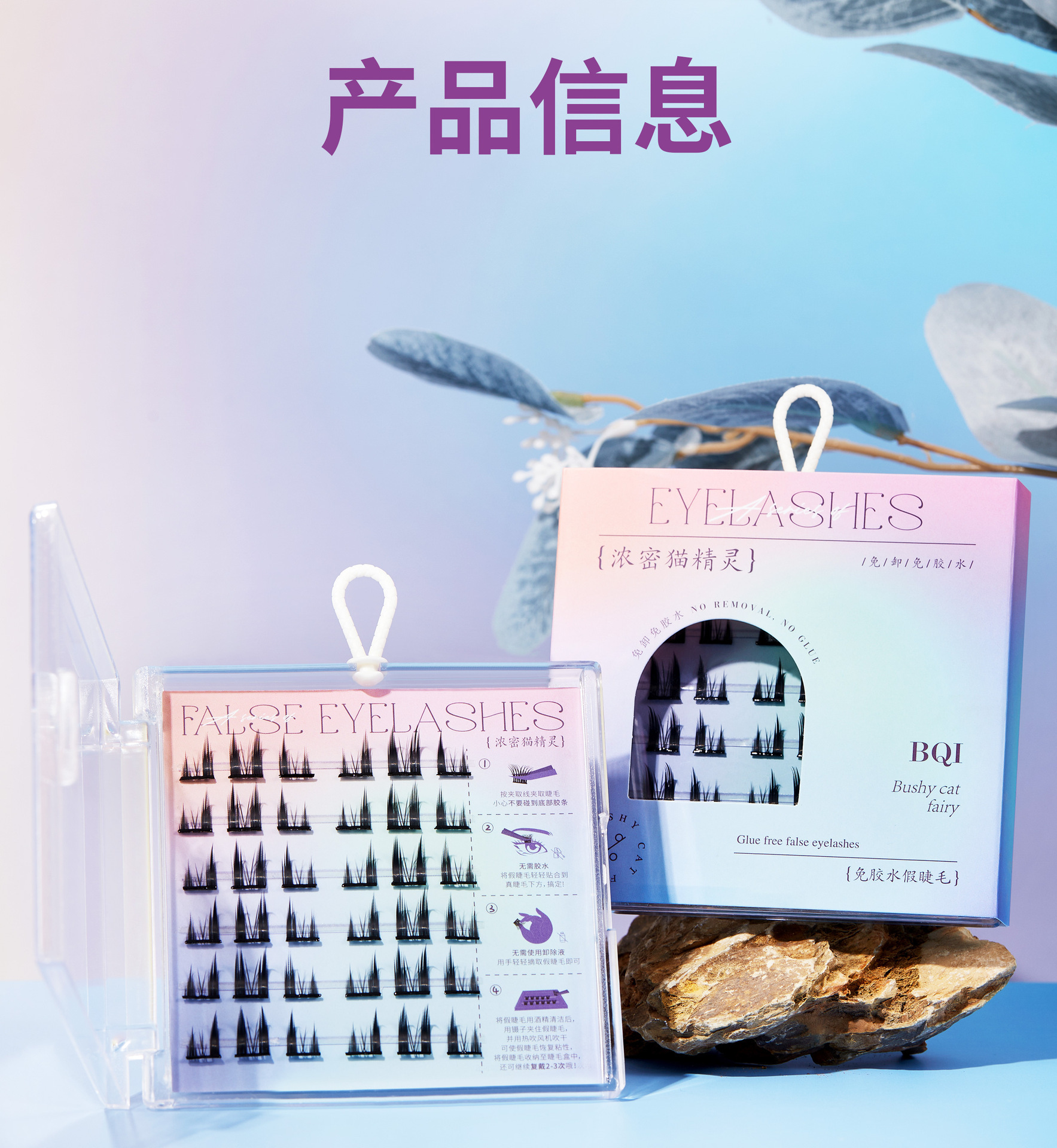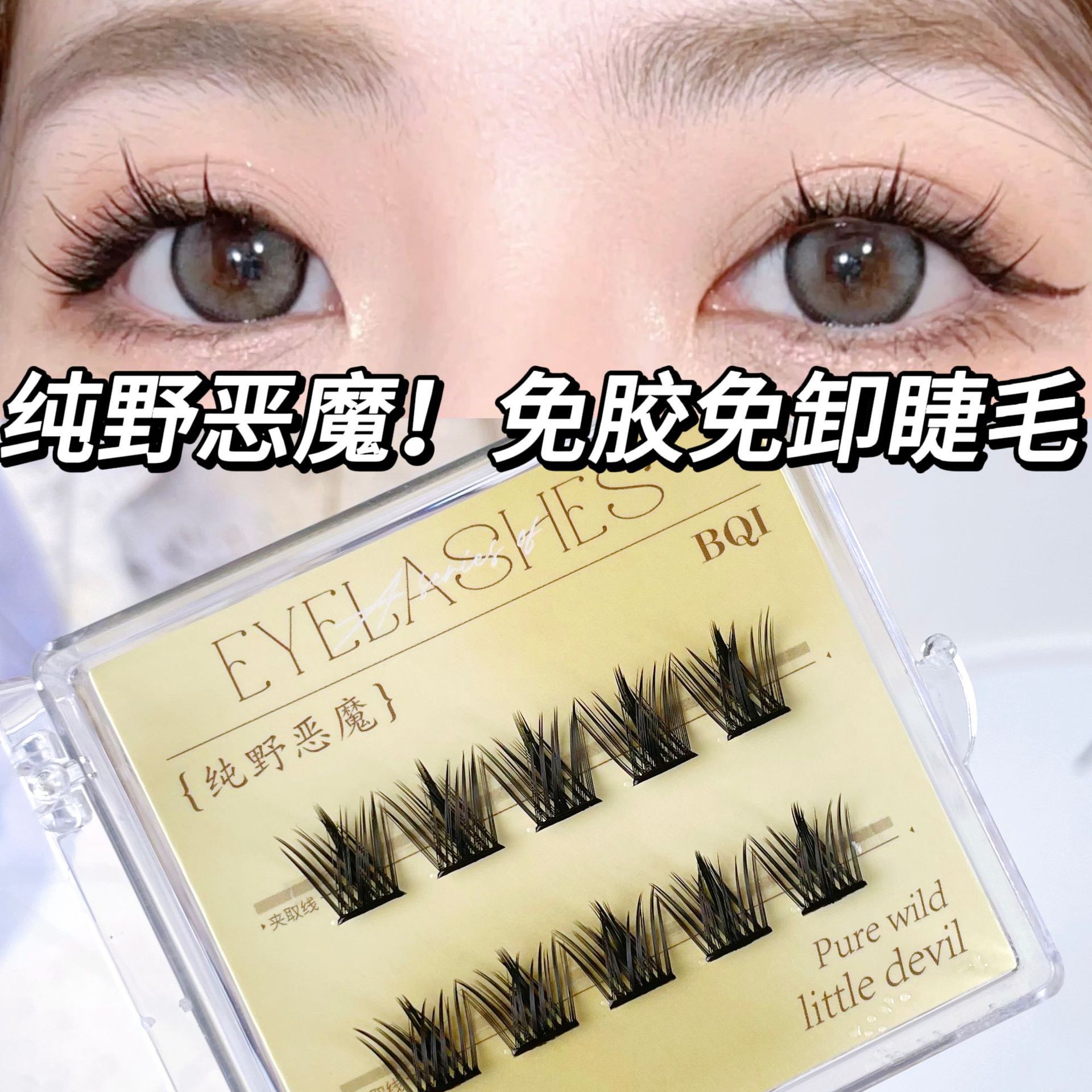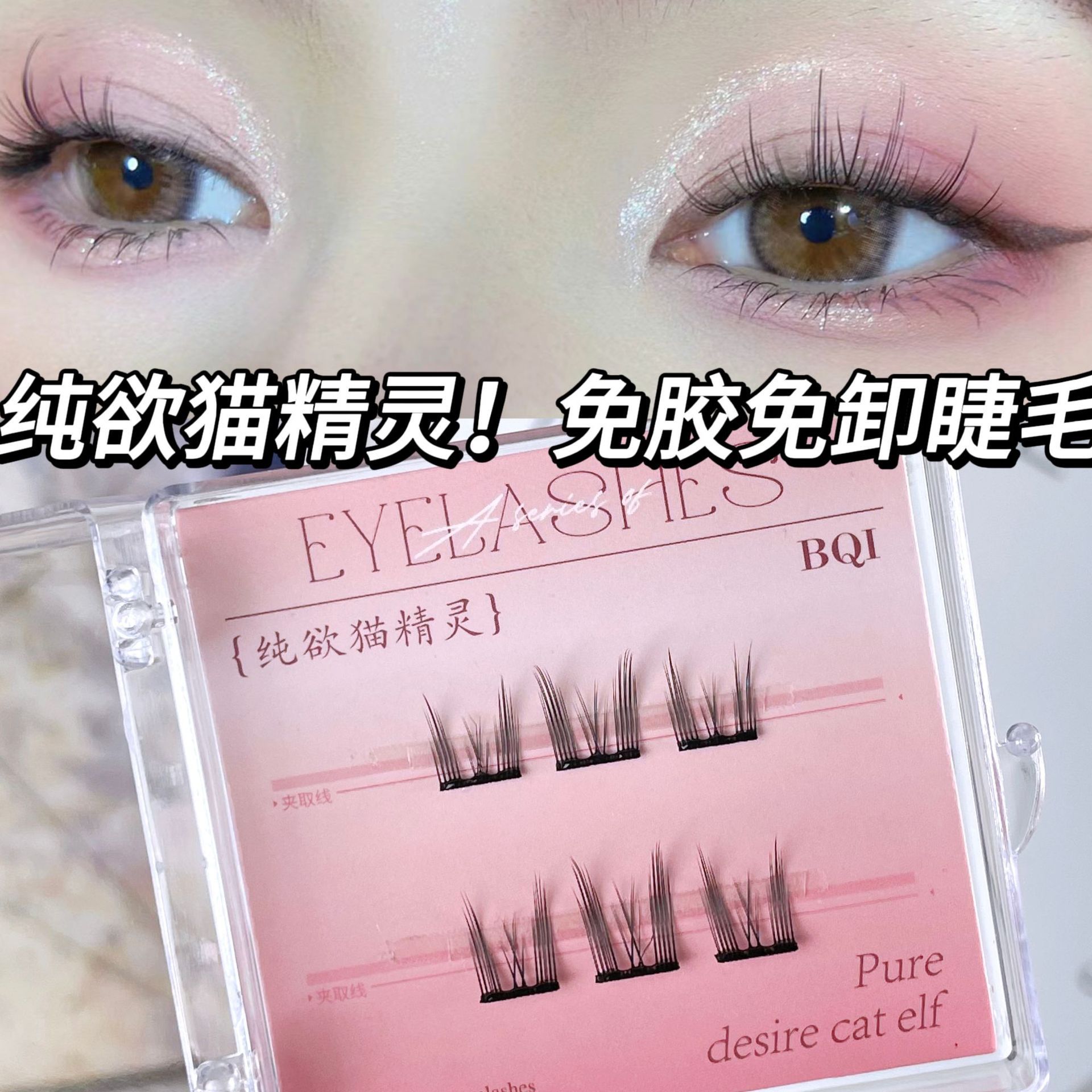 BQI免胶假睫毛自粘细梗自然浓密套装懒人猫耳朵精灵下睫毛睫毛