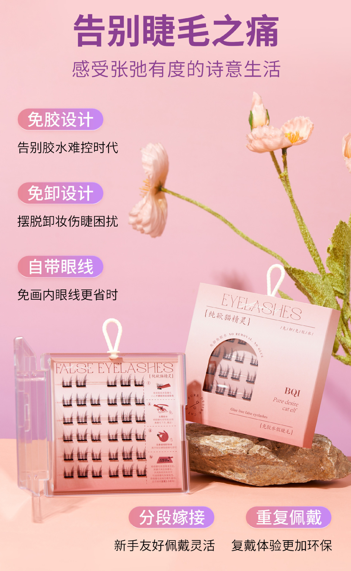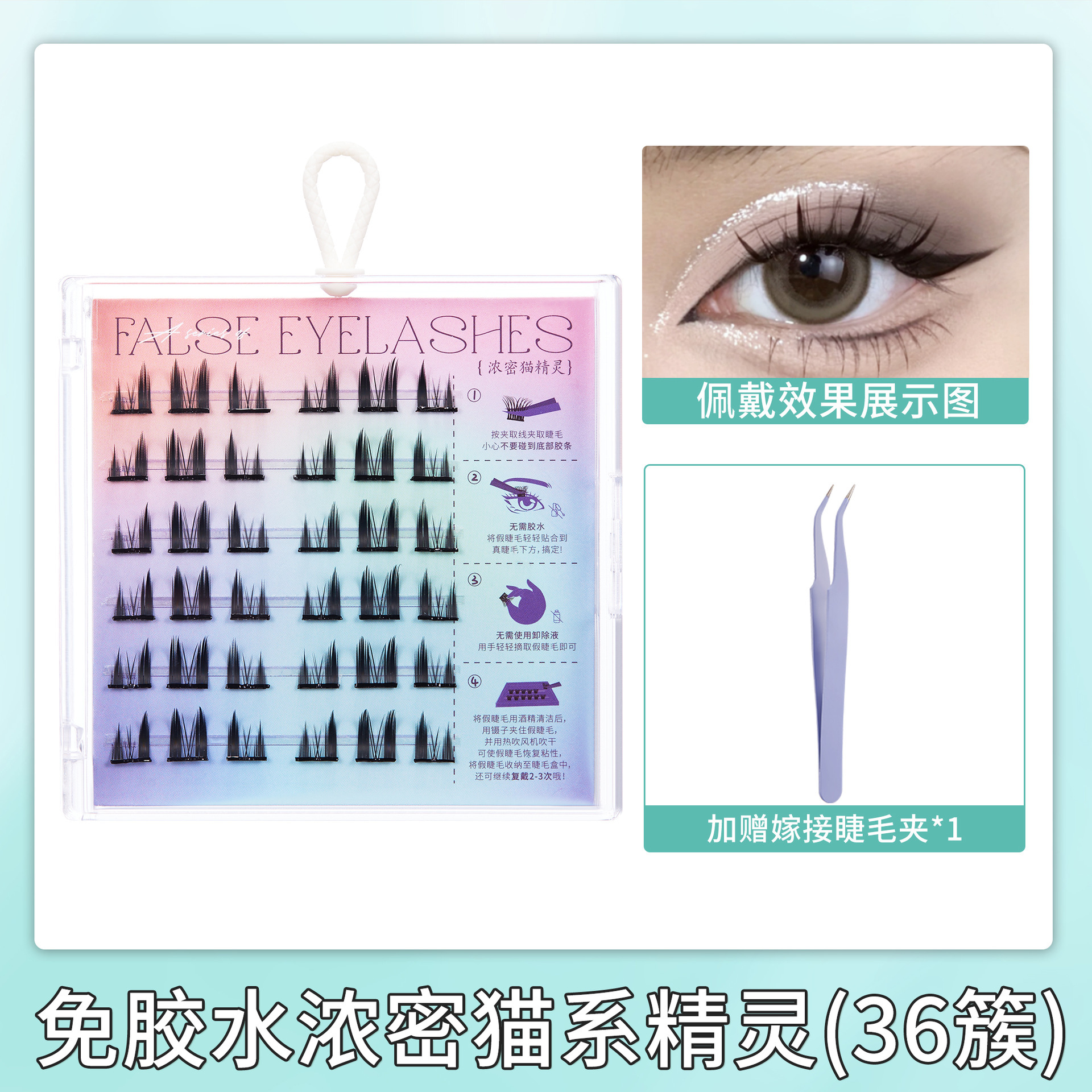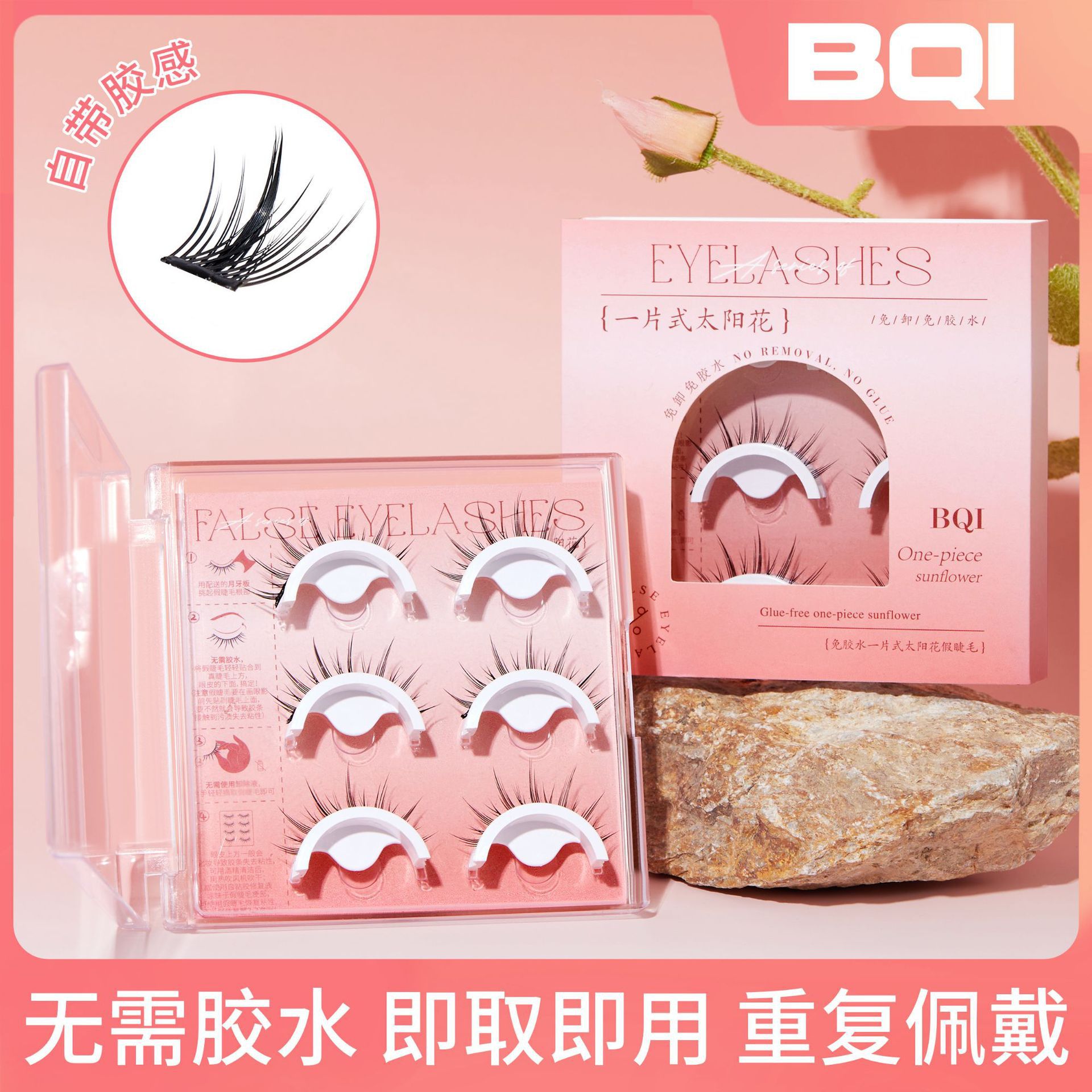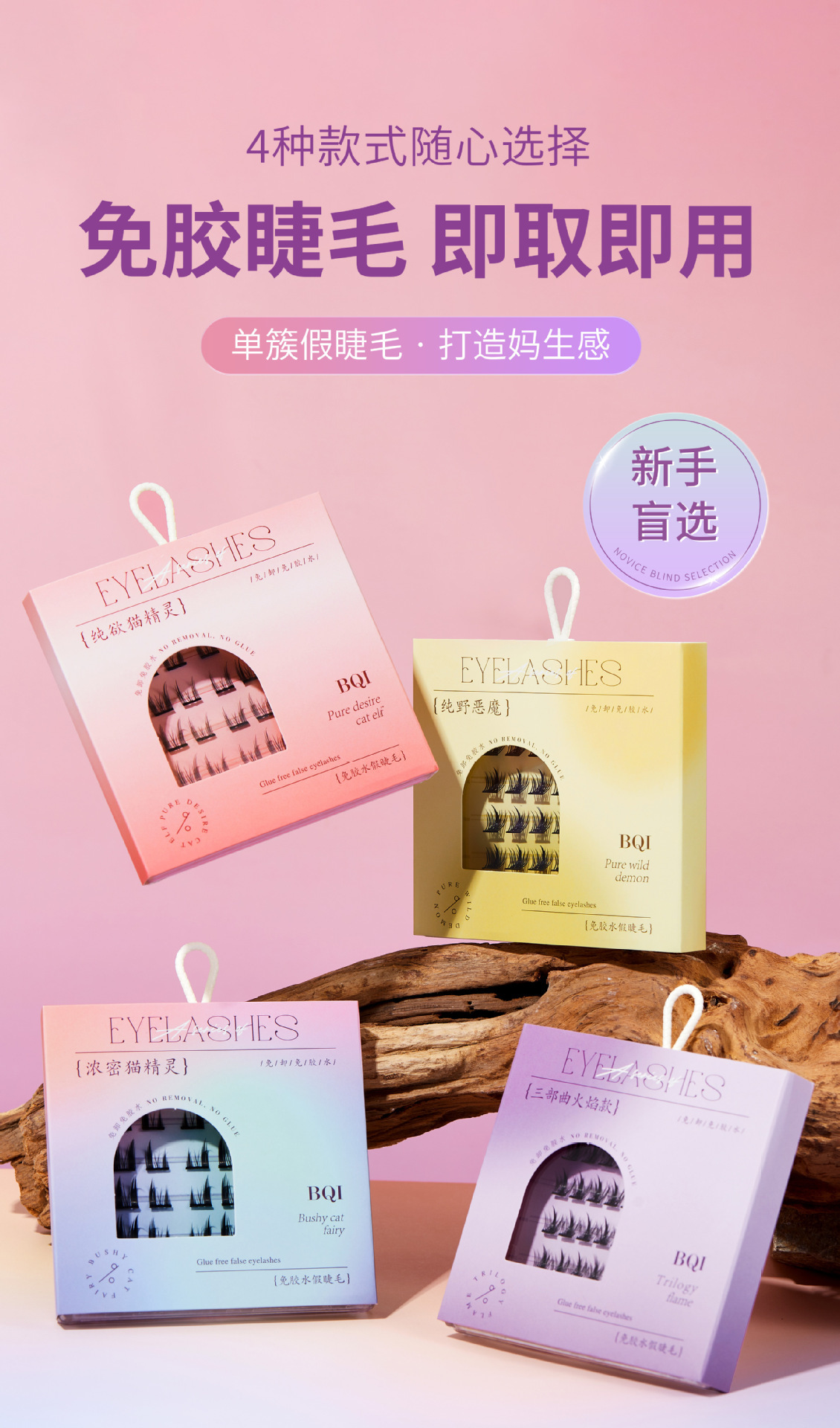 BQI免胶假睫毛自粘细梗自然浓密套装懒人猫耳朵精灵下睫毛睫毛