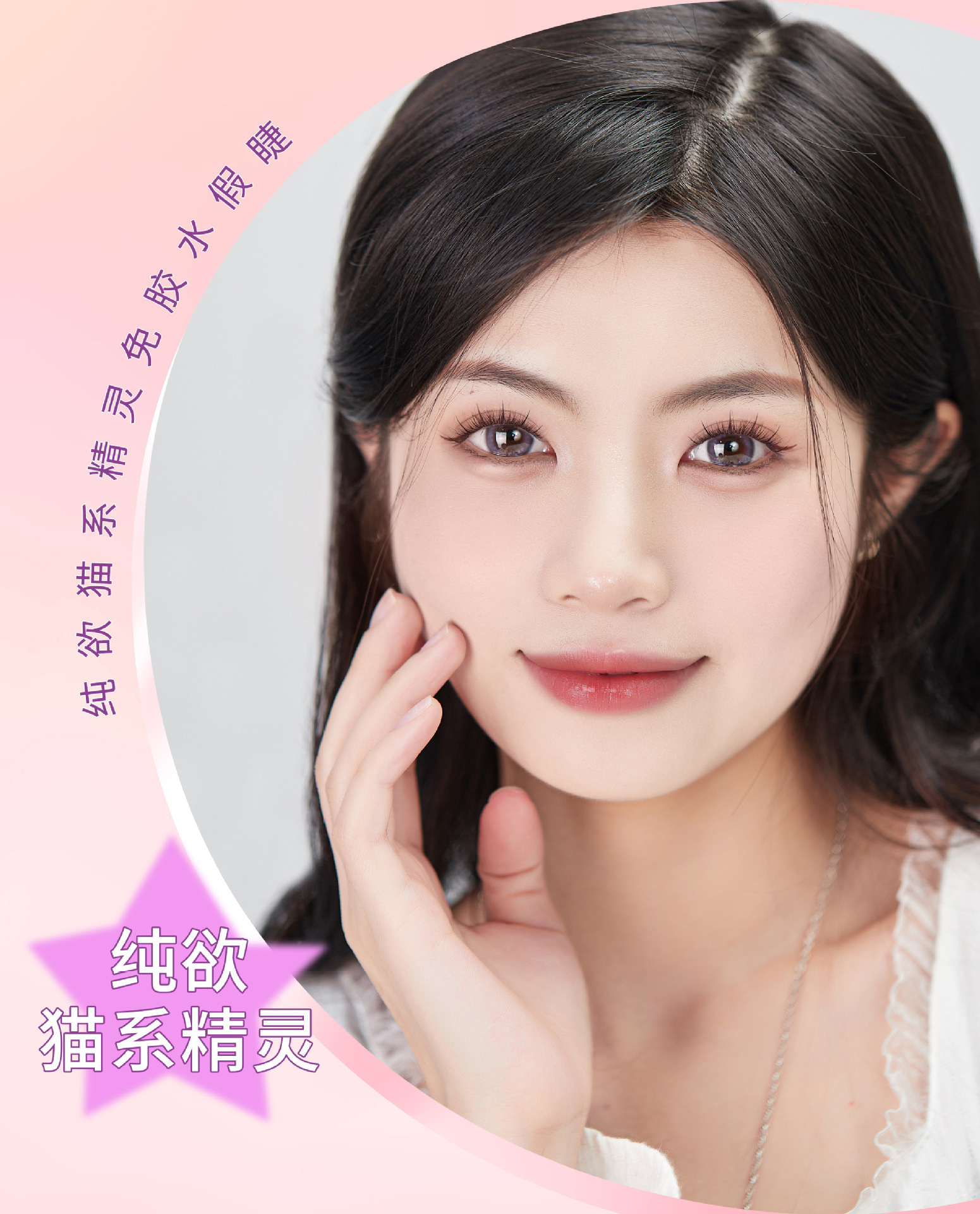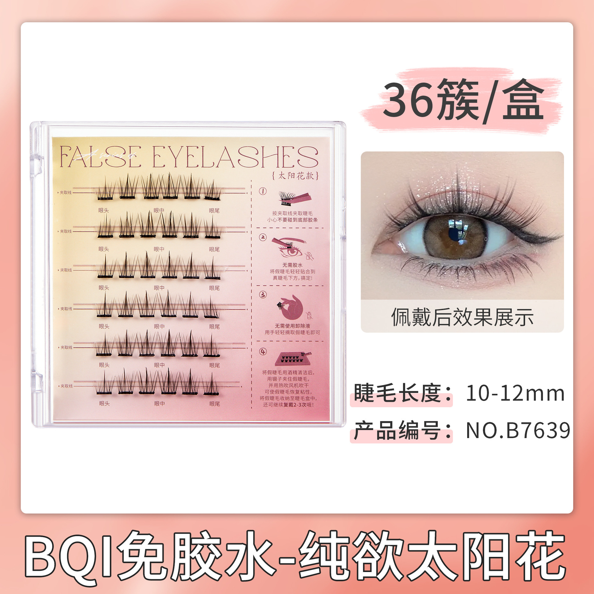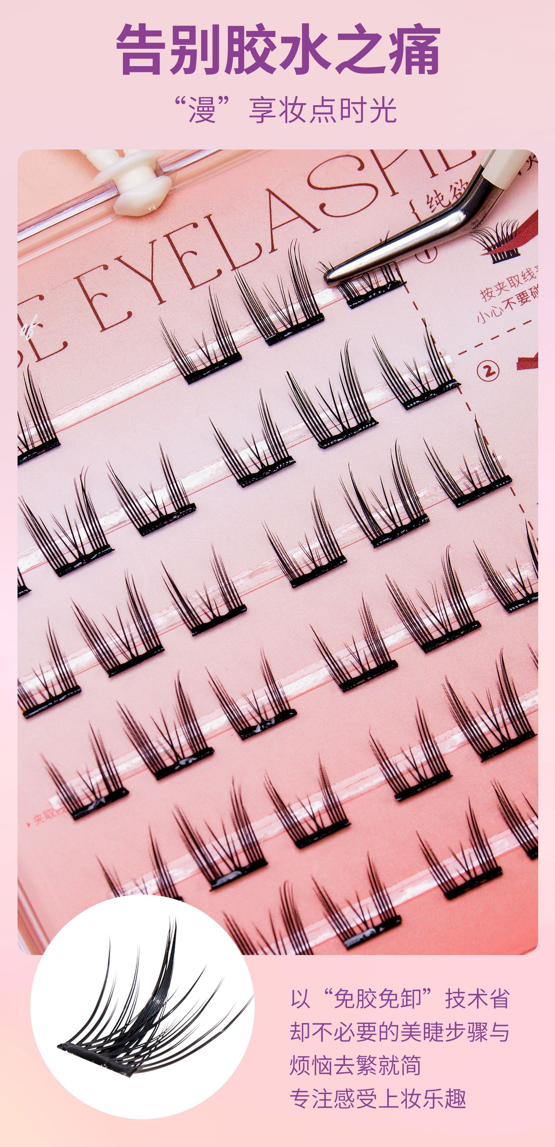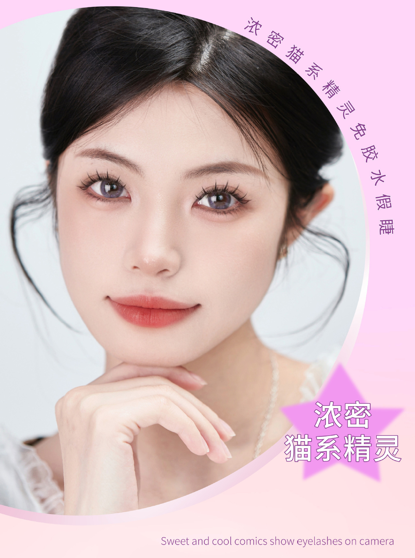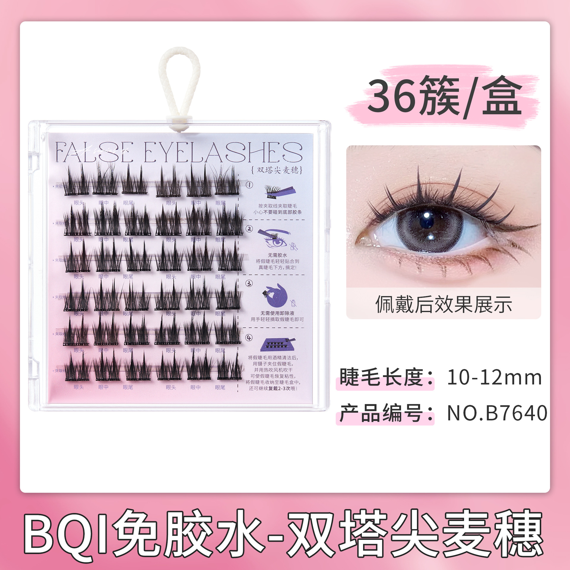 BQI免胶假睫毛自粘细梗自然浓密套装懒人猫耳朵精灵下睫毛睫毛