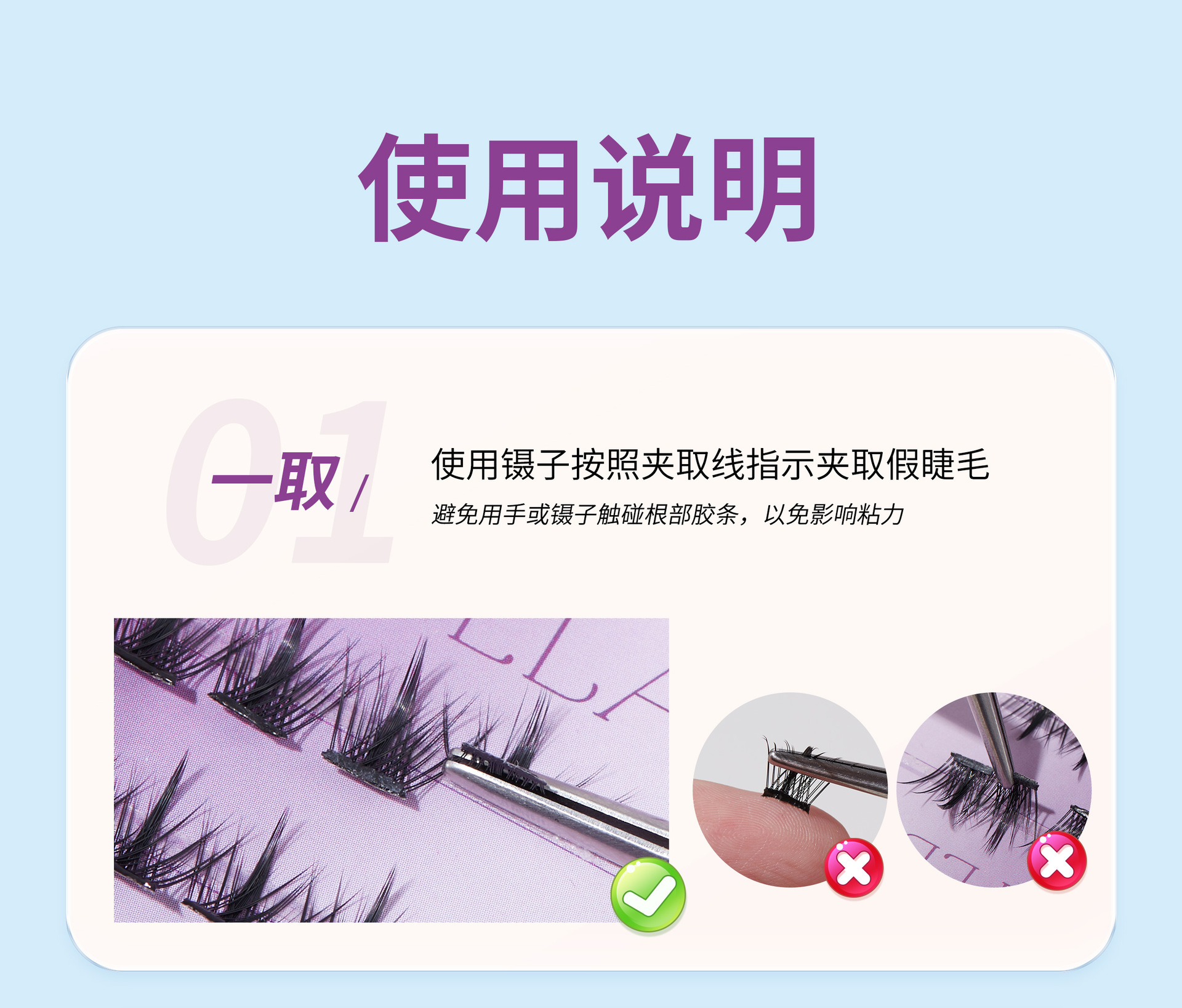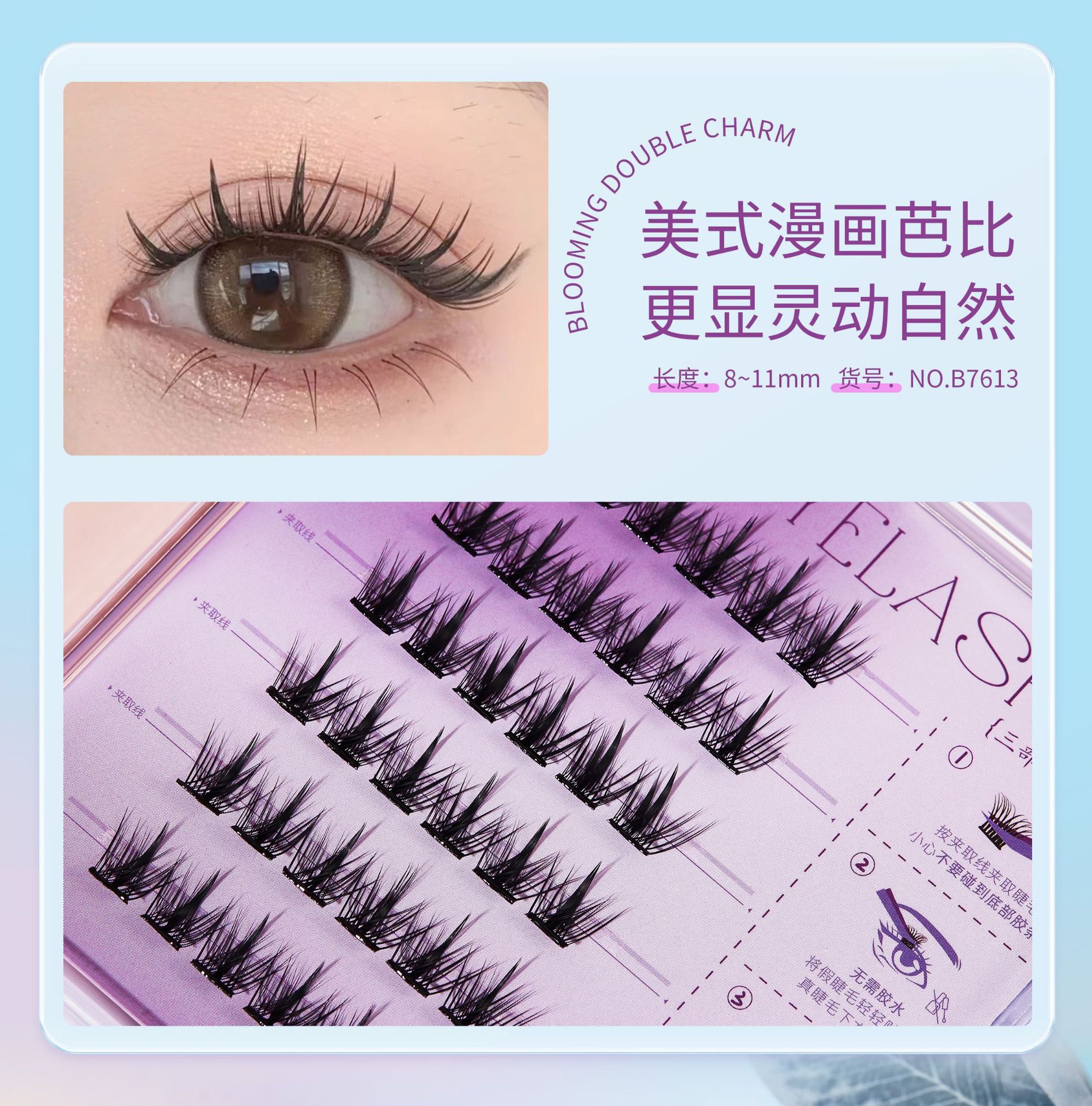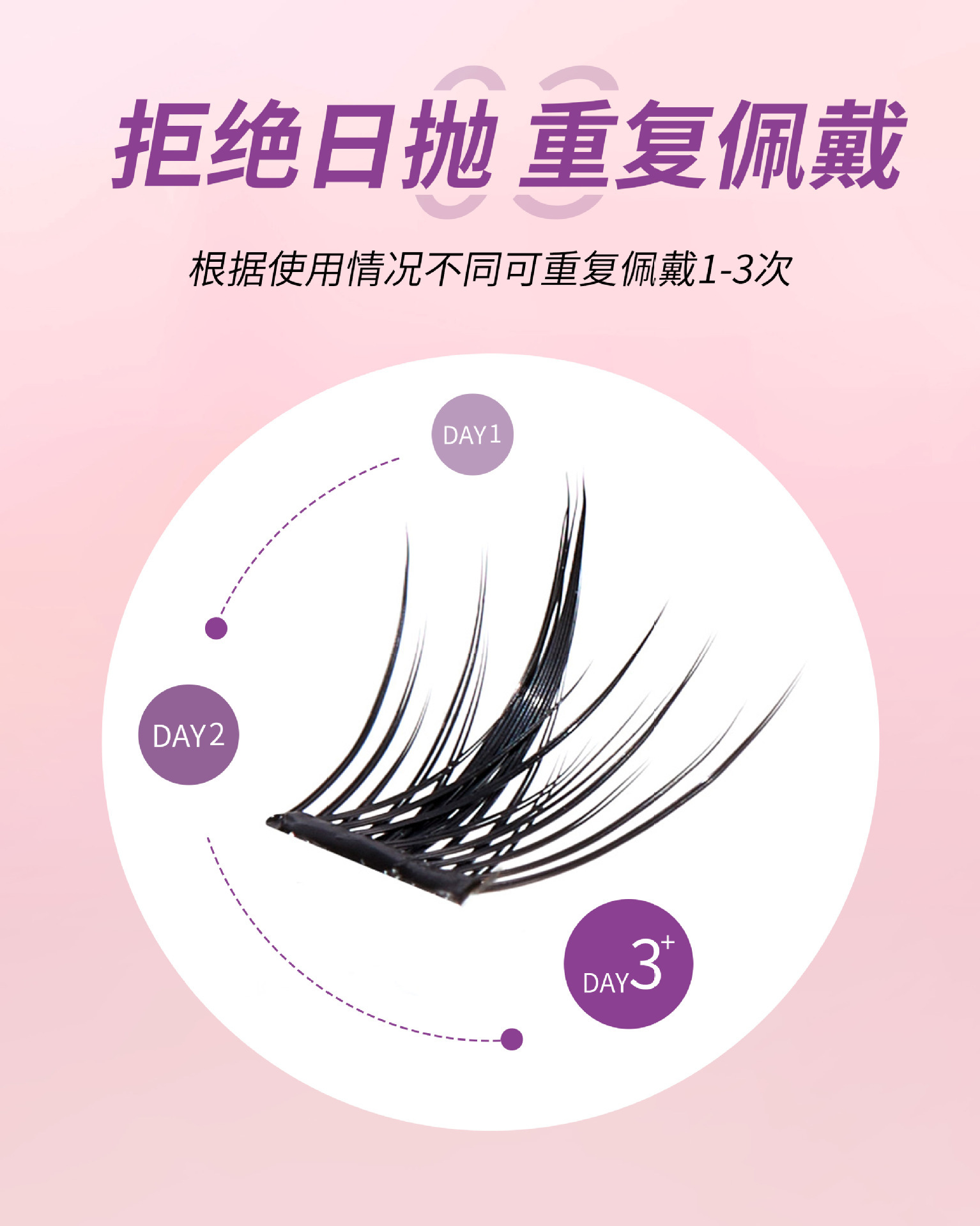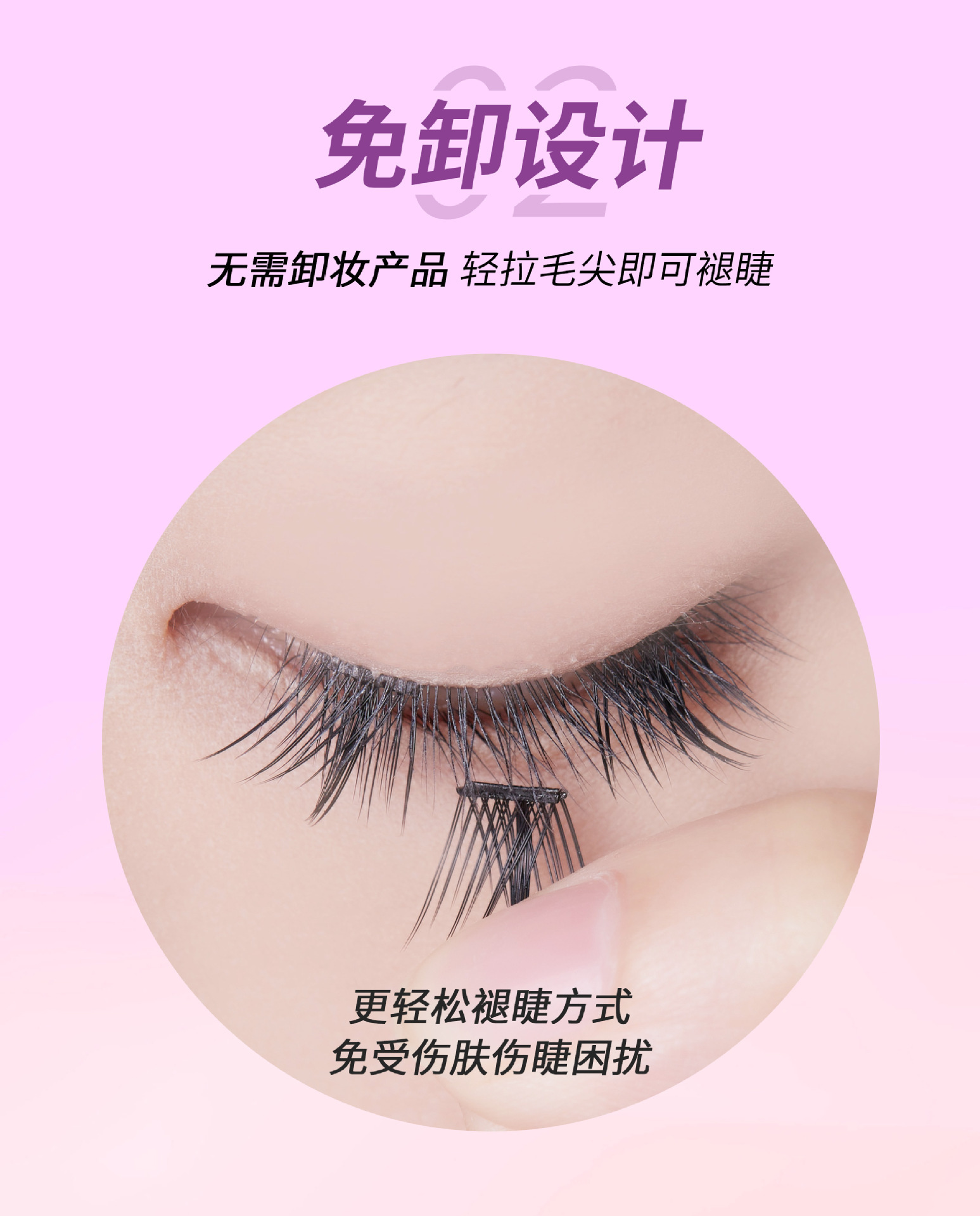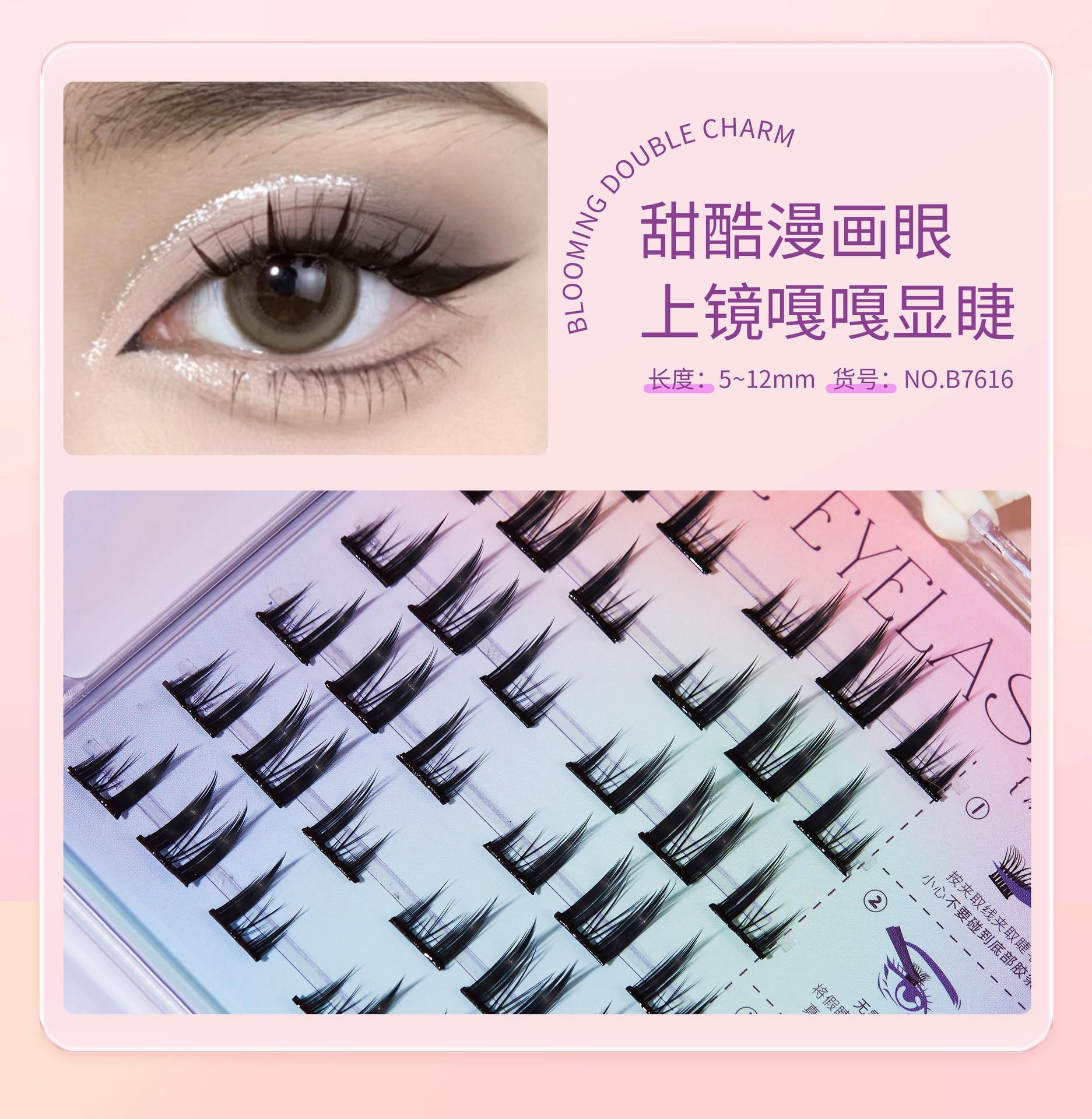BQI免胶假睫毛自粘细梗自然浓密套装懒人猫耳朵精灵下睫毛睫毛