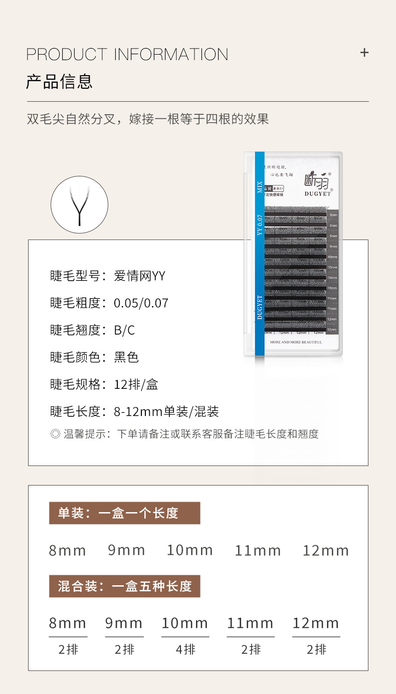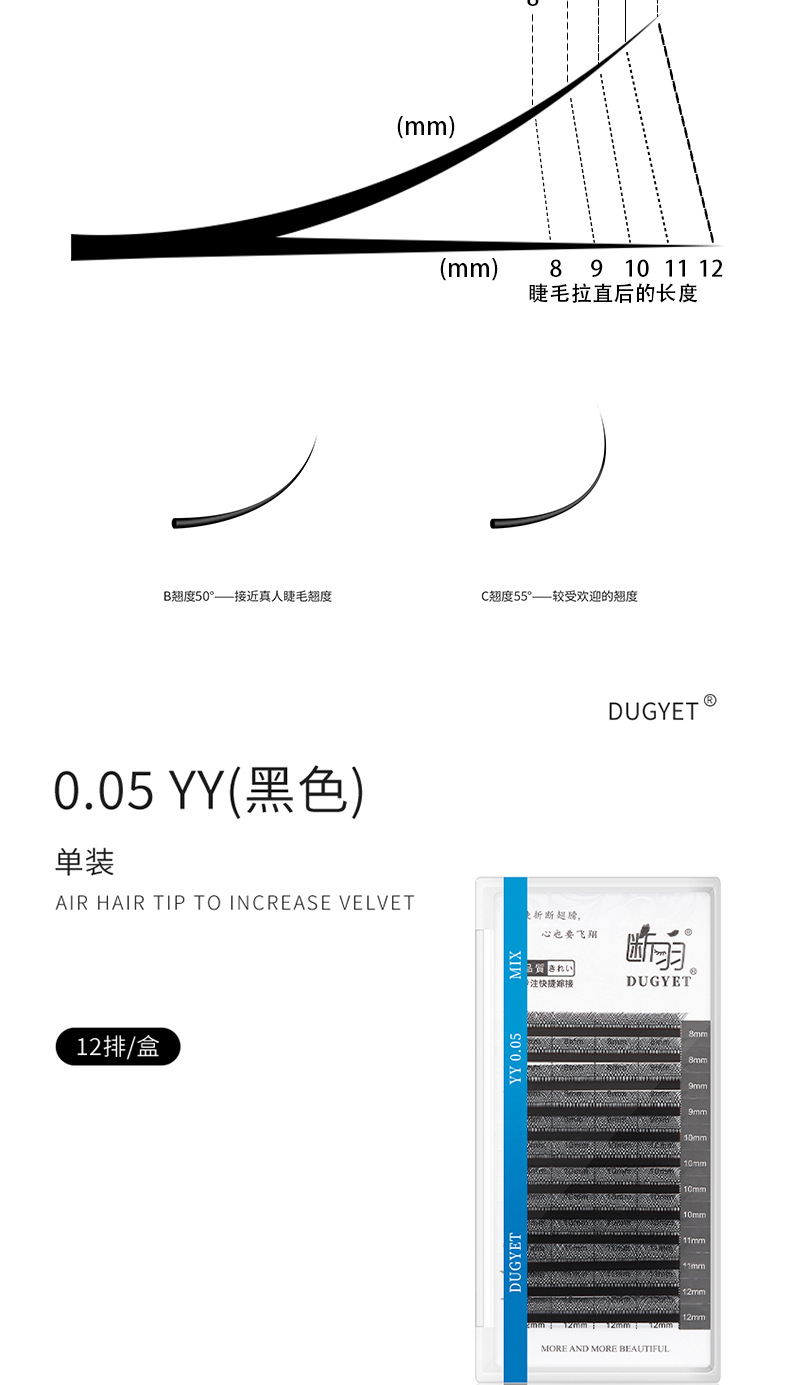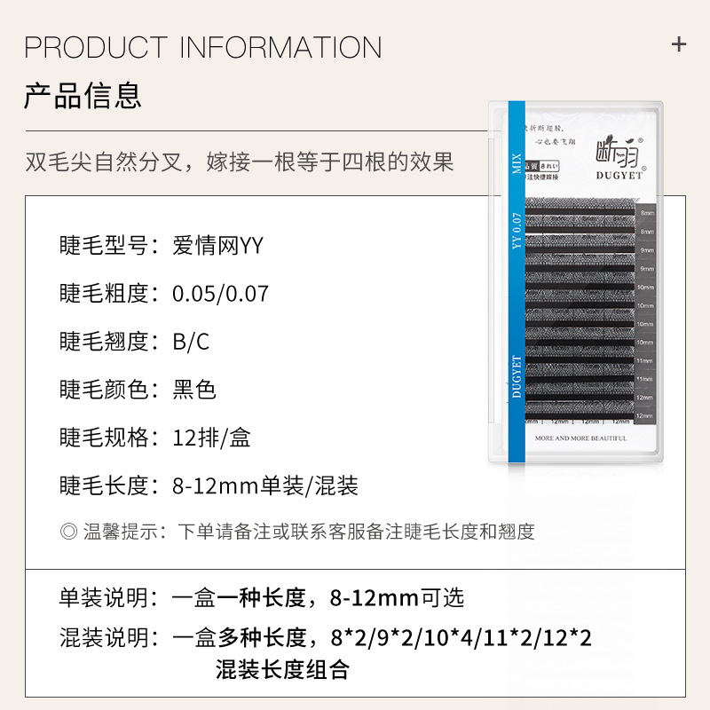 断羽 yy睫毛0.07y型嫁接假睫毛0.05柔软浓密BC翘婴儿弯美睫店专用