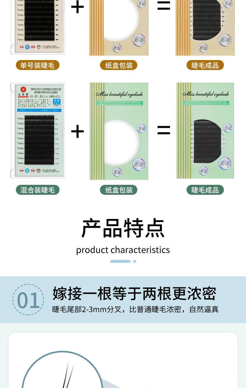 0.15嫁接睫毛单根睫毛工厂批发 假睫毛扁毛双毛尖美睫种植眼睫毛