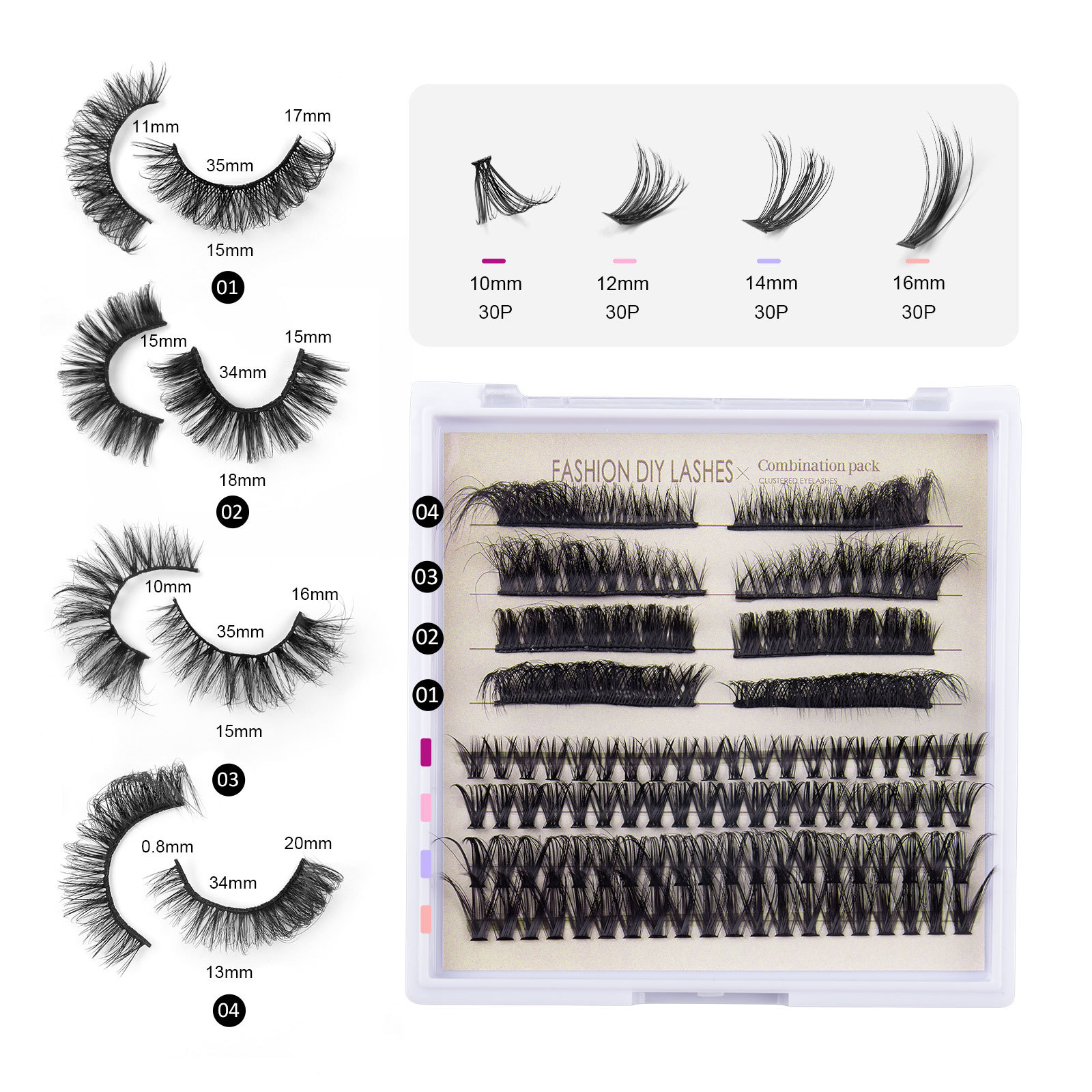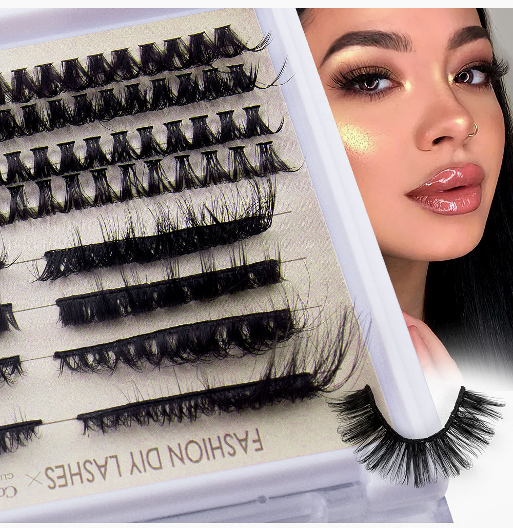 欧美跨境新款DIY嫁接式眼睫毛 美睫单簇自然卷翘夸张假睫毛套装