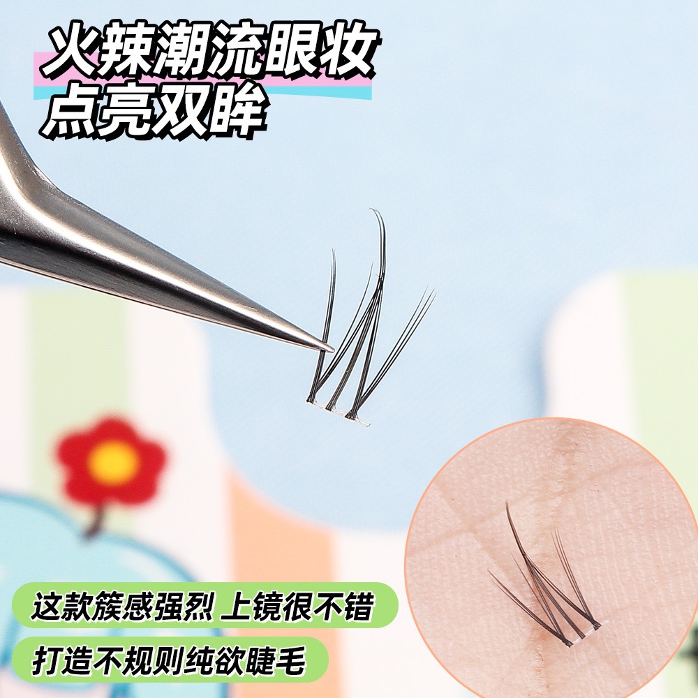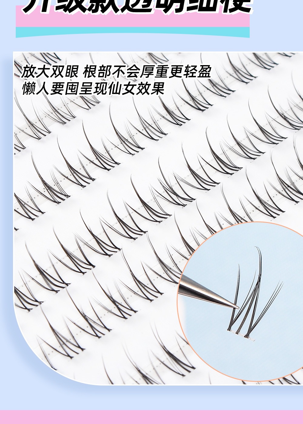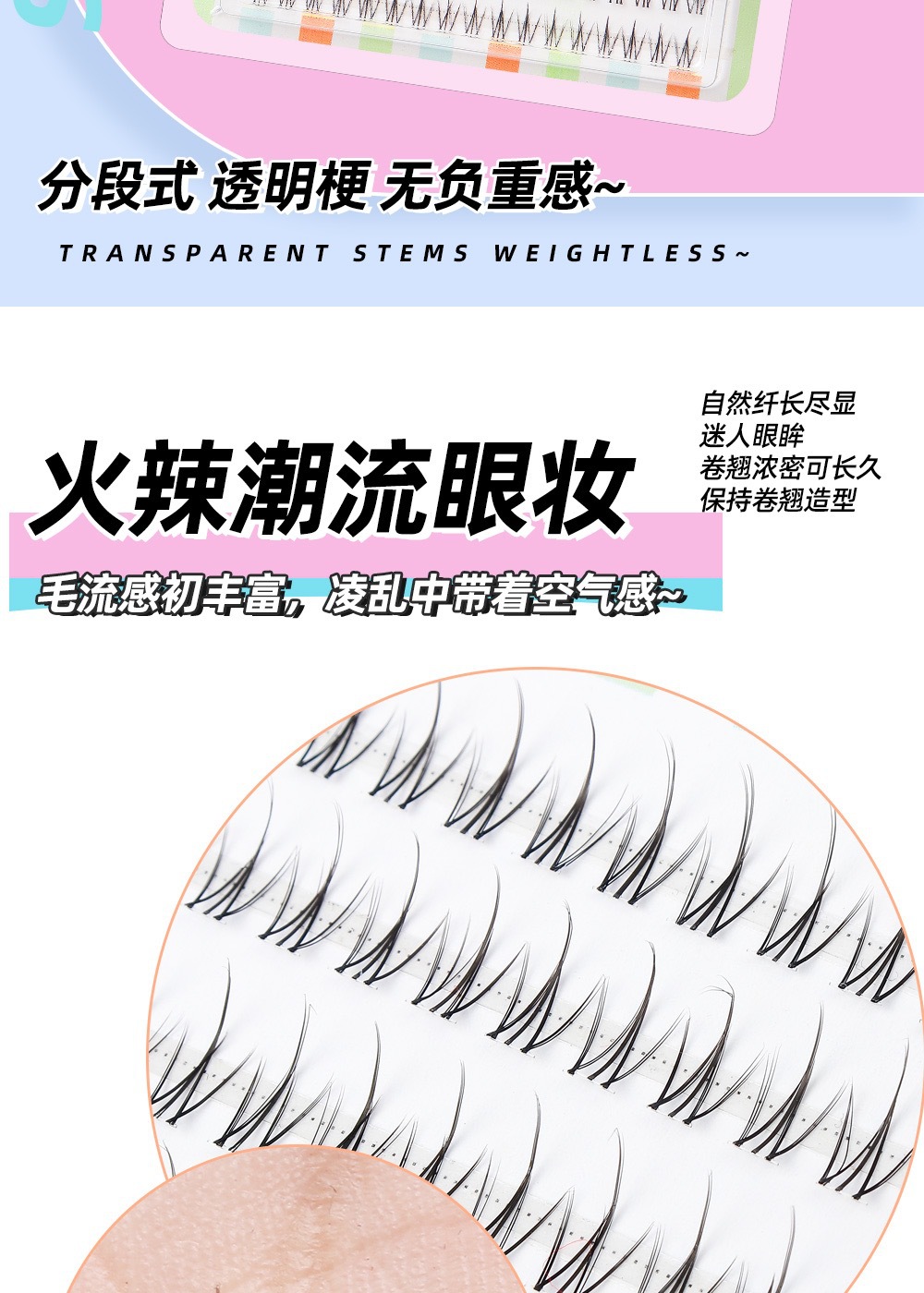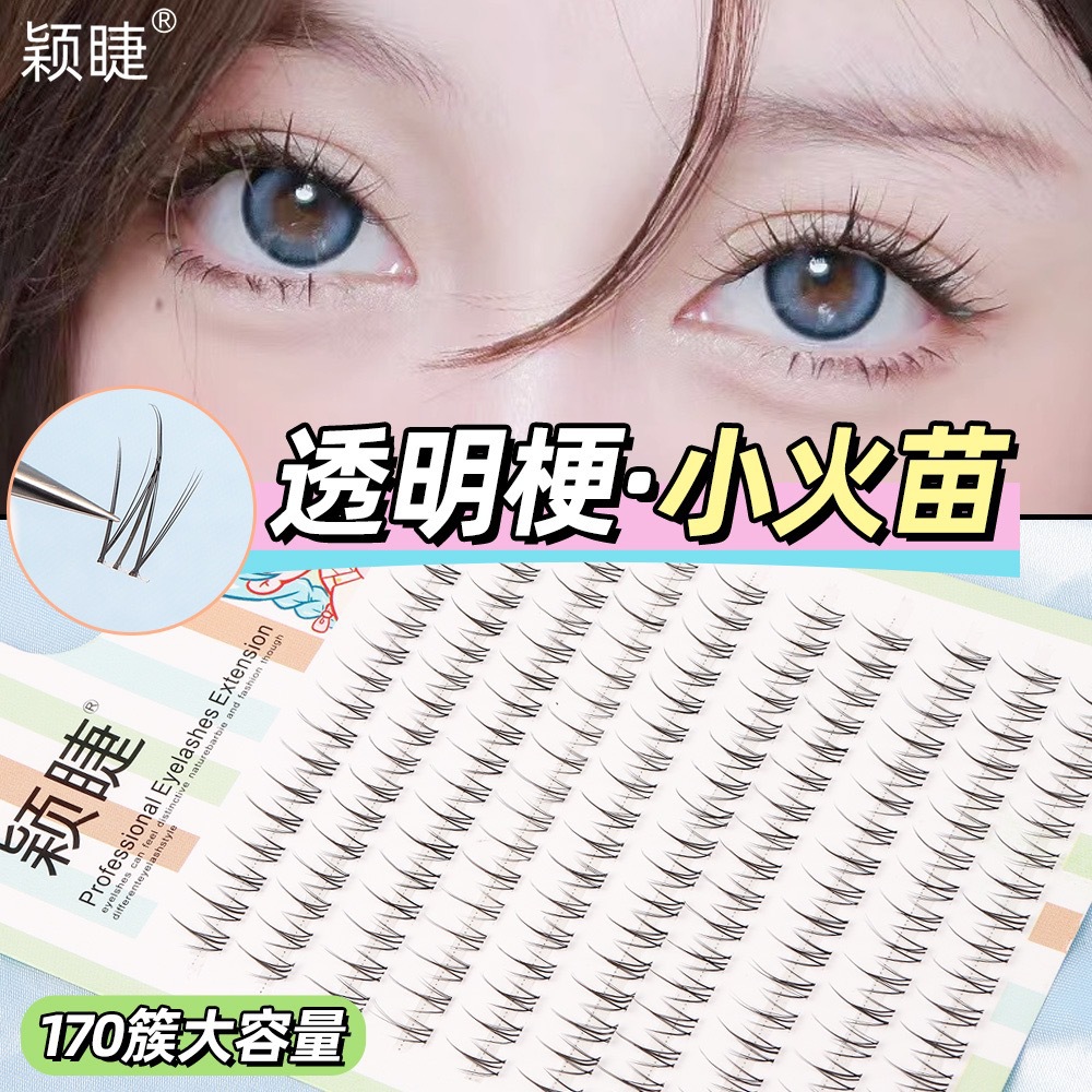 颖睫10排透明梗单簇小火苗自然逼真裸妆素颜假眼睫毛自己嫁接睫毛
