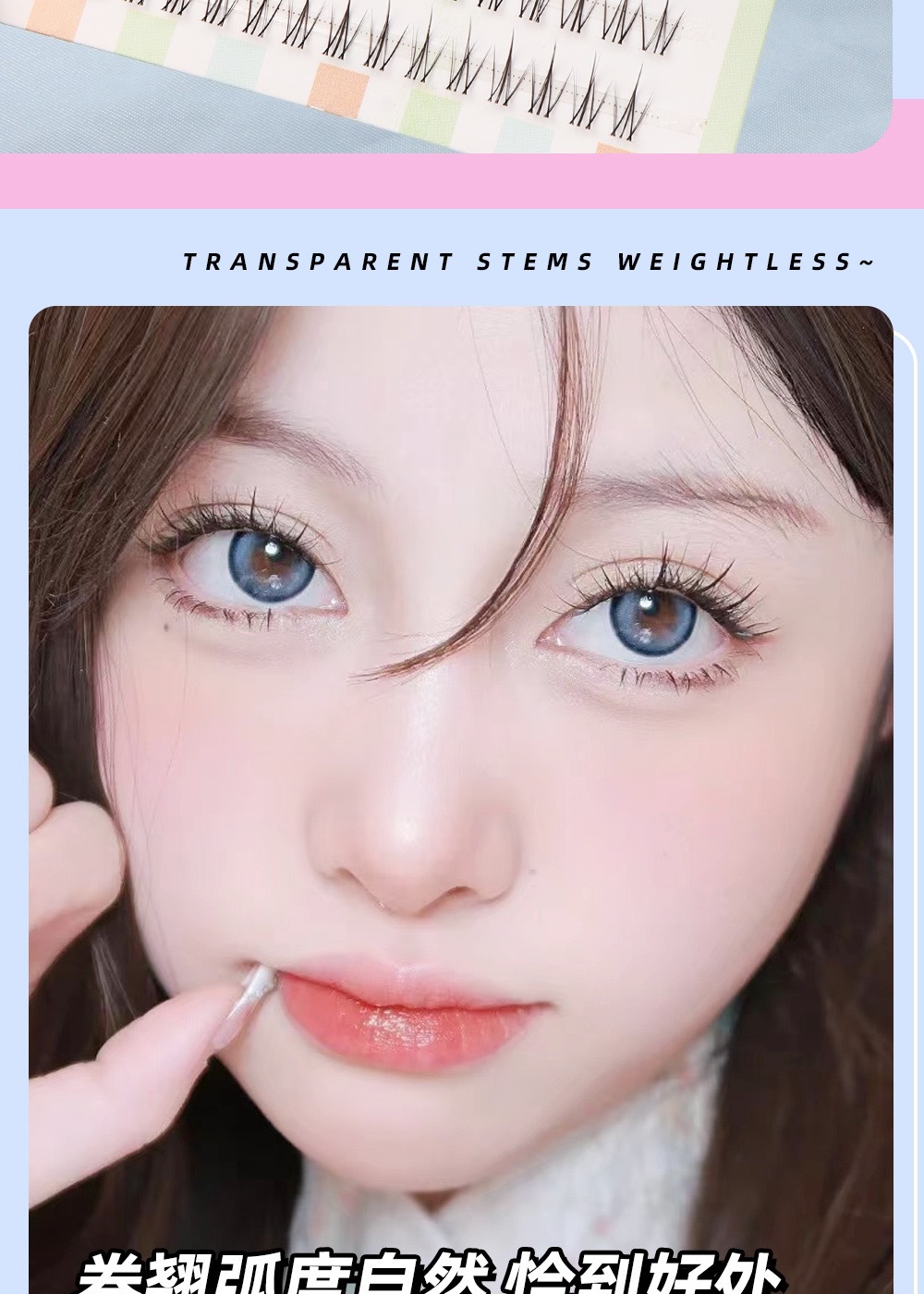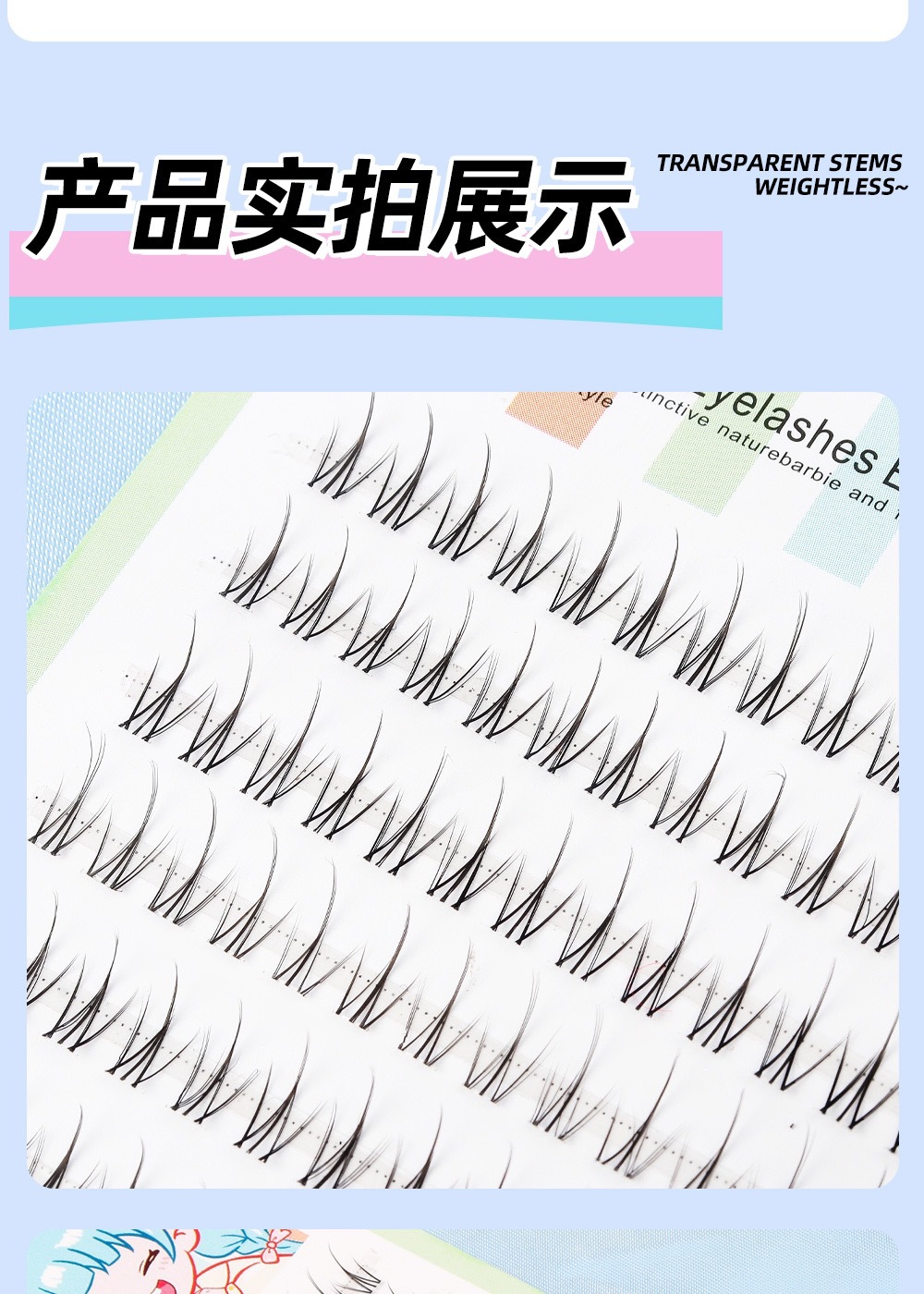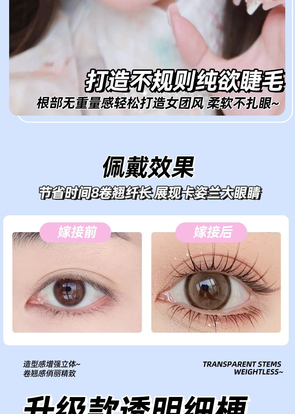 颖睫10排透明梗单簇小火苗自然逼真裸妆素颜假眼睫毛自己嫁接睫毛