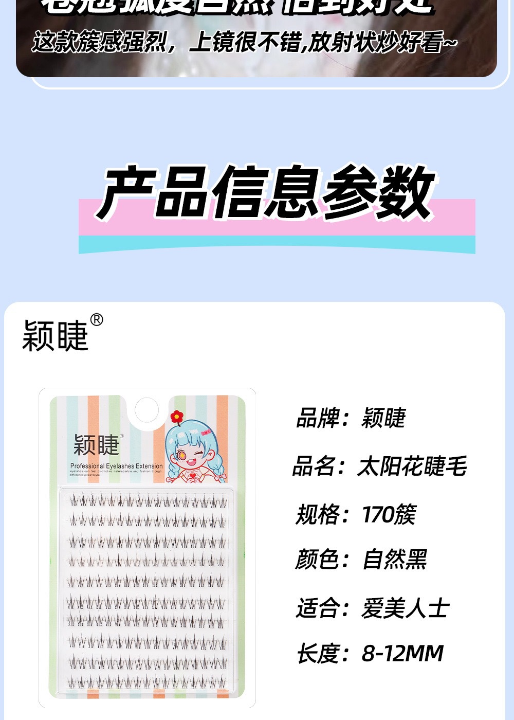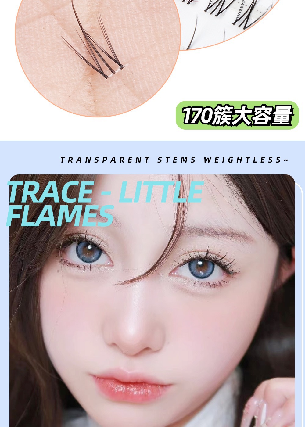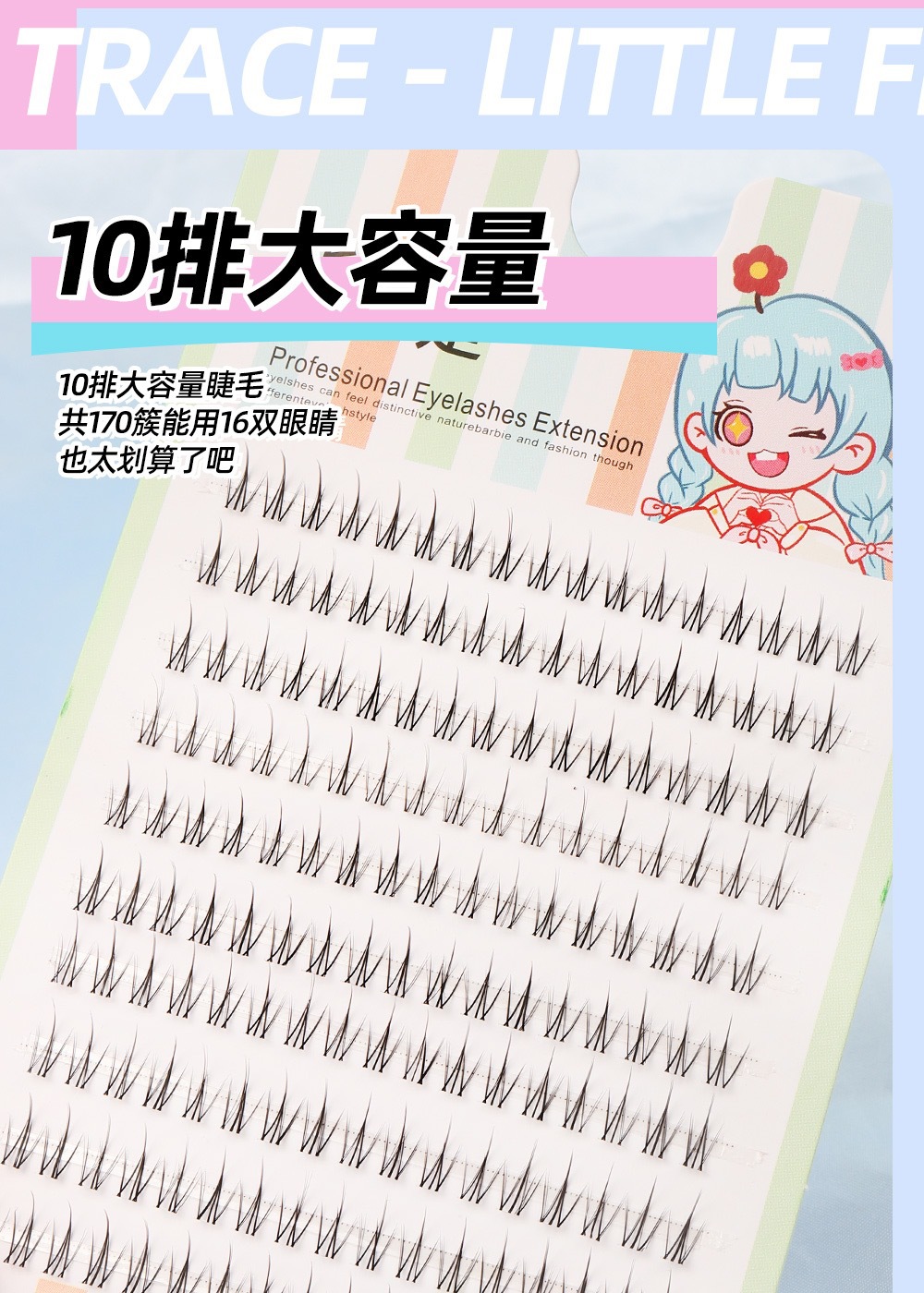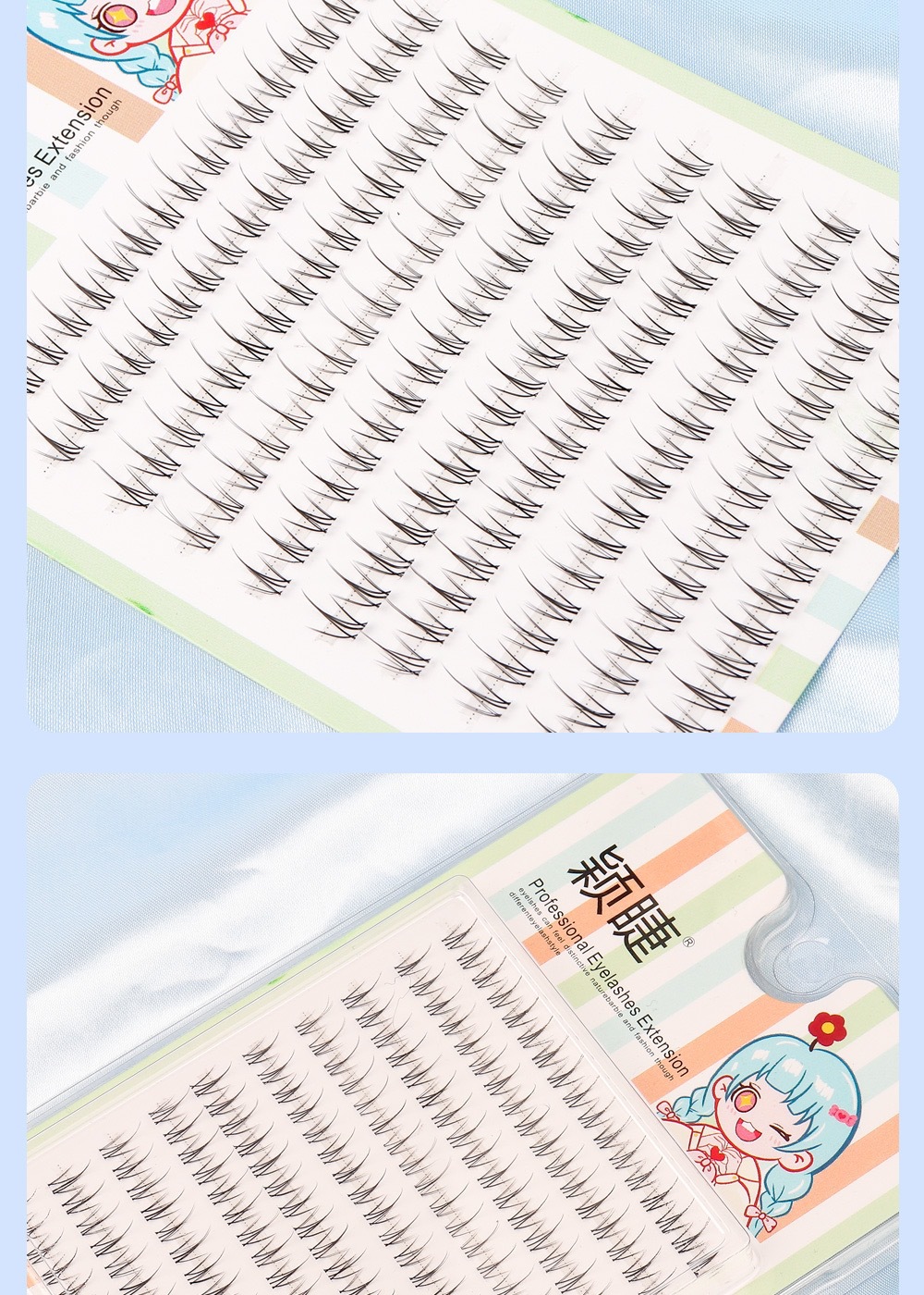 颖睫10排透明梗单簇小火苗自然逼真裸妆素颜假眼睫毛自己嫁接睫毛