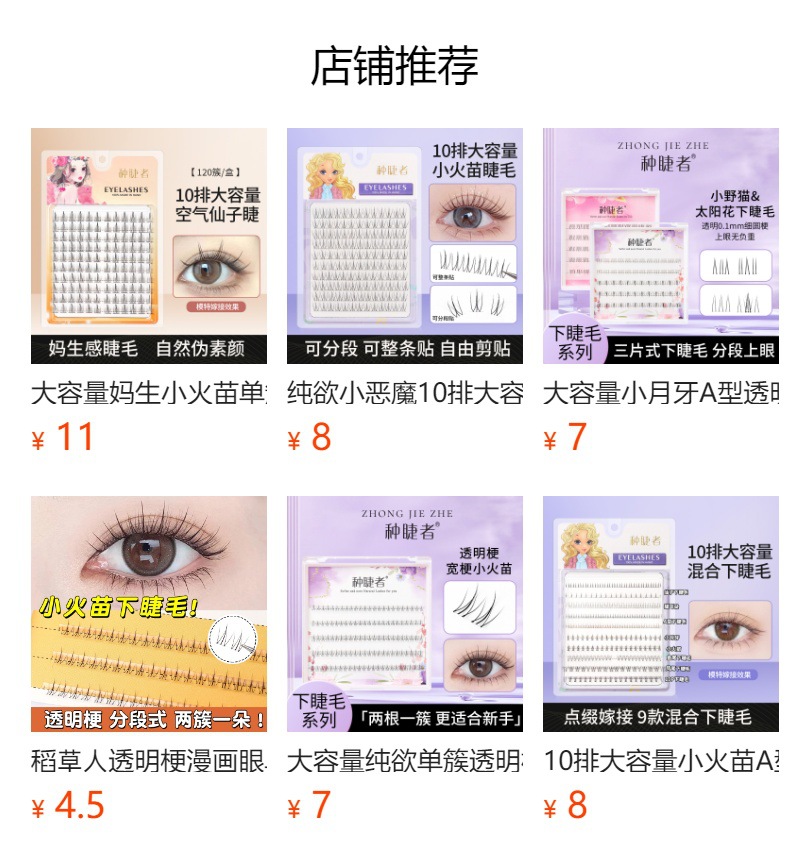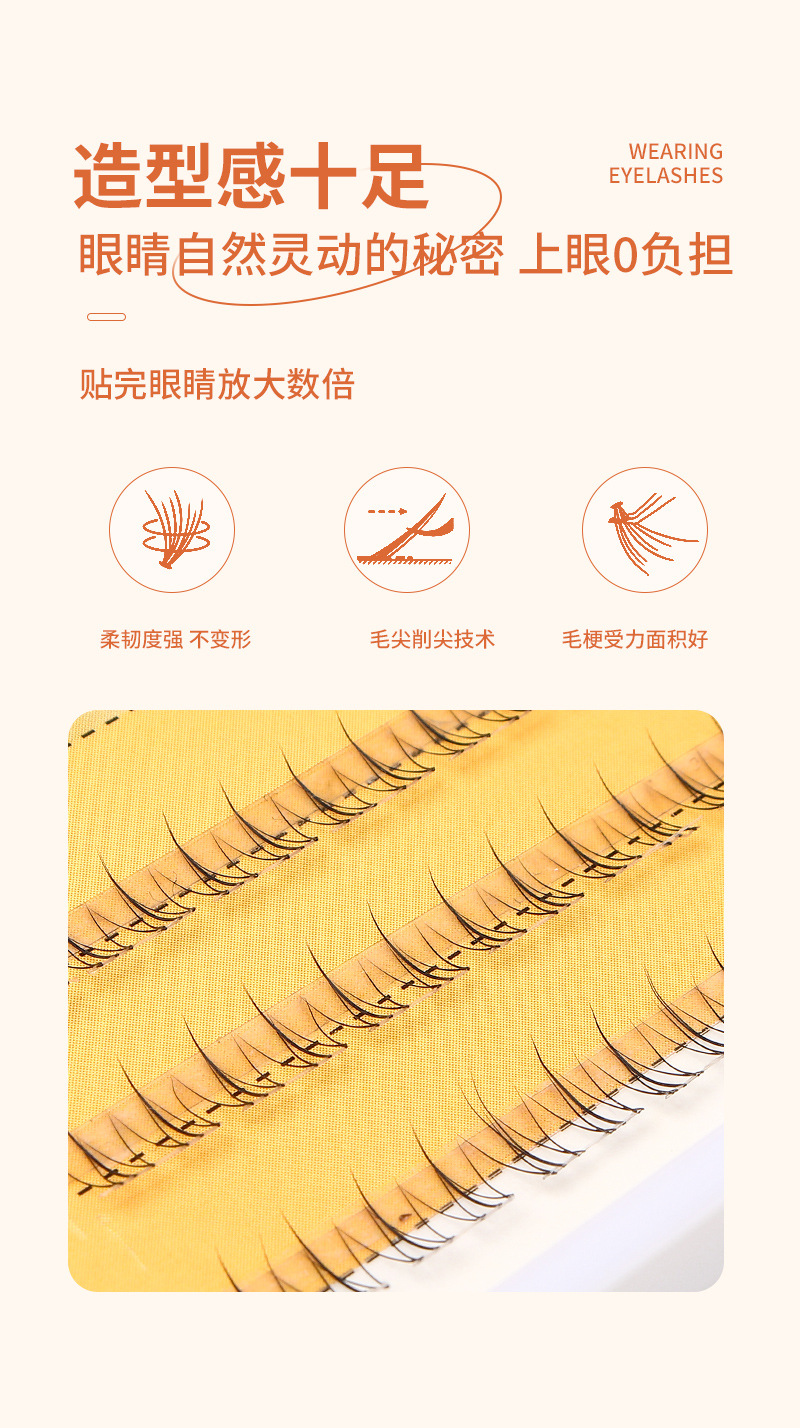 稻草人透明梗漫画眼单簇下睫毛小火苗双生花分段式自然嫁接假睫毛