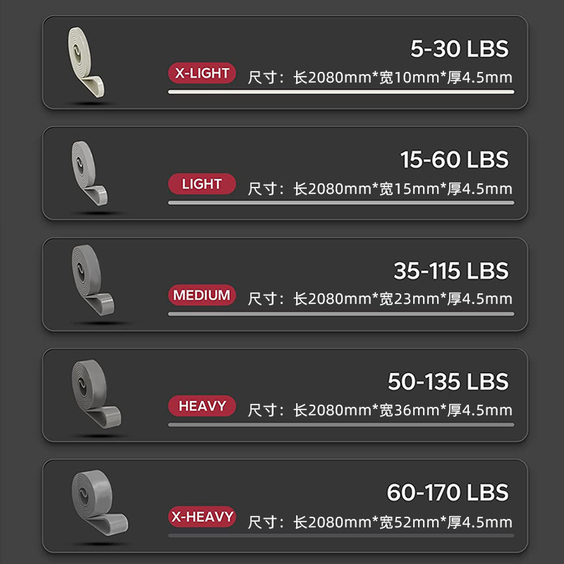 男士家用田径引起向上力量训练阻力带 黑灰渐变色伸展乳胶拉力带