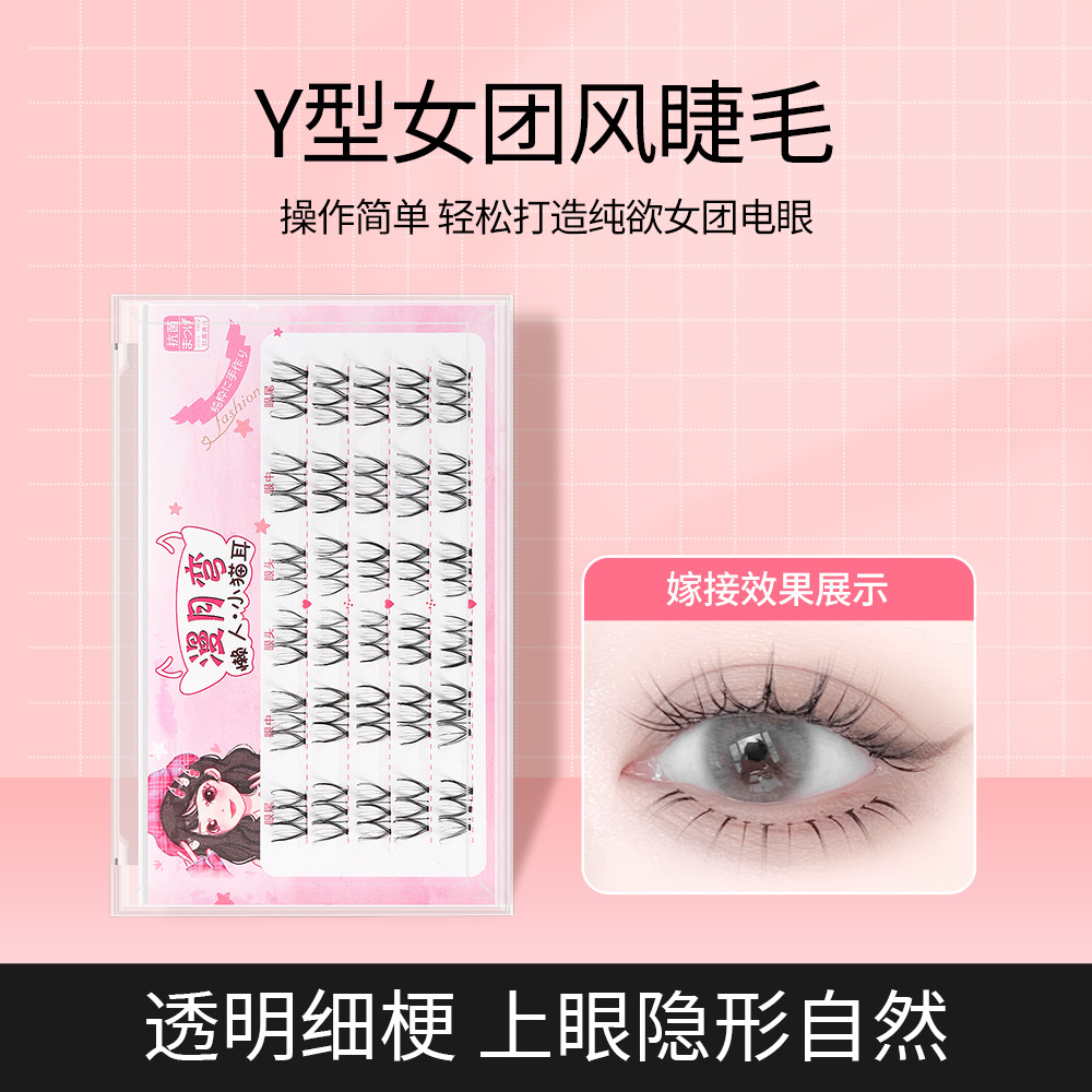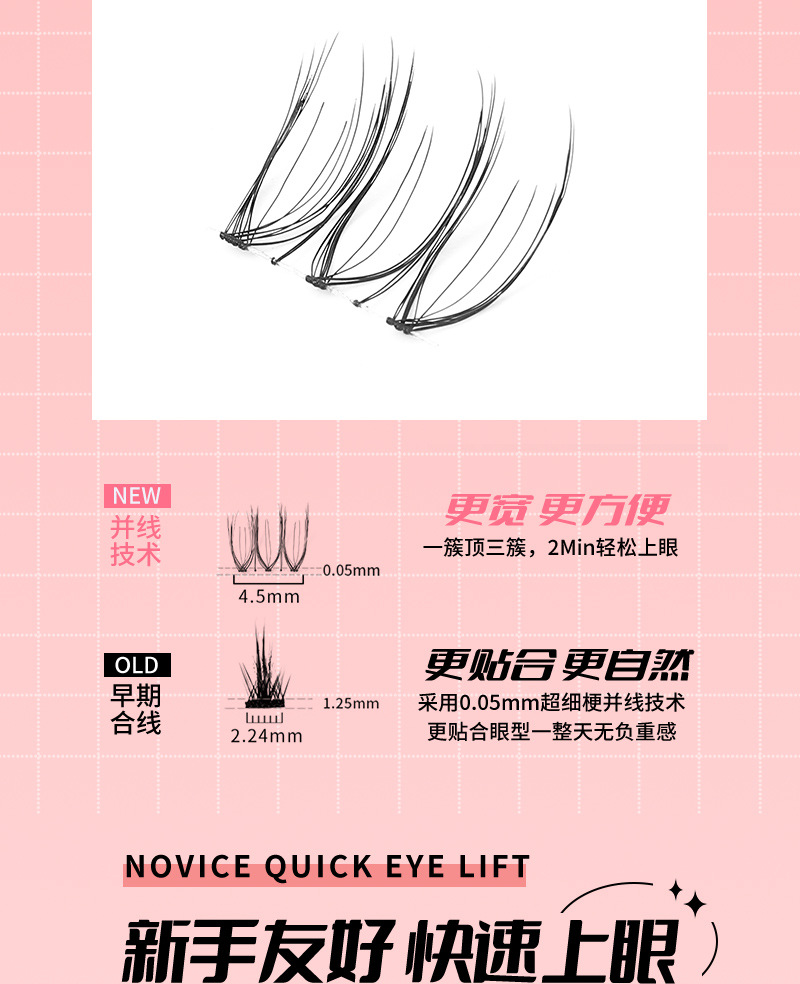 N07分段式懒人三部曲自嫁接睫毛女团U型鱼丝线透明梗小恶魔假睫毛