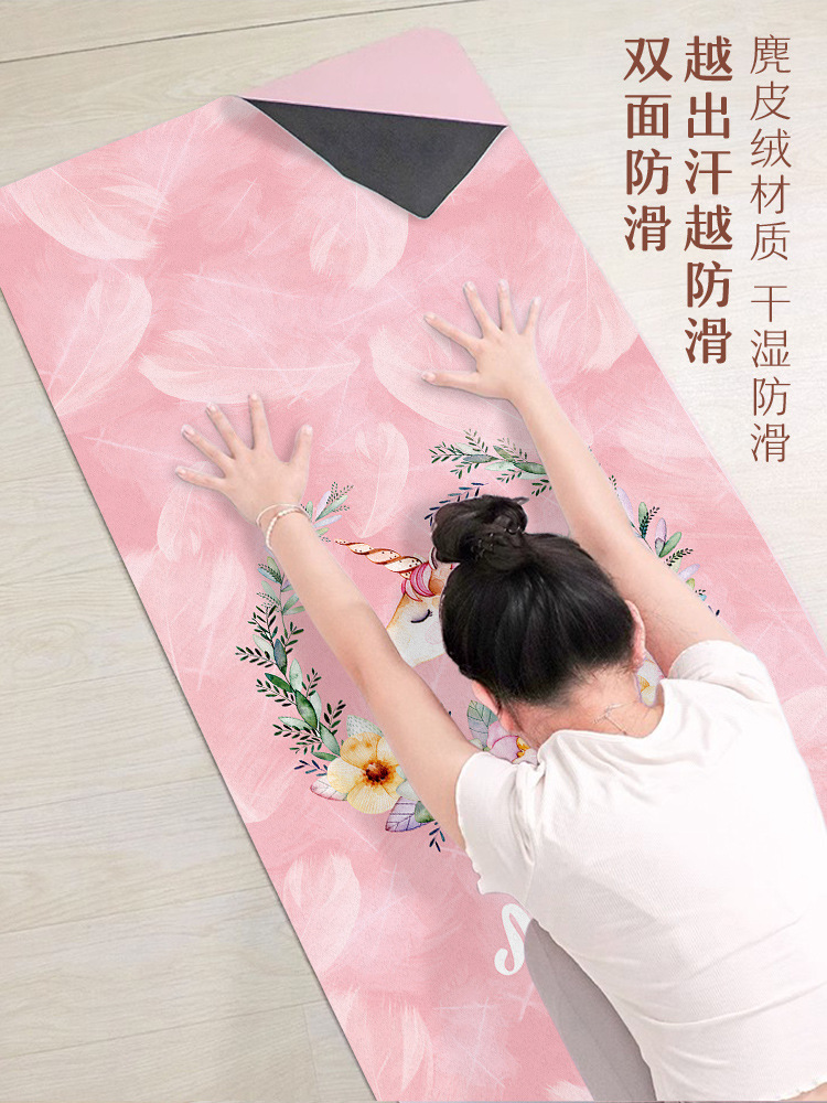 【限时包邮】源头工厂超薄加宽80CM麂皮绒印花橡胶瑜伽垫1.5MM