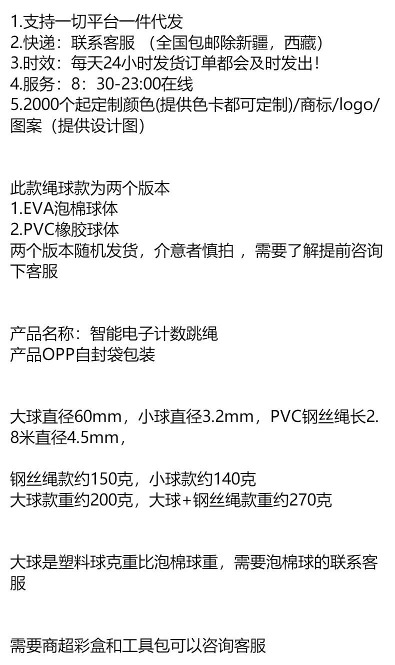 智能无绳跳绳负重大球钢丝计数跳绳成人款有绳训练体育用品批发
