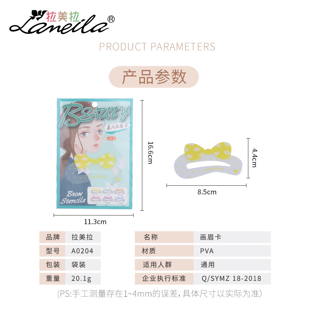 拉美拉 懒人式画眉卡6个装 可爱蝴蝶结一字眉 画眉辅助工具 A0204