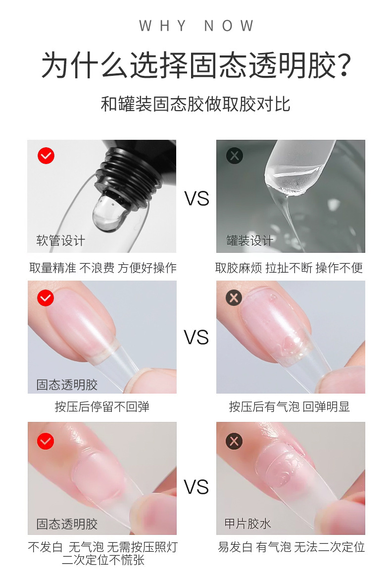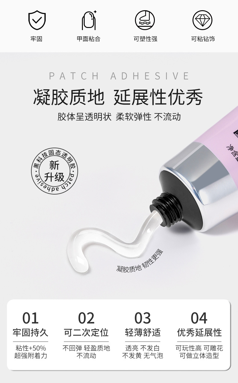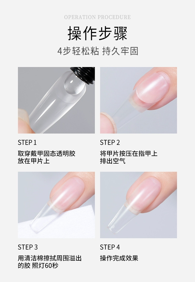 固态贴片胶穿戴甲黏合凝胶持久牢固不回弹贴甲片粘合剂美甲店专用