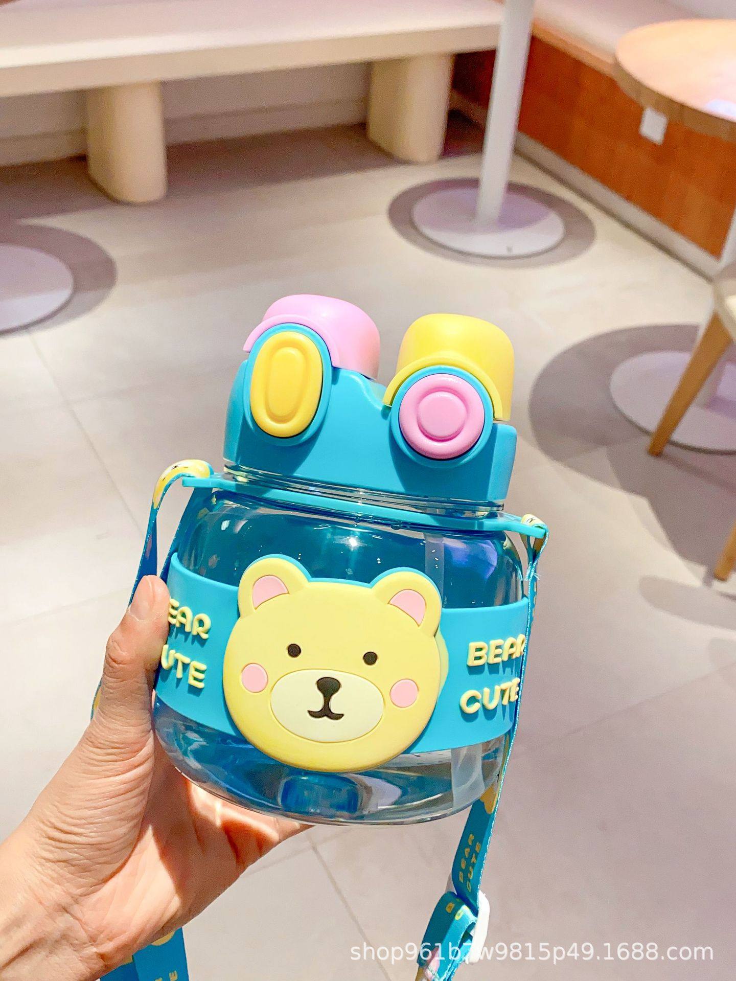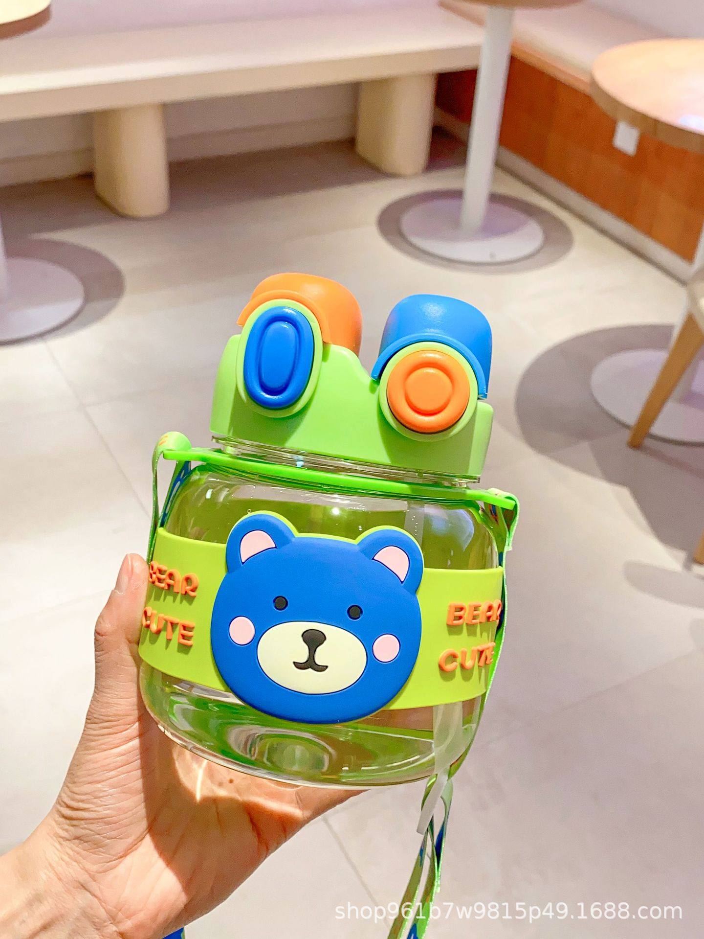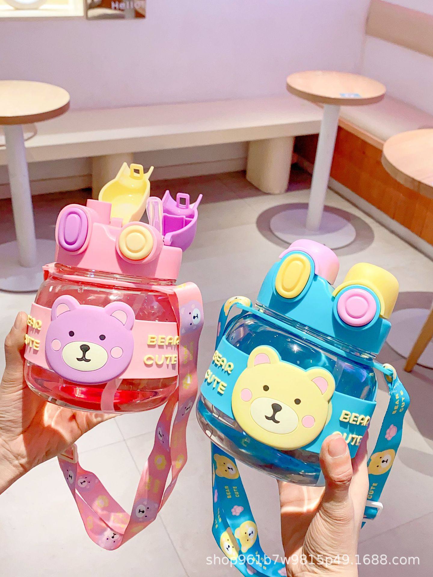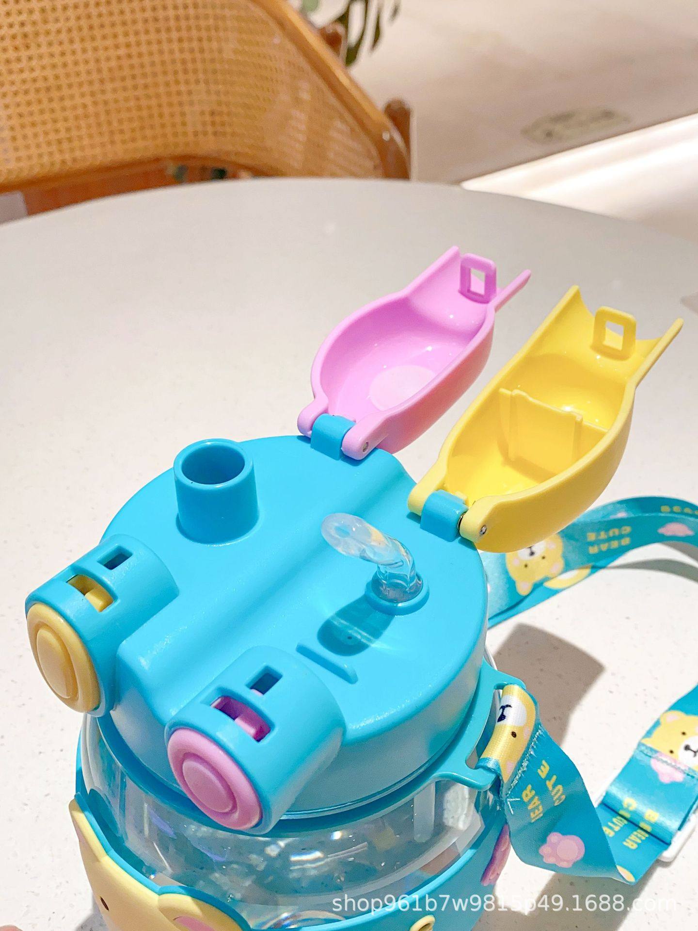 儿童学生夏季卡通大容量便携双饮塑料杯 水杯颜值ins风咖啡杯