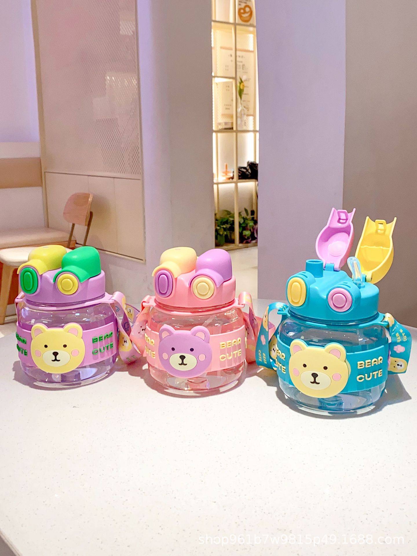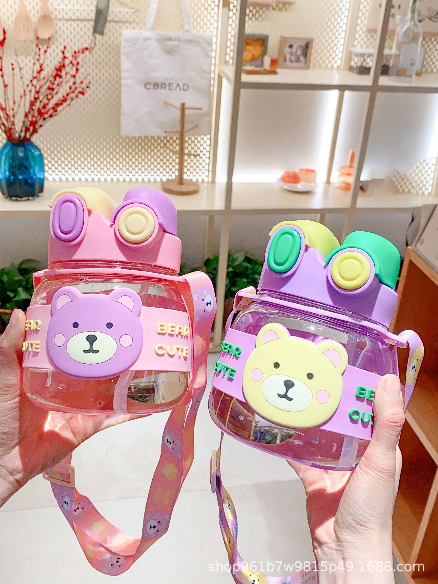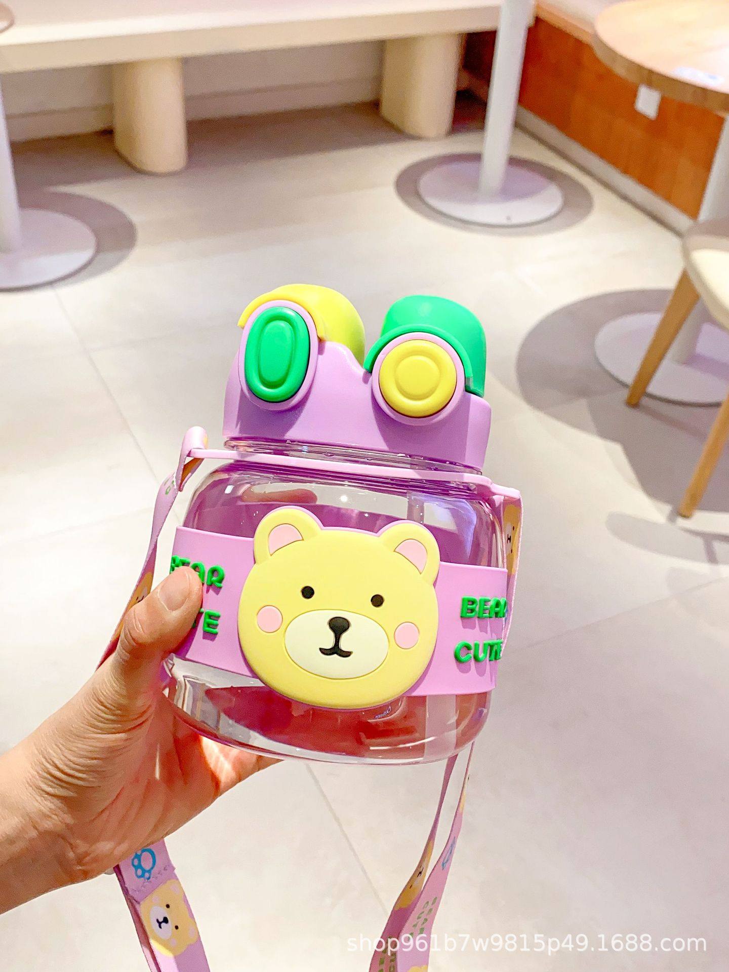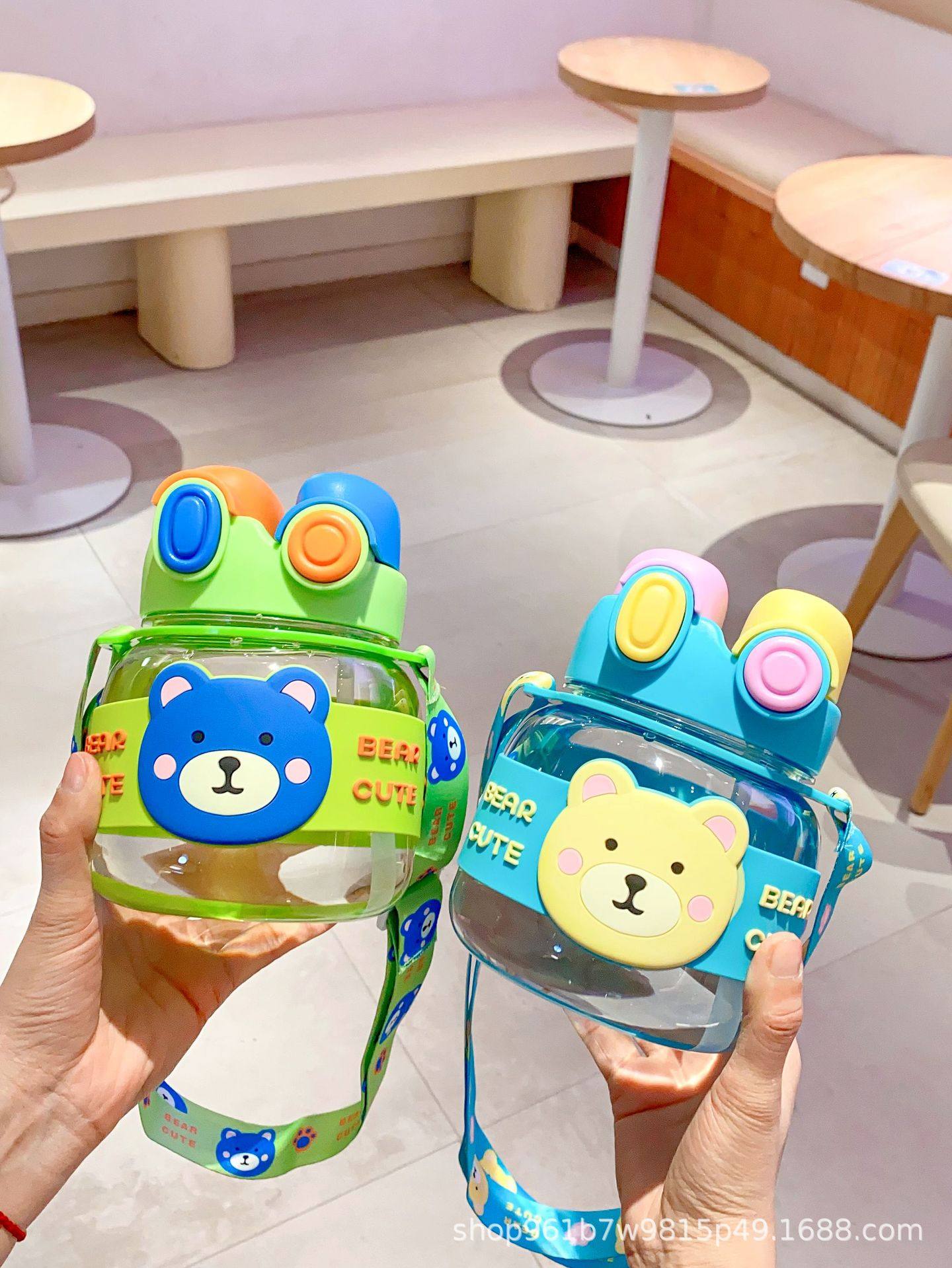 儿童学生夏季卡通大容量便携双饮塑料杯 水杯颜值ins风咖啡杯