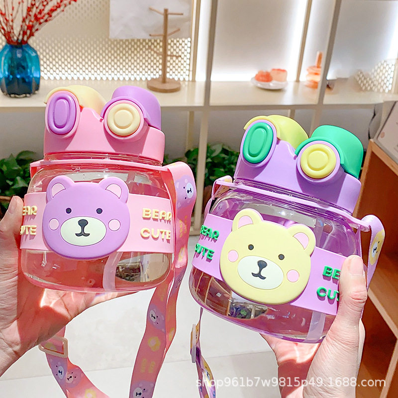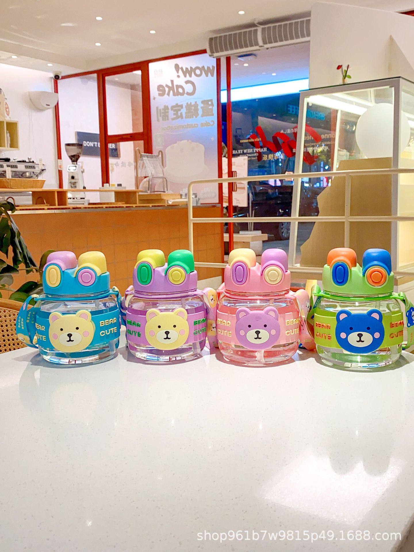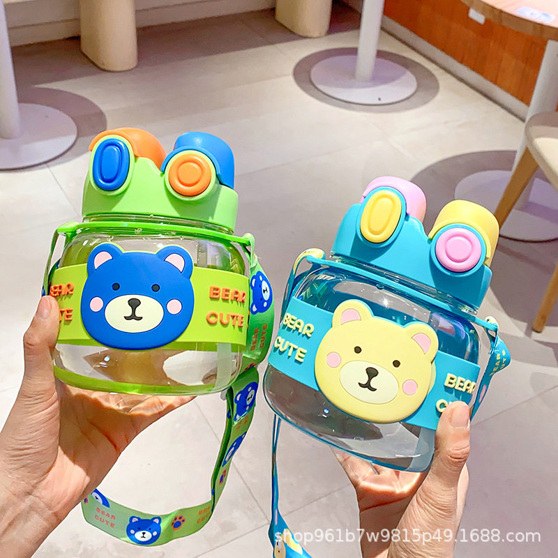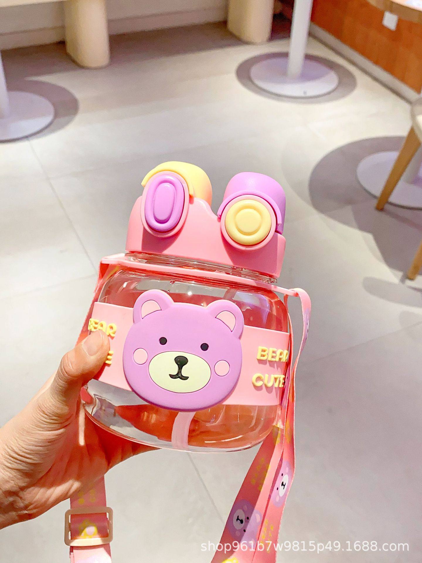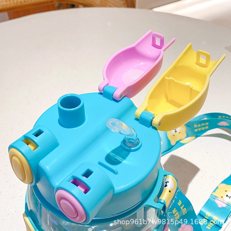 儿童学生夏季卡通大容量便携双饮塑料杯 水杯颜值ins风咖啡杯